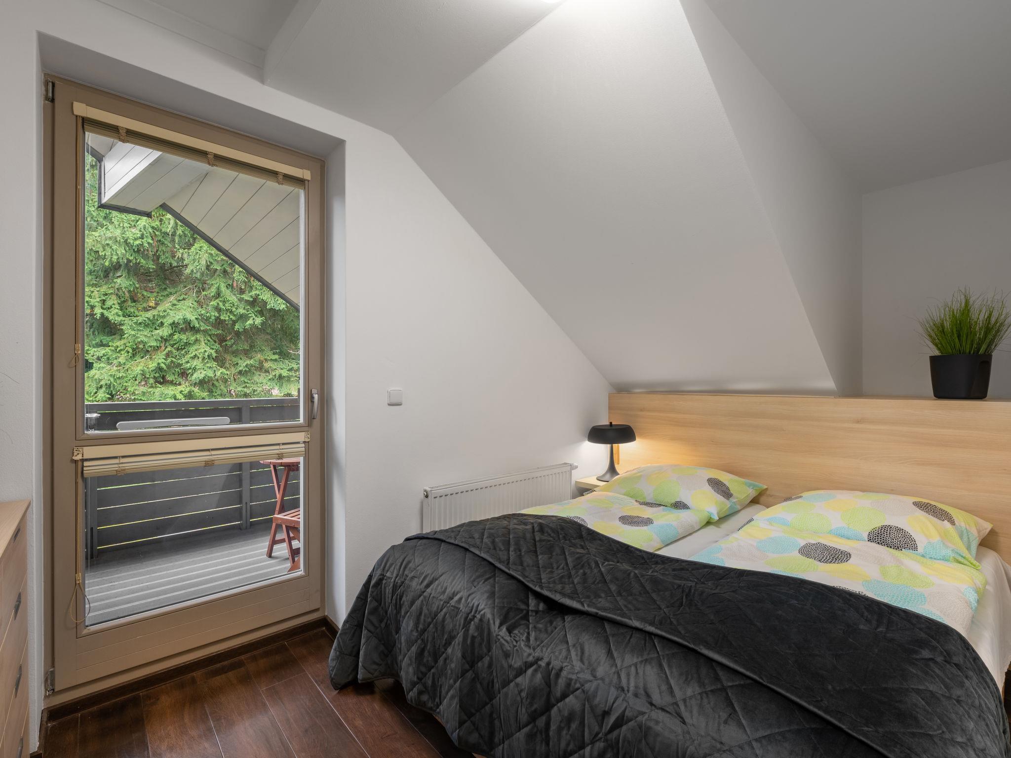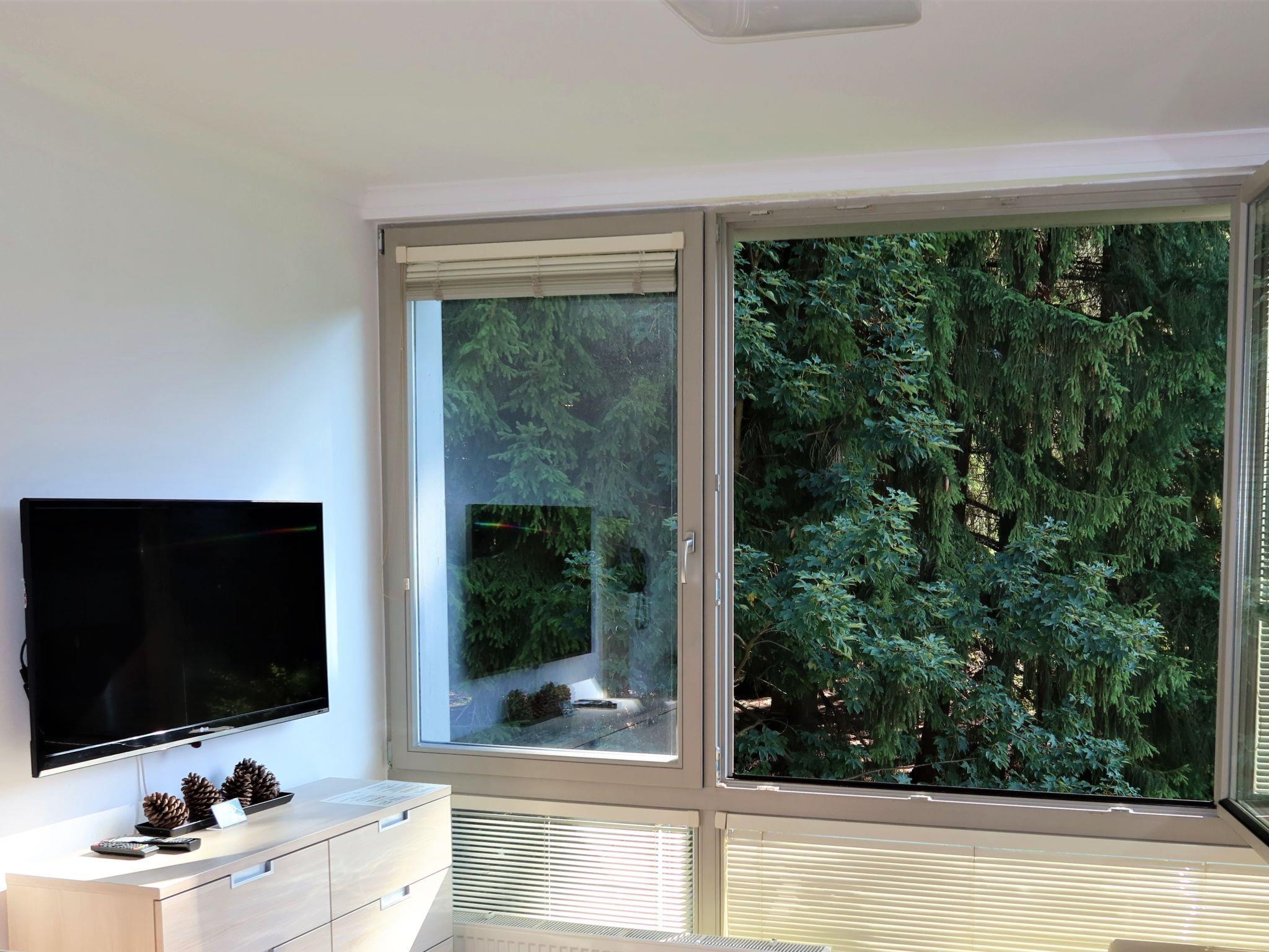 "Harrachov Resident Vesna", 2-room apartment 38 m2 on 3rd floor. Modern and cosy furnishings: living/sleeping room with 1 double sofabed, dining table and satellite TV. 1 room with 1 double bed. Kitchenette (2 ceramic glass hob hotplates, toaster, kettle, microwave). Shower/WC. Large balcony. Balcony furniture. View of the forest. Facilities: hair dryer. Internet (WiFi, free). Parking. Please note: suitable for families. Non-smokers only. 1 small pet/ dog allowed. Fridge and storage cellar available.
