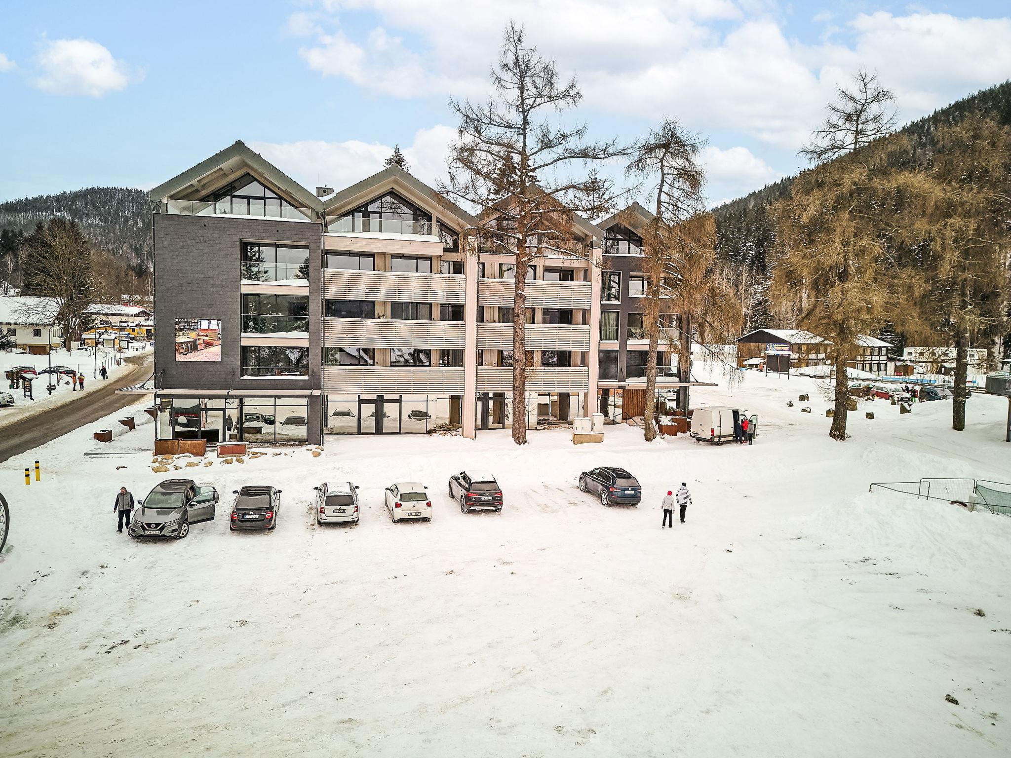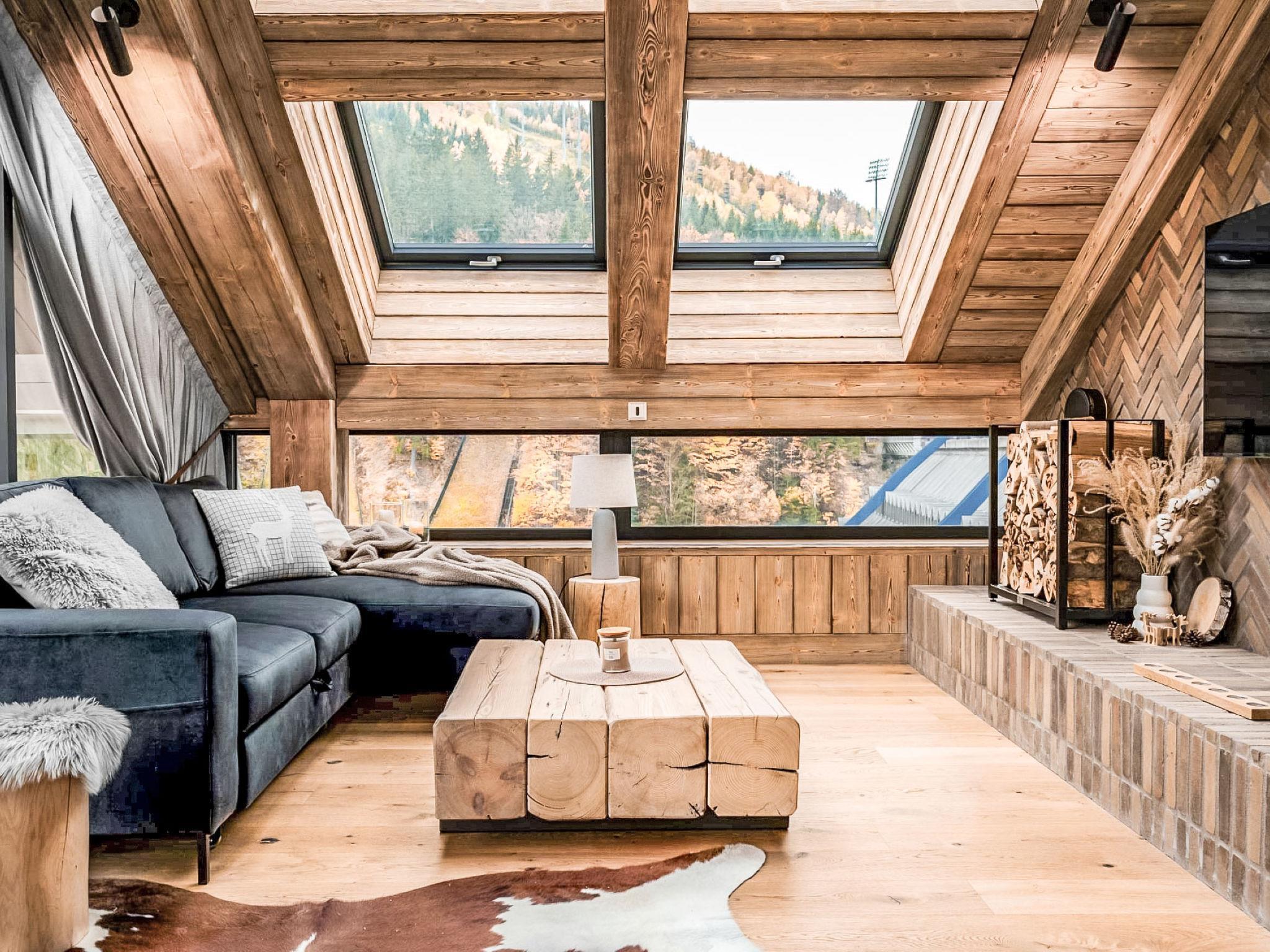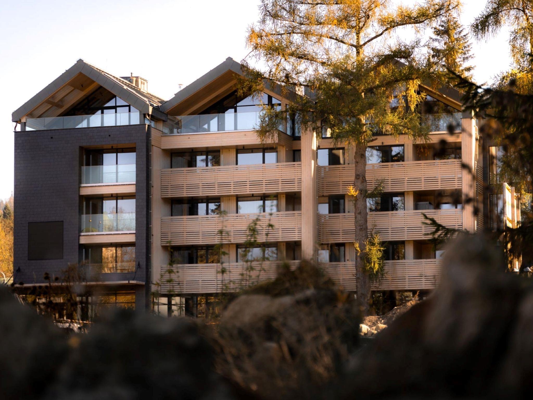 "Corso", 2-room apartment on 4th floor. Very comfortable and beautiful furnishings: large living/dining room with panoramic window with 1 sofabed, open-hearth fireplace and TV. Exit to the terrace. 1 room with 1 bed and 1 double bed. Exit to the terrace. With sloping ceilings, open kitchen (oven, dishwasher, 4 ceramic glass hob hotplates, toaster, kettle, microwave, freezer, electric coffee machine) with dining table. Shower/WC, sep. WC. Wooden floors. Terrace furniture, box-room. Very beautiful view of the mountains, the ski run and the forest. Facilities: sauna, hair dryer. Internet (WiFi, free). Parking, garage. E-charging station. Please note: suitable for families. Non-smokers only.