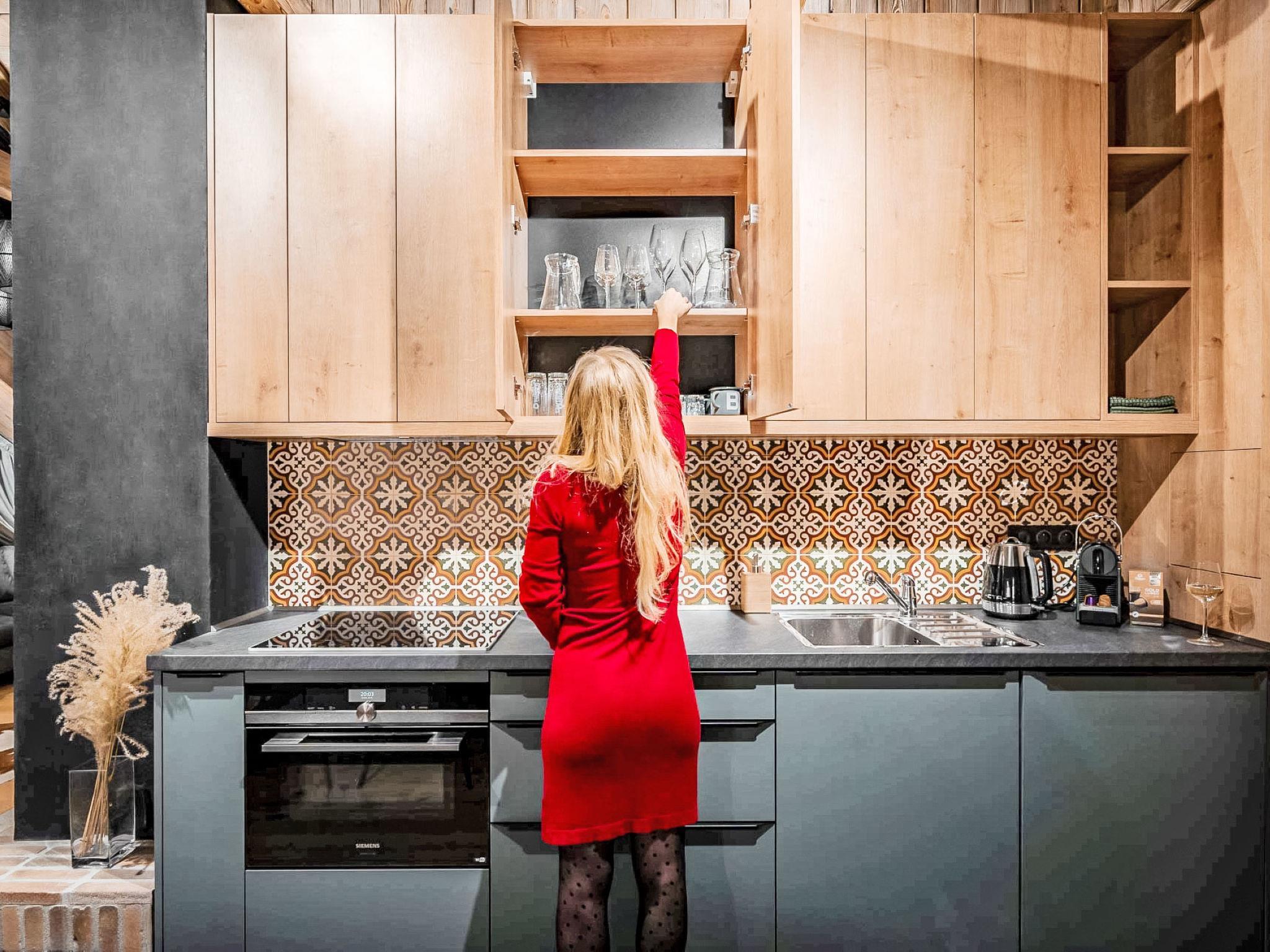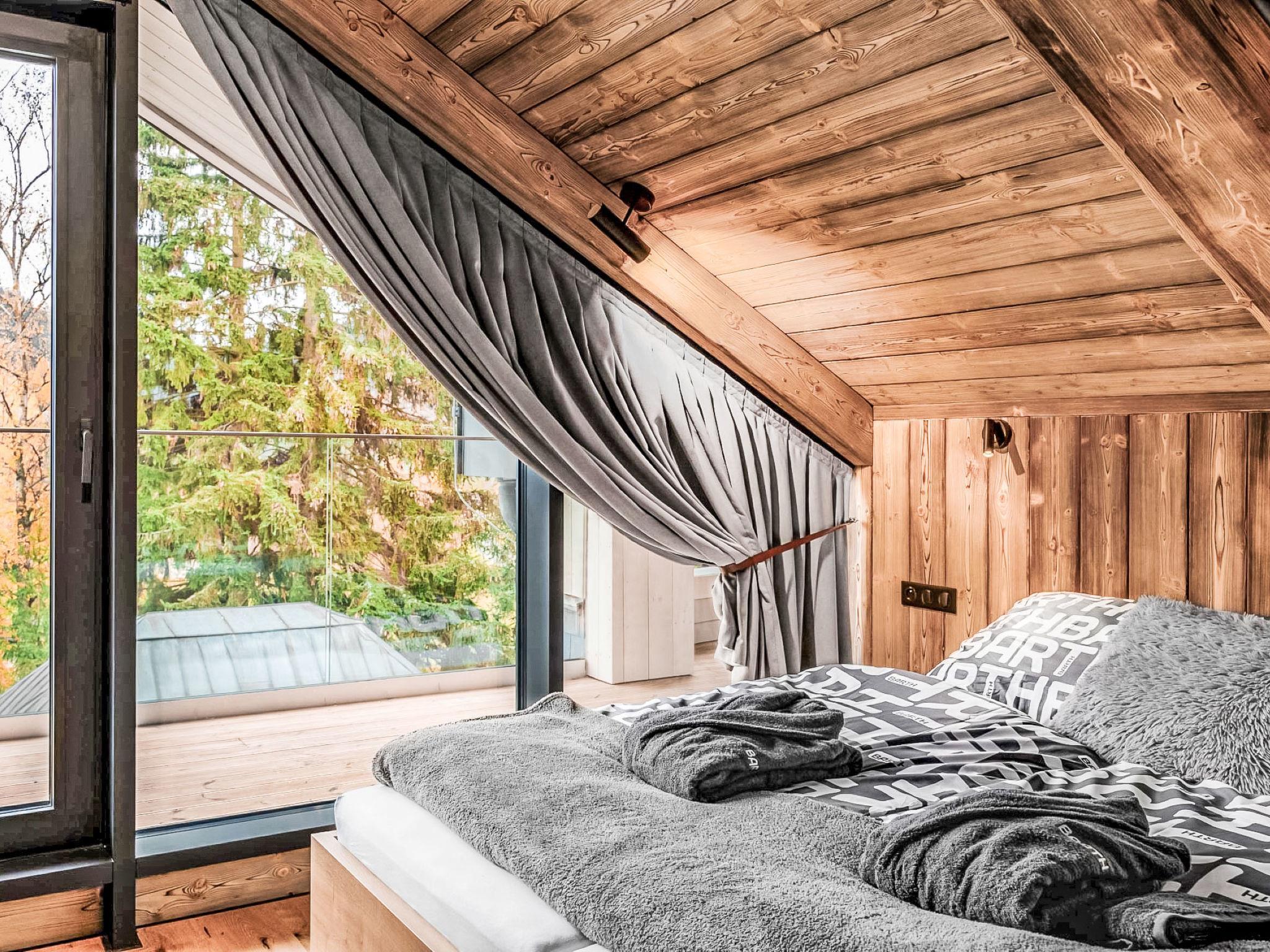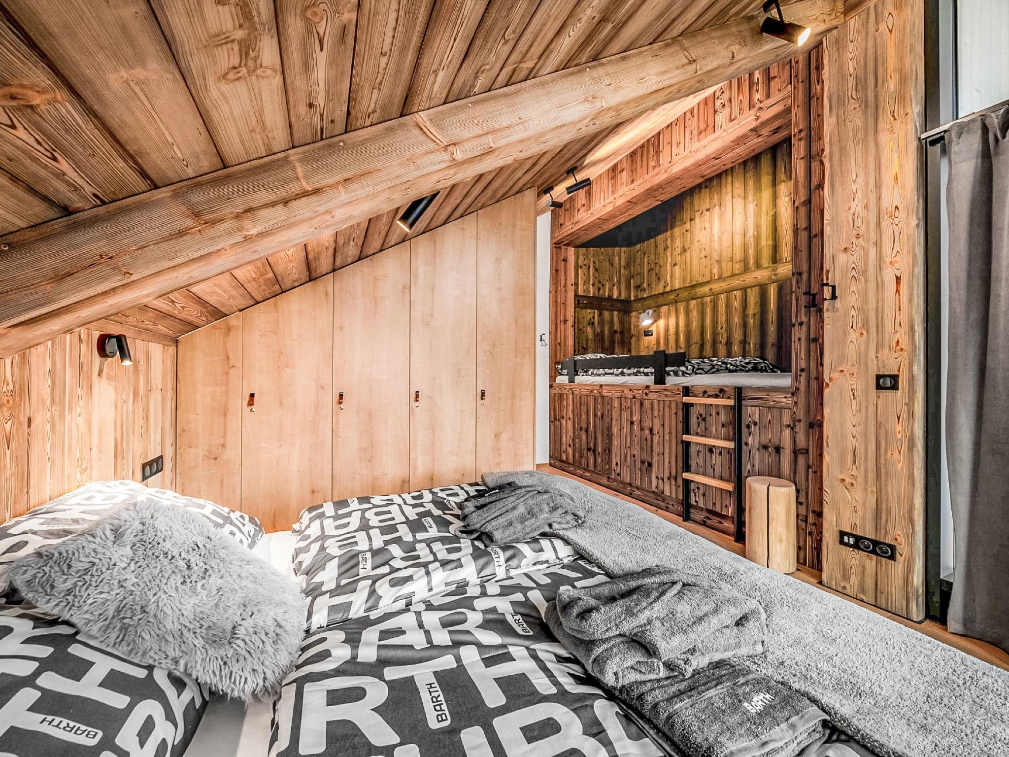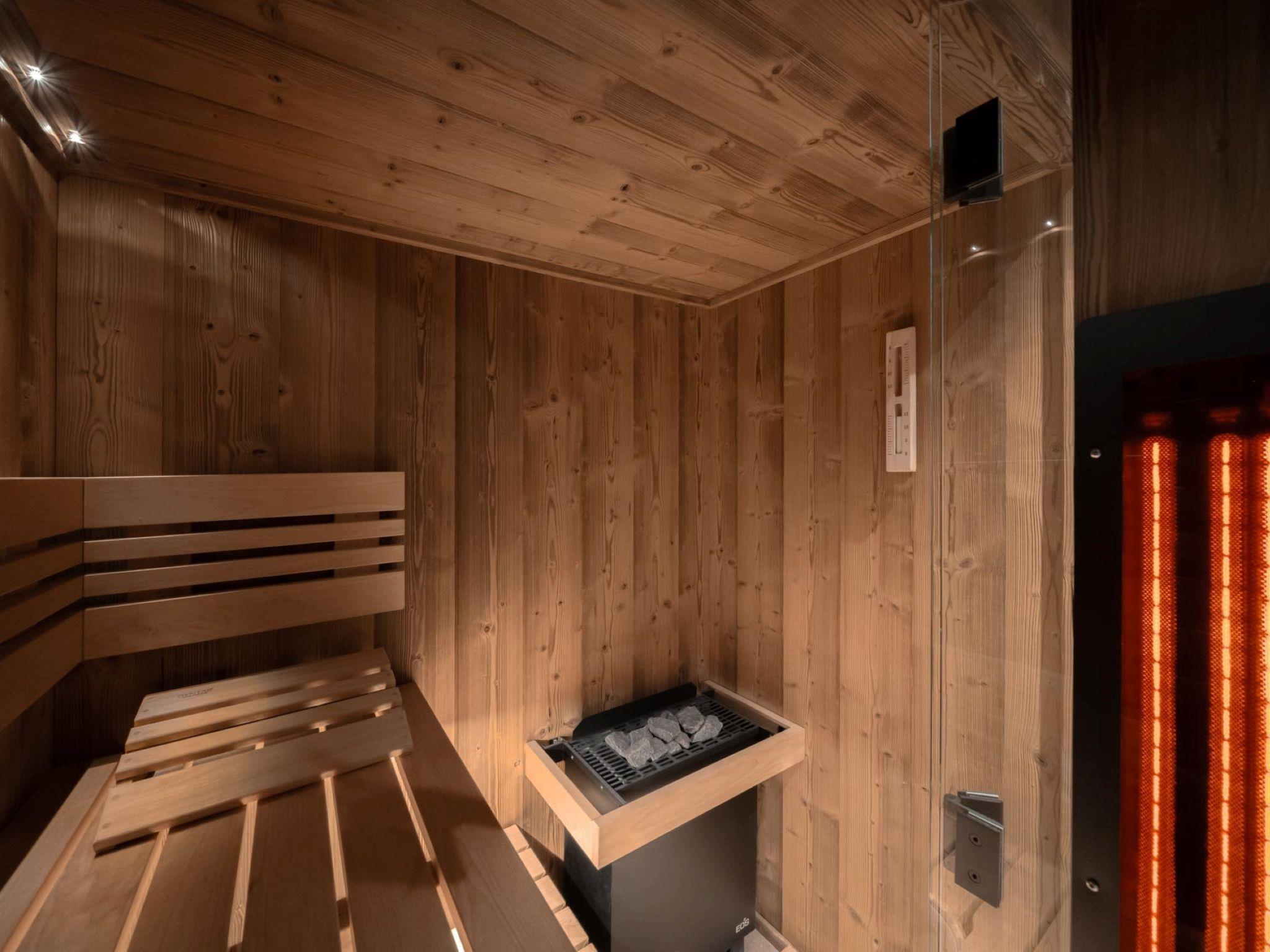 "Corso", 2-room apartment on 4th floor. Very comfortable and beautiful furnishings: large living/dining room with panoramic window with 1 sofabed, open-hearth fireplace and TV. Exit to the terrace. 1 room with 1 bed and 1 double bed. Exit to the terrace. With sloping ceilings, open kitchen (oven, dishwasher, 4 ceramic glass hob hotplates, toaster, kettle, microwave, freezer, electric coffee machine) with dining table. Shower/WC, sep. WC. Wooden floors. Terrace furniture, box-room. Very beautiful view of the mountains, the ski run and the forest. Facilities: sauna, hair dryer. Internet (WiFi, free). Parking, garage. E-charging station. Please note: suitable for families. Non-smokers only.