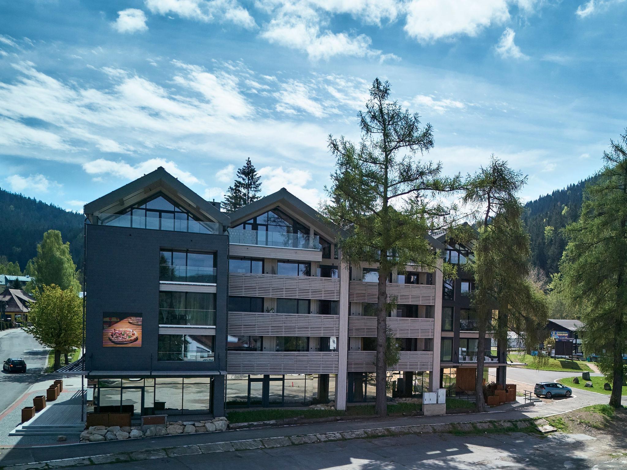 Modern residence. 500 m from the centre of Harrachov, in a quiet, sunny position, 600 m from the edge of the forest, 600 m from the skiing area. In the house: lift. Grocery, restaurant 70 m, bus stop "Harrachov, aut. Nádr." 300 m, railway station "Harrachov" 3.5 km, outdoor swimming pool 2 km, thermal baths "Thermy Cieplickie PL" 30 km. Golf course (9 hole) 4.5 km, tennis 2 km, indoor tennis centre 2 km, minigolf, chair lift, slopes, ski rental, ski school, children's ski school 600 m, cross country ski track 100 m. Nearby attractions: Expozice Šindelka 400 m, Hornické muzeum 1 km, Mumlavský vodopád, Bobová dráha 1.7 km, Korenov 8 km, Jizerka 15 km, Jablonec nad Nisou 29 km, Termy Cieplickie (PL) 30 km, Liberec 35 km, Ješted 40 km. Well-known ski regions can easily be reached: Harrachov 600 m, Zákoutí 2 km, Rýžovište 3 km, Príchovice 10 km, Rokytnice nad Jizerou 15 km. Hiking paths: Western City Karpacz(Pl) 40 km, Park miniatury Kowary44km,Karpacz (Pl) 39 km, Giganteria Piechowice(Pl) 23 km.
