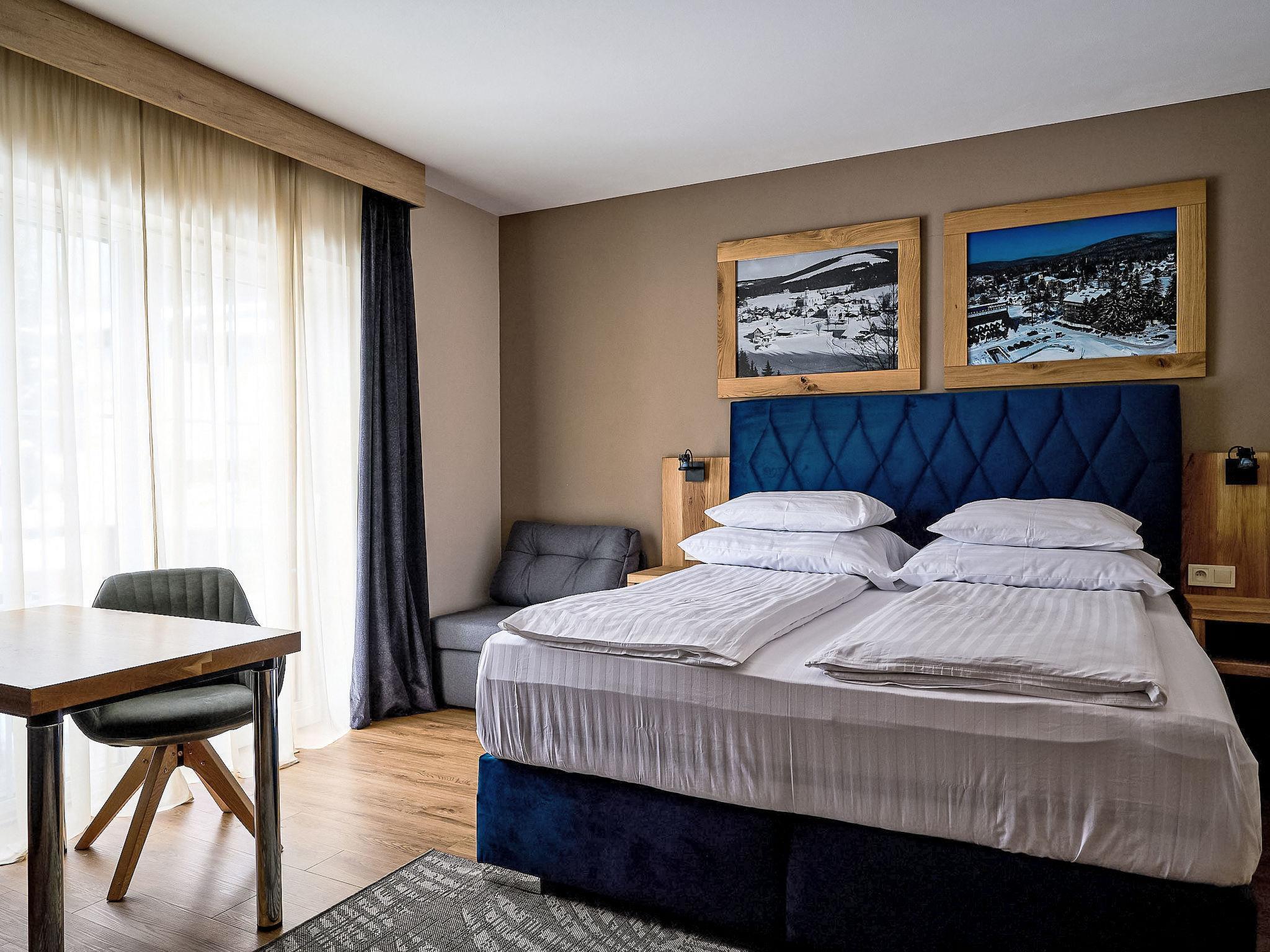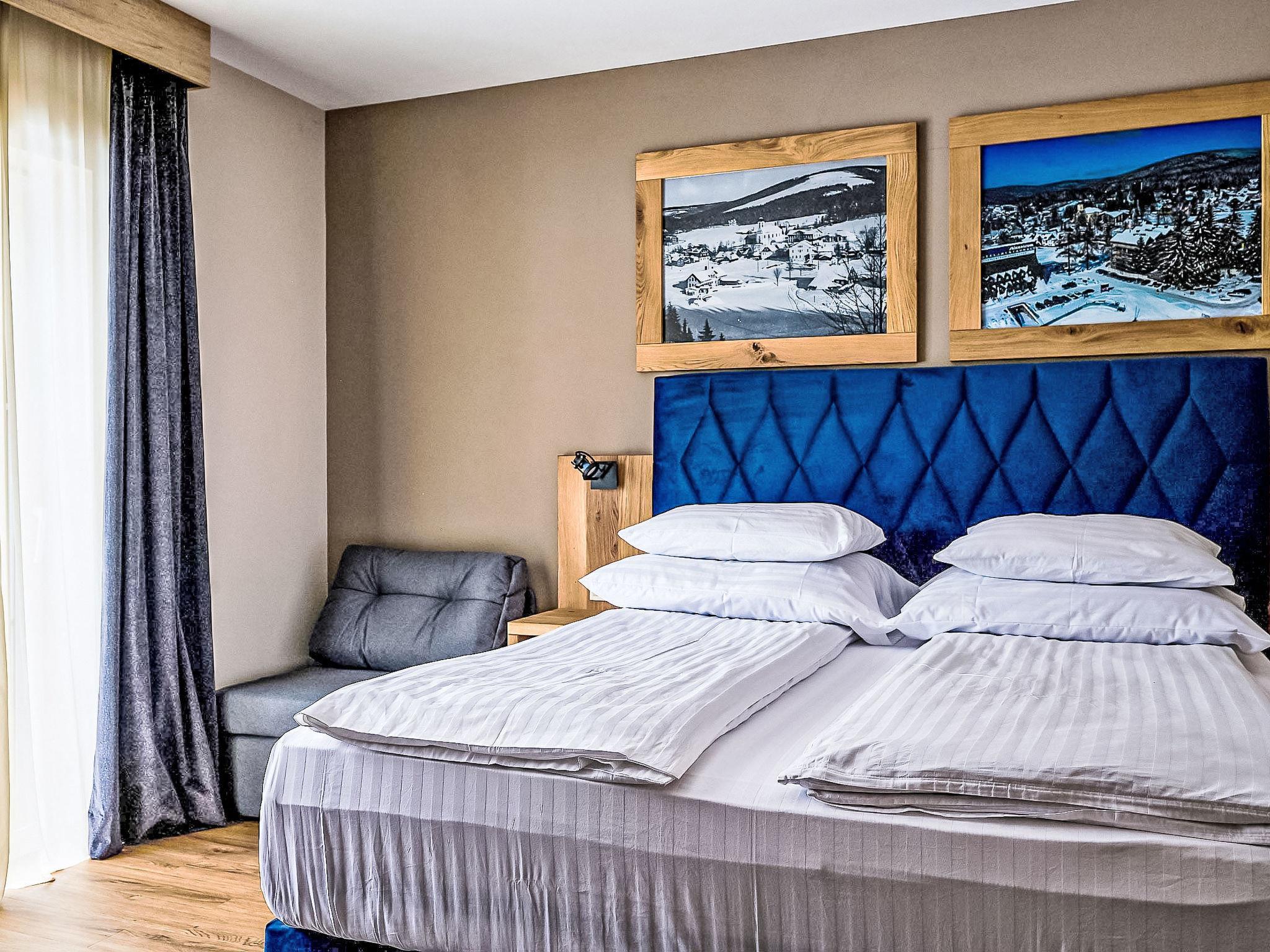 Very beautiful, cosy apartment house "Anenské údolí", 3 storeys, built in 2023. 6 apartments in the property. In a quiet, sunny position, 100 m from the edge of the forest, 800 m from the skiing area, 150 m from the stream, in a cul-de-sac. Private: terrace, garden furniture, barbecue, fireplace. In the house: lounge, WiFi, central heating system. Parking (for 6 cars) at the house. Supermarket 1 km, restaurant, café 700 m, bicycle rental 1 km, bus stop "Harrachov centrum" 1 km, railway station "Harrachov" 3 km, outdoor swimming pool 1.6 km, indoor swimming pool 1.7 km. Golf course (9 hole) 3 km, tennis 2 km, indoor tennis centre 2 km, minigolf 1.5 km, walking paths from the house 10 m, cycle lane 1 km, chair lift, slopes, ski rental, ski school, children's ski school 800 m, cross country ski track, children's playground 600 m. Nearby attractions: bobová dráha 500 m, Muzeum skla, Hornické muzeum, Šindelka 2 km, Mumlava vodopád 3 km, Skokanské mustky 1 km, Jilemnice, Jablonec nad Nisou 25 km, Liberec - zoo, aquapark, Ješted 40 km. Well-known ski regions can easily be reached: Harrachov 800 m, Príchovice 9 km, Paseky na Jizerou, Rokytnice nad Jizerou 15 km. Well-known lakes can easily be reached: Vodní nádrž Souš 12 km. Hiking paths: Anenské údolí, Harrachova cesta, Krakonošova cesta, Certova hora, Bežecký lyžarský areál Jakuszyce 5 km. The property consists of 6 apartments.