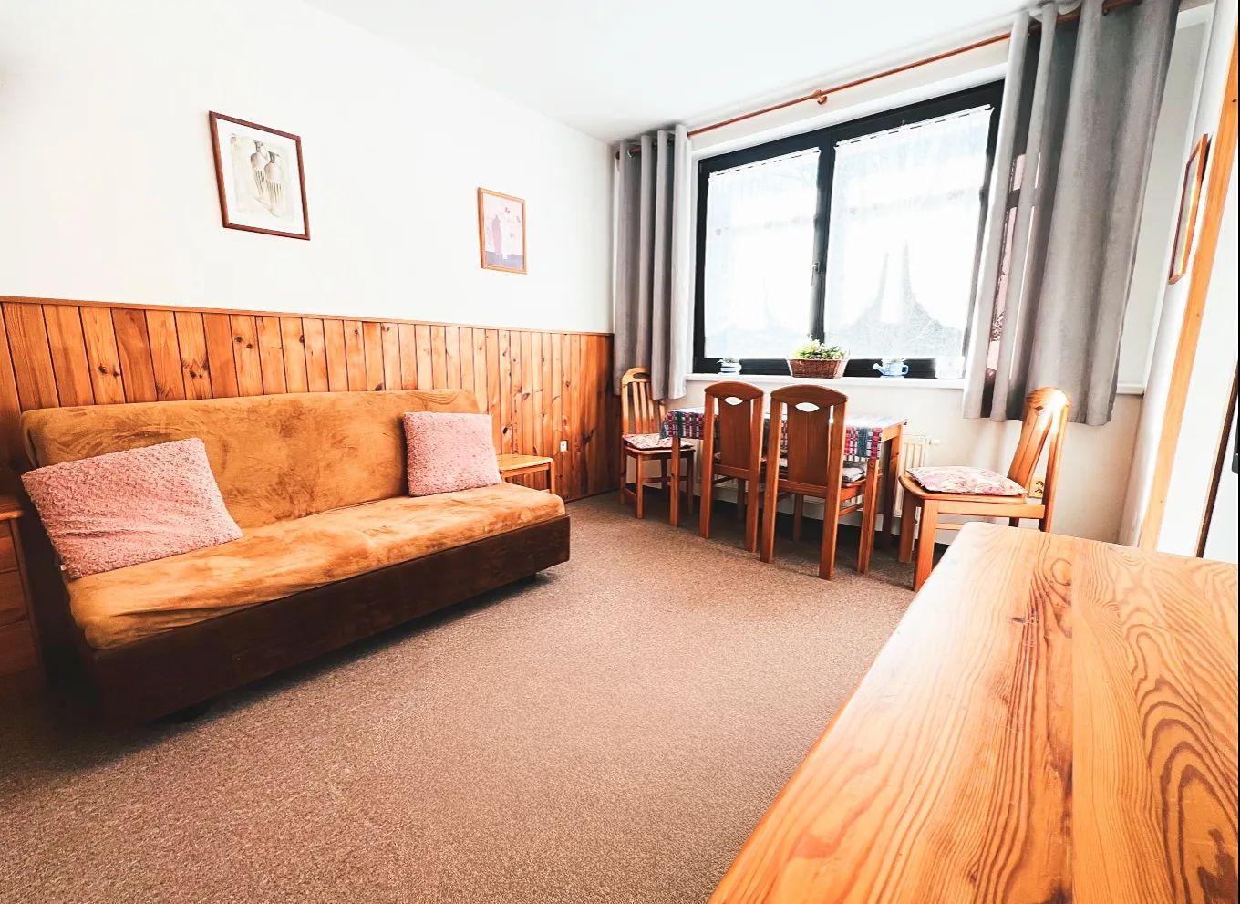 This bright studio apartment is nestled in the green coniferous forest landscape along the western tip of the imposing Czech Giant Mountains. Located in the quiet Klondaj district of the picturesque Harrachov ski resort, it offers ideal accommodation for a relaxing ski holiday. Hikers and nature lovers will also find their money's worth here outside of the winter months.