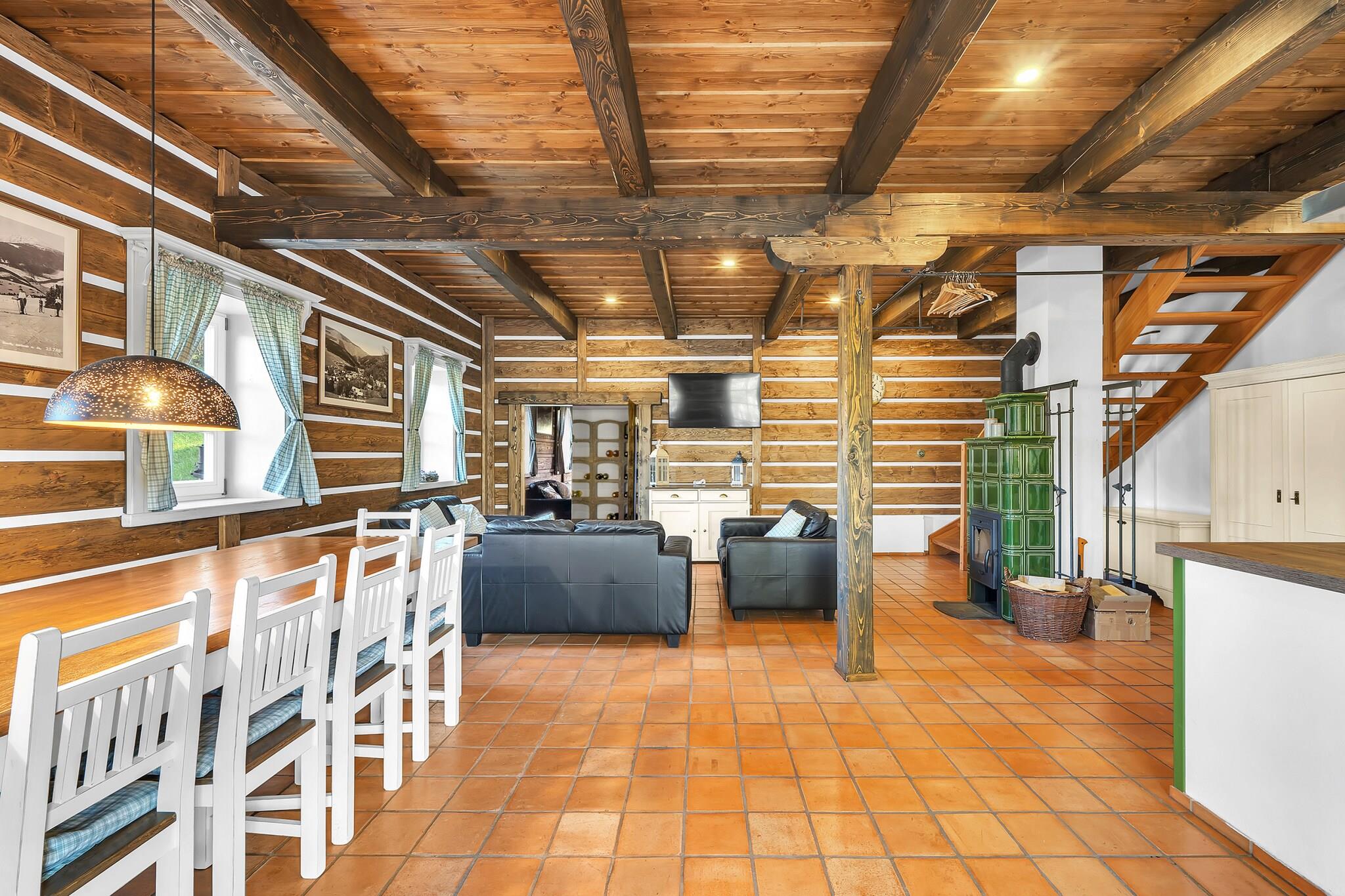 Looking for the perfect getaway for your large family? This villa, nestled in the heart of the ski area, is ideal for families of up to 13 people. Whether you're hitting the slopes in winter or soaking in the stunning views during summer, this villa offers a cozy retreat for everyone to enjoy together. Located in the scenic ski area of Cerna Hora, this villa is surrounded by fantastic opportunities for outdoor adventures. With ski resorts within 10 km, you'll have plenty of options for winter fun. In summer, explore the treetop trails, hike up Snezka mountain, or enjoy a round of golf. Take a swim in nearby pools or visit charming villages like Janske Lazne and Mlade Buky. With so much to offer, this villa is the ultimate destination for creating unforgettable memories. With 4 spacious bedrooms and 4 bathrooms, this villa ensures everyone has room to relax. The kitchen is well-equipped to make family meals a breeze, with everything you need from a fridge to an oven and microwave. After a delicious meal, clean-up is a cinch with the dishwasher. Unwind on the comfy sofas in the living area, whether you're watching a movie, enjoying a book, or hosting a friendly board game night. Outside, the garden and terrace are perfect for sipping drinks, while kids and pets have plenty of space to play.
