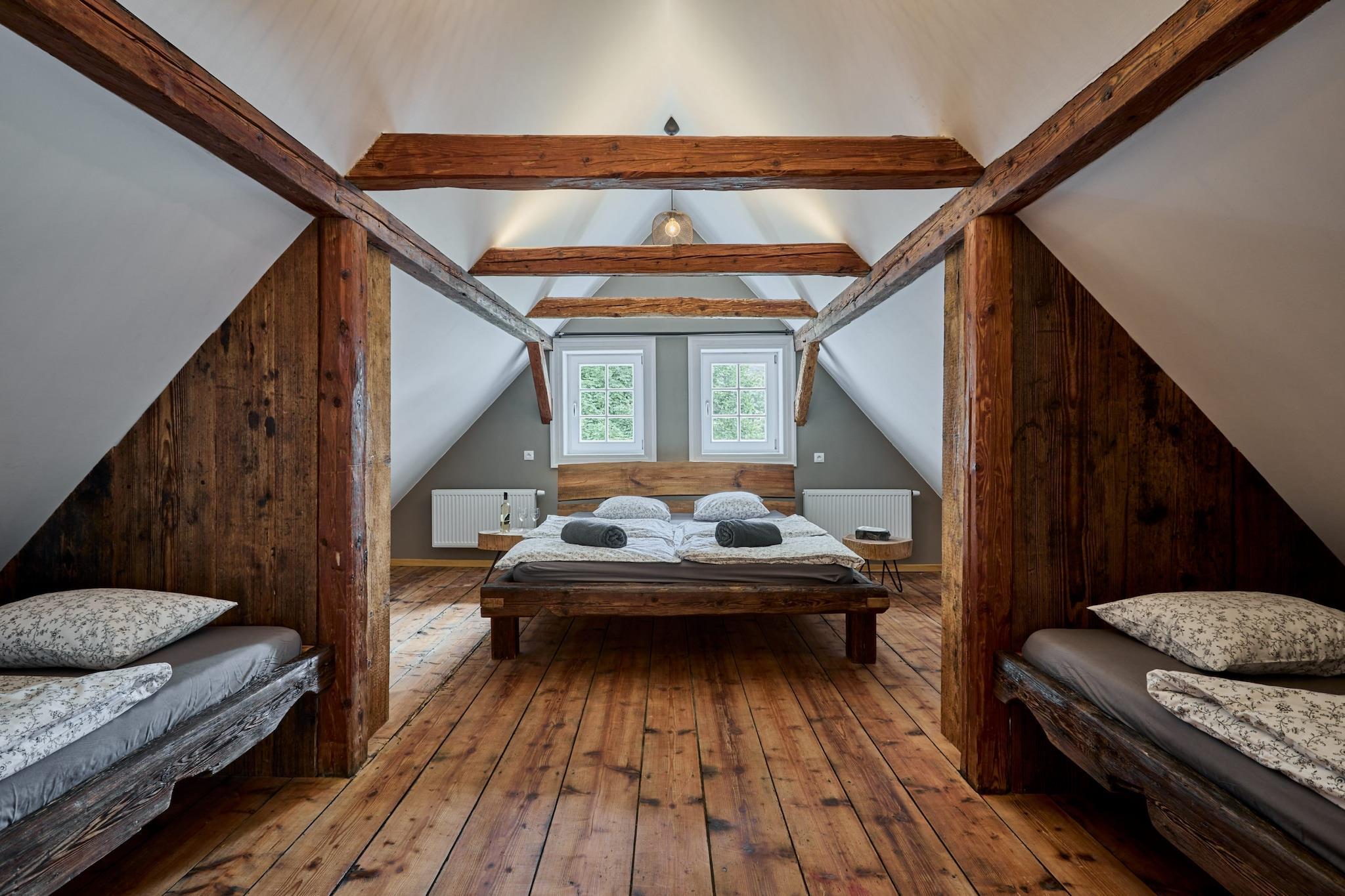 This charming red house in Horni Marsov is a standout in the area, offering a unique and authentic atmosphere. Located in Eastern Bohemia, this town is a paradise for winter sports enthusiasts, boasting excellent skiing and snowboarding opportunities. Whether you're seeking a winter retreat or simply looking to enjoy the stunning scenery, this house is the perfect base for your adventures. With plenty of space, it comfortably accommodates up to 12 guests. The area surrounding the house is full of year-round attractions. In winter, the nearby ski resorts, including Cerna Hora and Mlade Buky, provide fantastic skiing conditions. The iconic Snezka mountain, the highest peak in the Czech Republic, is a must-visit for both winter sports and summer hiking. In warmer months, explore Janske Lazne’s treetop walk, or enjoy a day at the swimming pool. The charming nearby villages offer great dining options and the town of Trutnov, just 15 km away, is definitely worth exploring. Ideal for large families or groups, the house features three spacious bedrooms and a well-equipped kitchen, making it easy to prepare meals for everyone. The kitchen includes all necessary appliances, such as a dishwasher, oven, fridge, and cookware, so you can focus on enjoying your time together. After a day of skiing or exploring, unwind in the cozy living room, complete with a TV for your favorite shows. You can also enjoy games with your group or relax with a good book. Outside, the beautiful garden offers a great space to play, relax, and enjoy the peaceful surroundings. The terrace is perfect for enjoying a cold drink or firing up the barbecue as you take in the evening sunset.