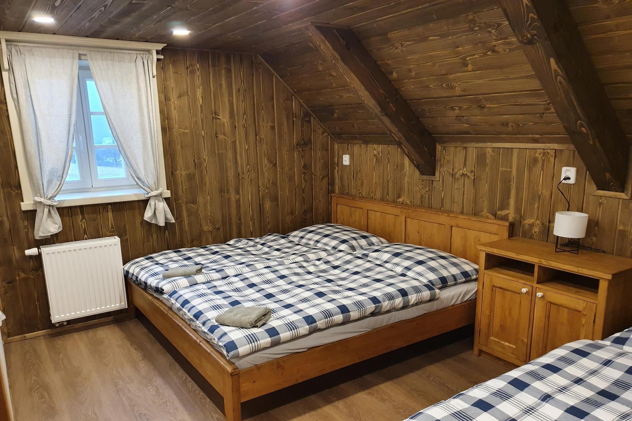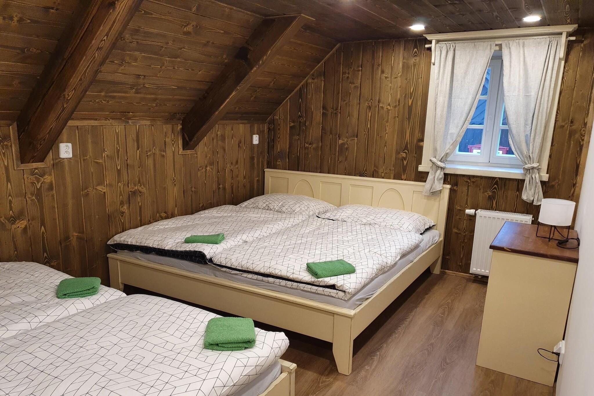 Looking for the perfect getaway for your large family? This villa, nestled in the heart of the ski area, is ideal for families of up to 13 people. Whether you're hitting the slopes in winter or soaking in the stunning views during summer, this villa offers a cozy retreat for everyone to enjoy together. Located in the scenic ski area of Cerna Hora, this villa is surrounded by fantastic opportunities for outdoor adventures. With ski resorts within 10 km, you'll have plenty of options for winter fun. In summer, explore the treetop trails, hike up Snezka mountain, or enjoy a round of golf. Take a swim in nearby pools or visit charming villages like Janske Lazne and Mlade Buky. With so much to offer, this villa is the ultimate destination for creating unforgettable memories. With 4 spacious bedrooms and 4 bathrooms, this villa ensures everyone has room to relax. The kitchen is well-equipped to make family meals a breeze, with everything you need from a fridge to an oven and microwave. After a delicious meal, clean-up is a cinch with the dishwasher. Unwind on the comfy sofas in the living area, whether you're watching a movie, enjoying a book, or hosting a friendly board game night. Outside, the garden and terrace are perfect for sipping drinks, while kids and pets have plenty of space to play.