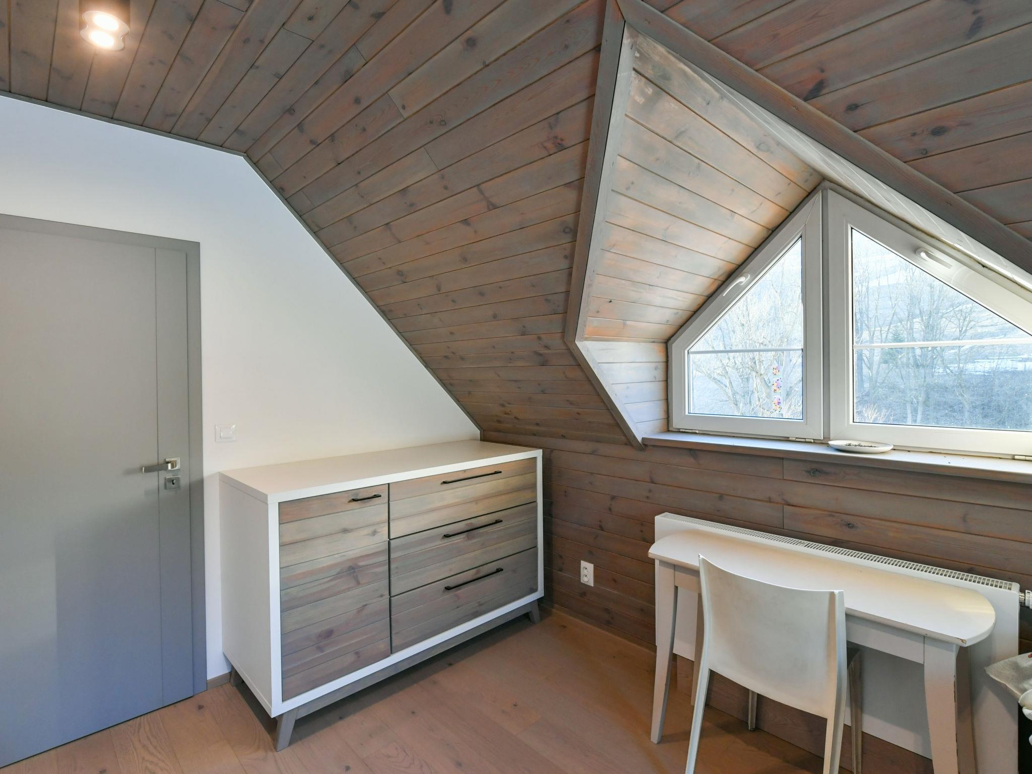 4-room apartment 100 m2, on the top floor. Very beautiful and tasteful furnishings: living/dining room with sloping ceilings with rooflight with dining table, digital TV and wood-burning stove. 2 rooms, each room with 2 beds. 1 room with 1 double bed. Kitchenette (oven, dishwasher, 4 induction hot plates, toaster, microwave, electric coffee machine). Shower/bidet/WC, sep. WC. Beautiful view of the countryside and the forest. Facilities: sauna. Internet (WiFi, free). Parking (2 cars) at the house. Please note: suitable for families. Non-smokers only. Smoke alarm, fire extinguisher.
