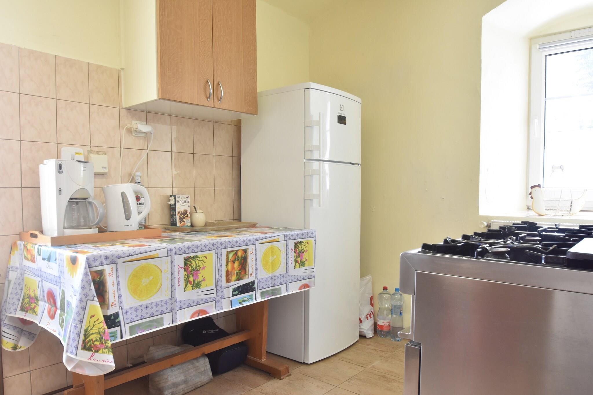 Close to the Lipno lake in lábek, lies this 5-bedroom holiday home. Perfect for a group of 10 or families with children, it offers an infrared sauna to unwind and a private swimming pool to take a refreshing dive. The Lipno Lake offers wonderful views and many activities like fishing, swimming, and water sports. There are several cycling and walking trails to explore. Culture lovers can visit the town centre at 2 km with the ambience of a bygone era. The supermarket and restaurants are at 2 km. You can enjoy the slopes of the Sumava Mountains during winter. The holiday home is cosy with central heating, a spacious living room and a modern kitchen. There is a table football for recreation and a terrace to relax outdoors with a cool drink. Try your culinary skills over the barbecue in the furnished garden. Play equipment, trampoline, cot and high chair are available. Public transport is at 500 m. The rate for gas is 7.50 euros per cubic m and will be charged locally to the caretaker.
