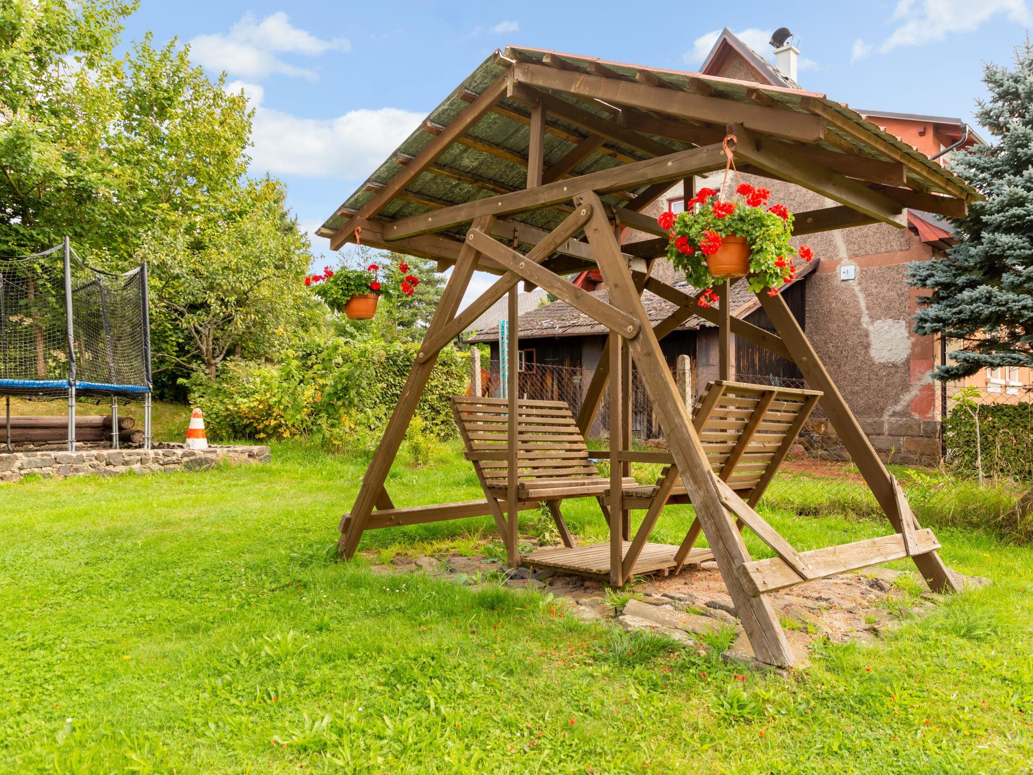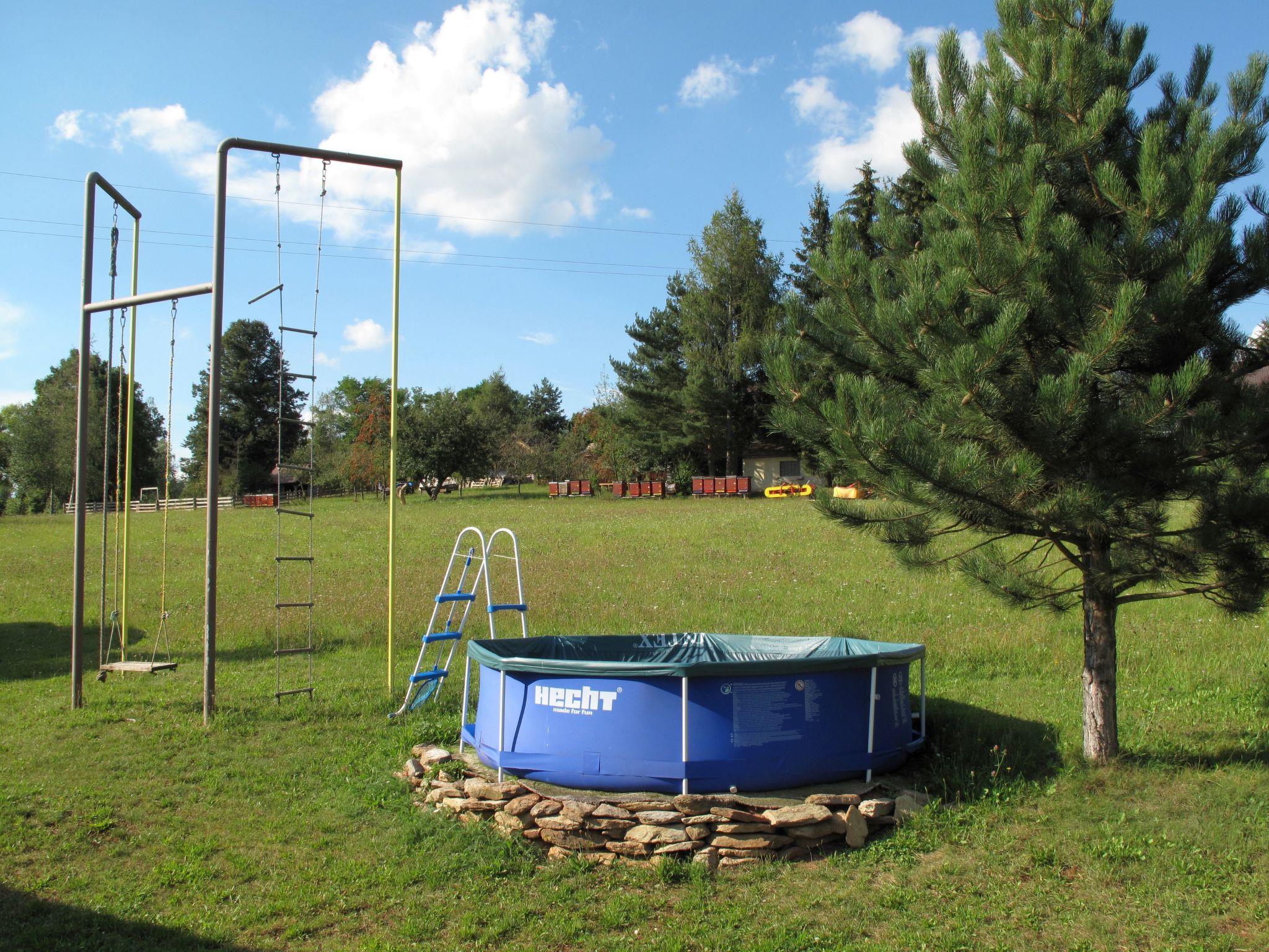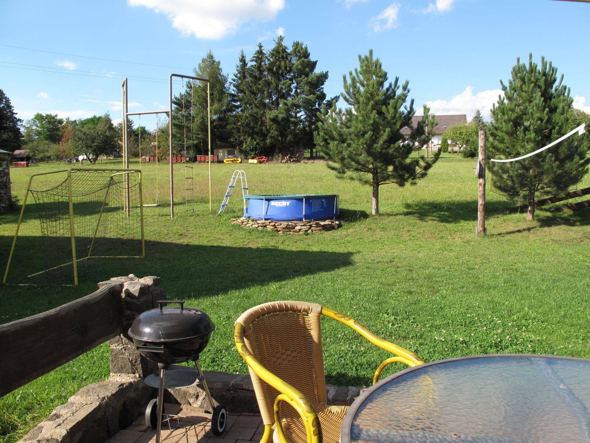 Slemeno, 2 km from Dolní Kalná: Modern, beautiful 2-family house "Relax apartment", 400 m a.s.l.. 900 m from the centre of Slemeno, on the outskirts, 5 km from the centre of Hostinné, 13 km from the centre of Jilemnice, 6 km from the skiing area. For shared use: property 1'200 m2, lawn. Private: swimming pool (above ground) round (3,6 m diameter, depth 80 cm, seasonal availability: 01.Jul. - 31.Aug.). Terrace, garden furniture, barbecue, fireplace, parking (for 2 cars) at the house. Shop 2 km, supermarket 5 km, restaurant 4 km, bus stop 900 m, railway station "Hostinné" 5 km, outdoor swimming pool 3 km, indoor swimming pool 13 km. Golf course (18 hole) 20 km, walking paths from the house, cycle lane 50 m, ski lift 16 km, chair lift 20 km, slopes 6 km, ski rental 16 km, ski school 16 km, children's ski school 16 km, cross country ski track 6 km. Nearby attractions: Jilemnice 13 km, Zvicina 15 km, Vrchlabí 16 km, Trutnov 17 km, Pec pod Snežkou 34 km, Zoo Dvur Králové, zámek Kuks (UNESCO). Well-known ski regions can easily be reached: Knežický vrch - Vrchlabí 16 km, Mladé Buky 20 km, Pec pod Snežkou 34 km. Well-known lakes can easily be reached: Dolce 18 km. Please note: the owner lives in the same residence. Owner lives in separate semi-detached house. Separate grass pitch available including goals and net for ball games.