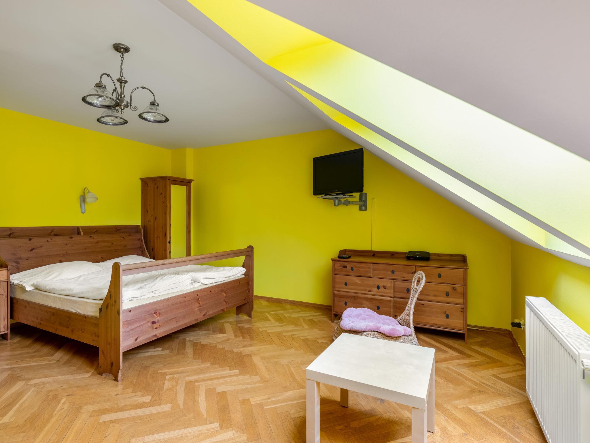 "Horakova", 3-room apartment 66 m2, on the top floor. Beautiful and cosy furnishings: 1 room with sloping ceilings with 1 double sofabed, 1 double bed, shower/WC and satellite TV. 1 room with sloping ceilings with 1 double bed, shower/WC and satellite TV. Kitchen-/living room (dishwasher, 2 ceramic glass hob hotplates, kettle, microwave) with dining table. Heating. Terrace. Terrace furniture, barbecue. Facilities: children's high chair, baby cot. Internet (WiFi, free). Please note: suitable for families. Non-smokers only.