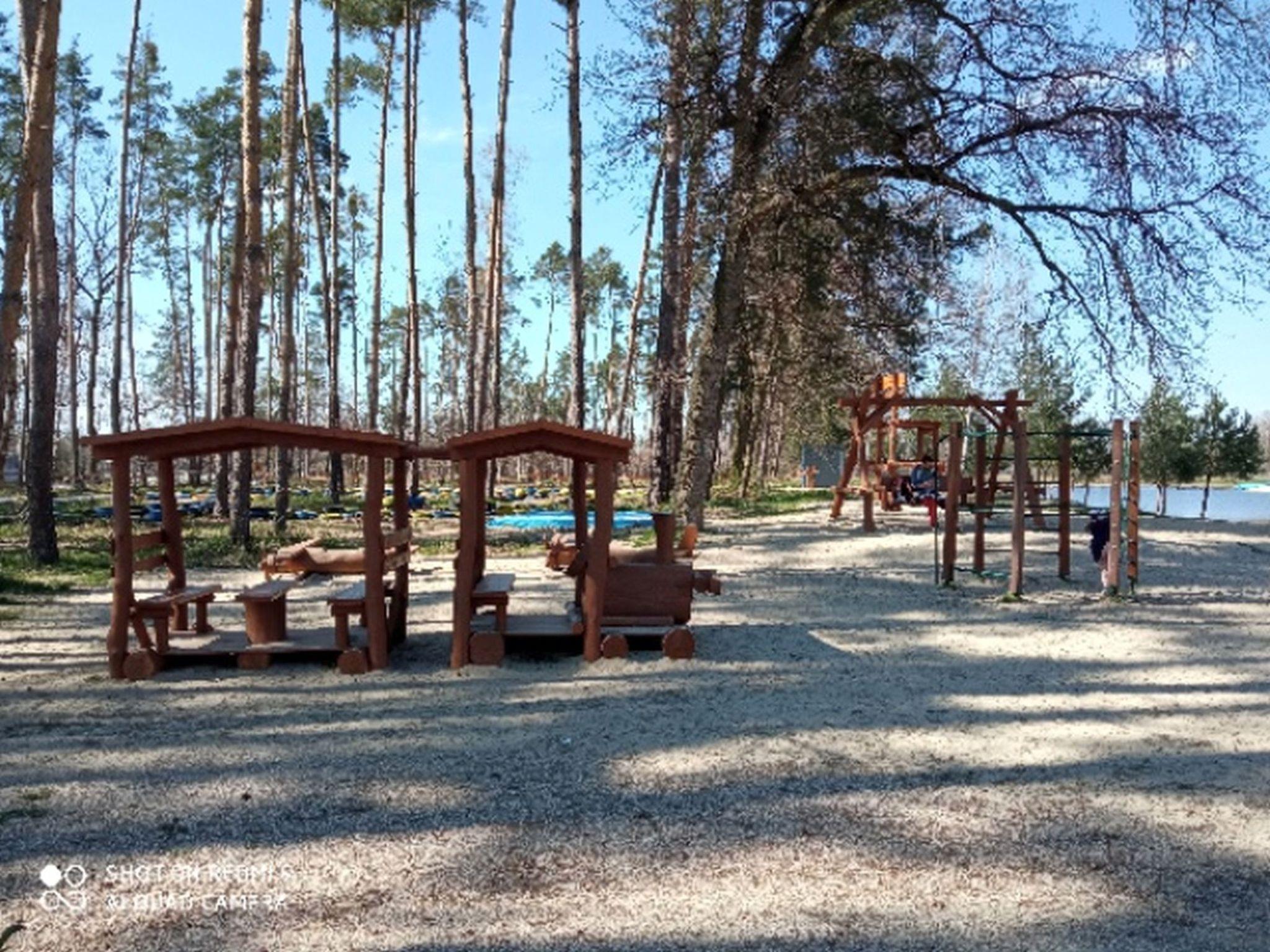 Child friendly holiday village "Kemp Stríbrný rybník". 25 houses in the resort. In the district of Malšova Lhota, 5 km from the centre of Hradec Králové, along the wooded area, on the lake. For shared use: property. Table tennis, boccia (extra), beach volleyball, arbour, barbecue, fireplace, children's playground, bathing jetty. In the complex: reception, restaurant, bar, bistro, playroom, washing machine (for shared use, extra), bicycle rental. Parking (extra) on the premises. Bus stop "Stríbrný rybník" 700 m, railway station "Blešno" 5 km, sandy beach, bathing lake 50 m. Sports harbour, minigolf, sports centre, walking paths from the house, cycle lane, fishing possibilities 50 m. Nearby attractions: Adventure park Firmsport, letní kino, tutistický vlácek do lesa, Stezka siluet, Rytírské hradište 3 km, Park Na Vetvi 3 km, Obory se zverí 4.2 km, Obrí akvárium, Botanická zahrada 4.7 km. Hiking paths: Pohádková, Vodnická stezka 6 km, Planetárium, planetární stezka 8.4 km, Zoopark Stežery, Rozhledna Milír 15 km. Please note: entertainment in the season. Suitable for families. Fishing [permit required]. The photograph shows a typical example.