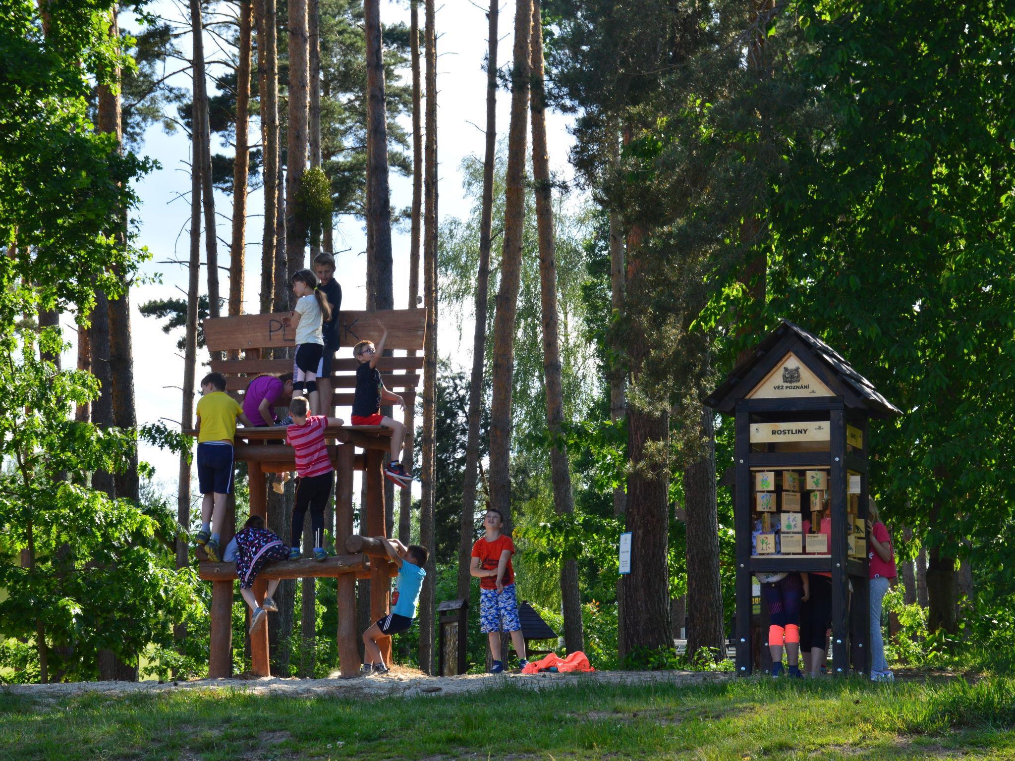 Child friendly holiday village "Kemp Stríbrný rybník". 25 houses in the resort. In the district of Malšova Lhota, 5 km from the centre of Hradec Králové, along the wooded area, on the lake. For shared use: property. Table tennis, boccia (extra), beach volleyball, arbour, barbecue, fireplace, children's playground, bathing jetty. In the complex: reception, restaurant, bar, bistro, playroom, washing machine (for shared use, extra), bicycle rental. Parking (extra) on the premises. Bus stop "Stríbrný rybník" 700 m, railway station "Blešno" 5 km, sandy beach 50 m, bathing lake "50". Sports harbour, minigolf, sports centre, walking paths from the house, cycle lane, fishing possibilities 50 m. Nearby attractions: Adventure park Firmsport, letní kino, tutistický vlácek do lesa, Stezka siluet, Rytírské hradište 3 km, Park Na Vetvi 3 km, Obory se zverí 4.2 km, Obrí akvárium, Botanická zahrada 4.7 km. Hiking paths: Pohádková, Vodnická stezka 6 km, Planetárium, planetární stezka 8.4 km, Zoopark Stežery, Rozhledna Milír 15 km. Please note: entertainment in the season. Suitable for families. Fishing [permit required]. The photograph shows a typical example.