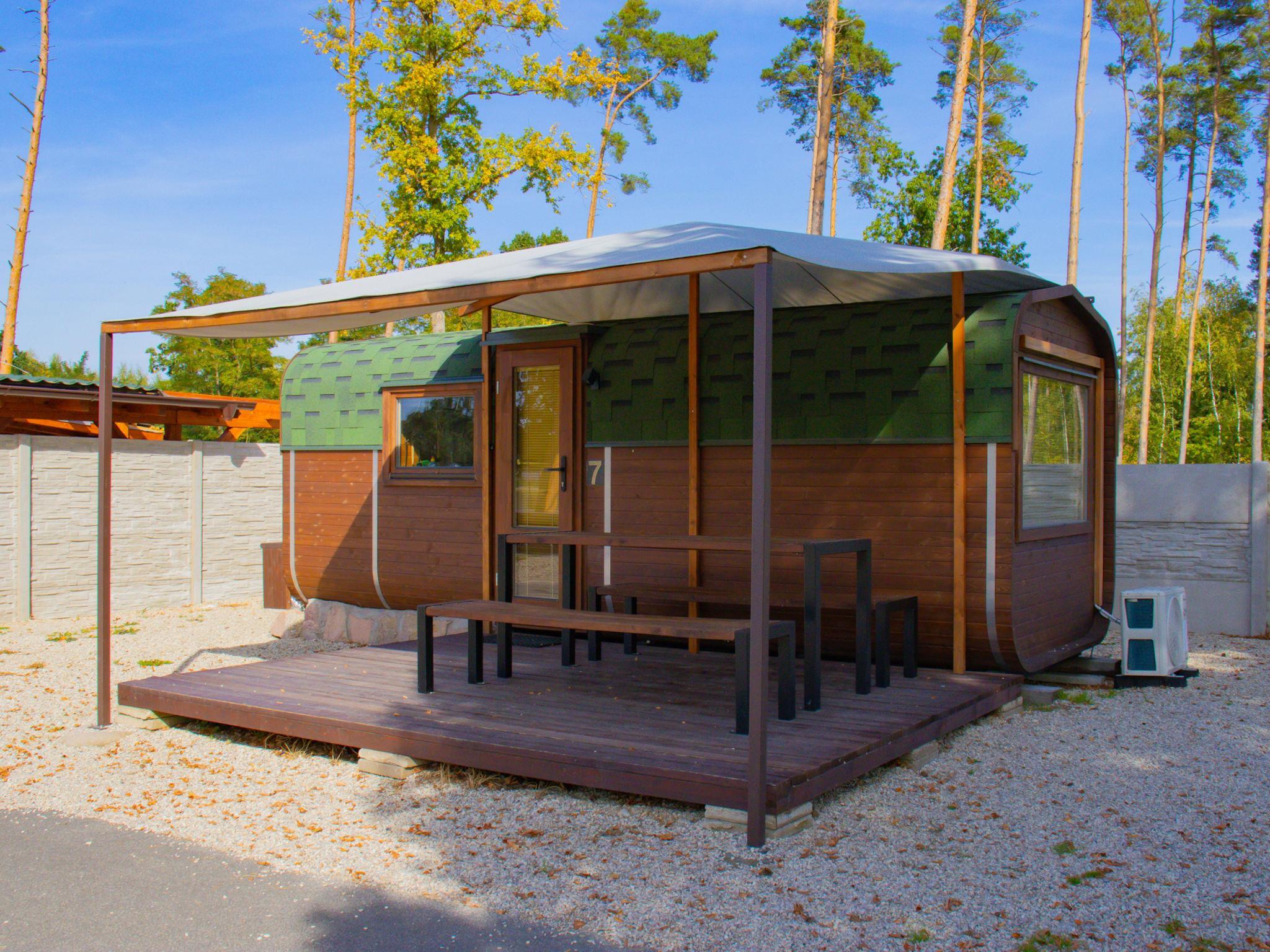 2-room mobile home. 1 room with 1 double bed and satellite TV. Kitchen-/living room (2 ceramic glass hob hotplates, kettle, microwave) with 1 x 2 bunk beds. Shower/WC. Heating, air-conditioning. Terrace furniture. Facilities: Internet (WiFi, free). Maximum 2 pets/ dogs allowed.