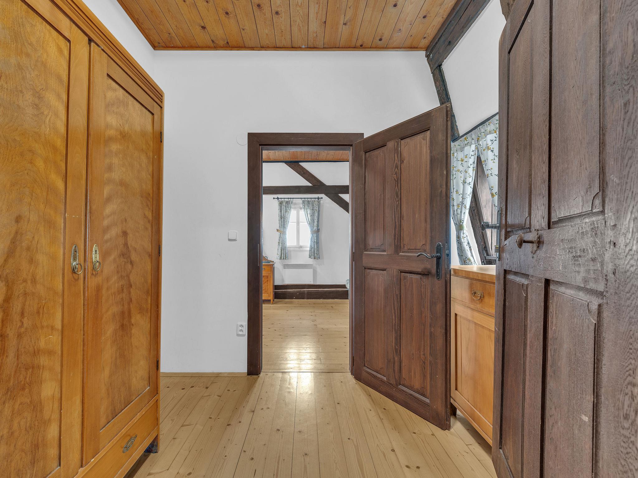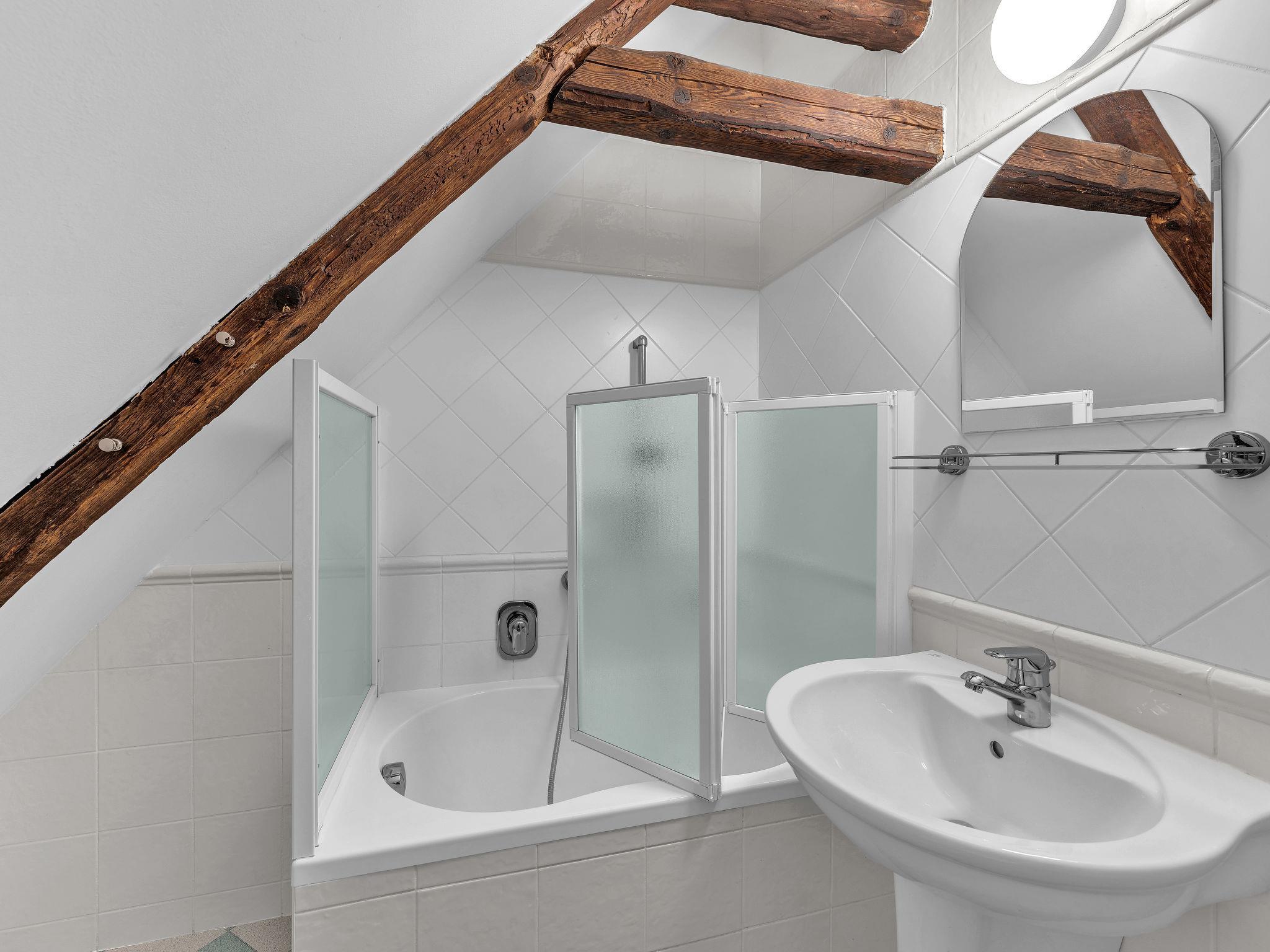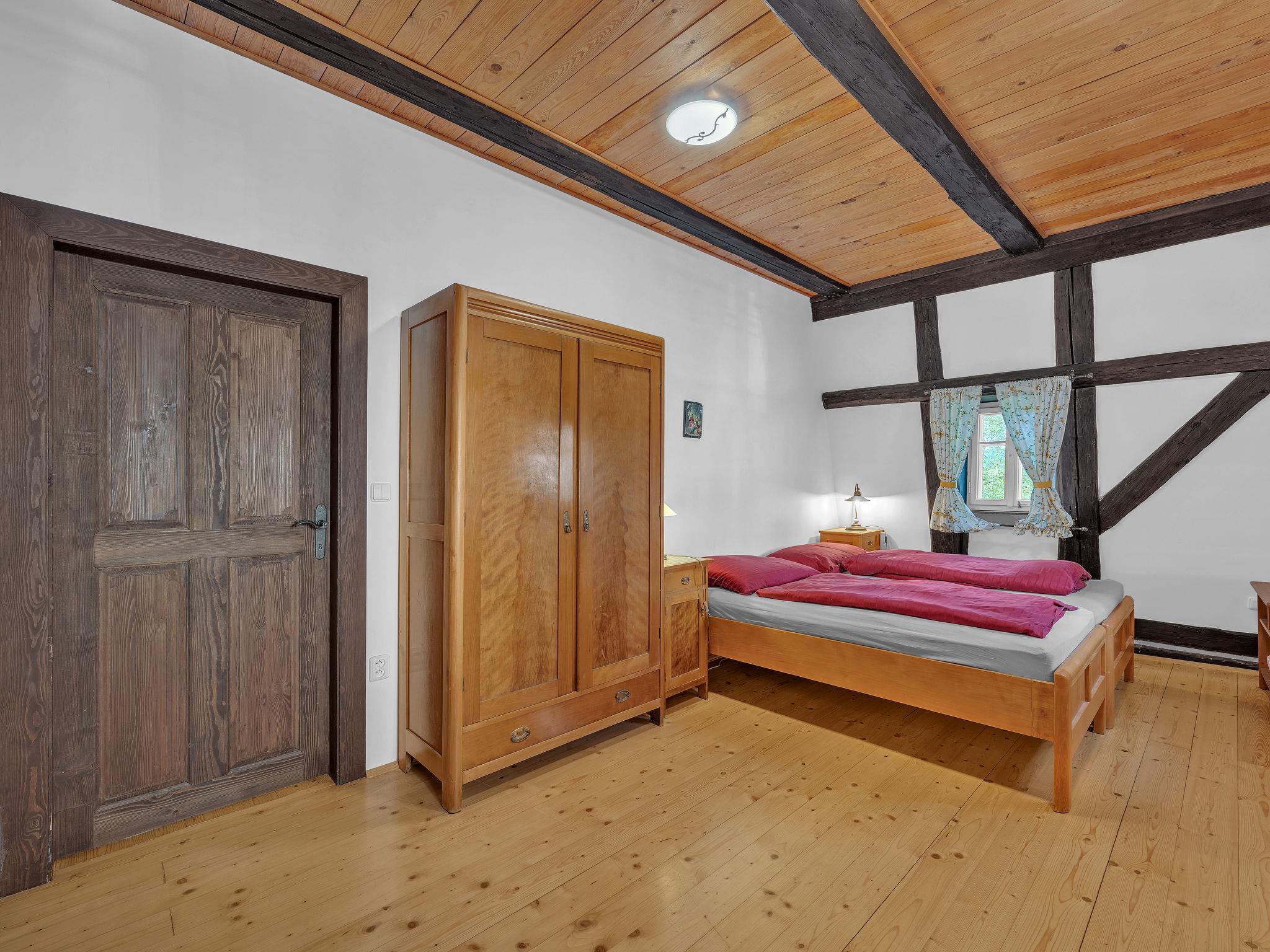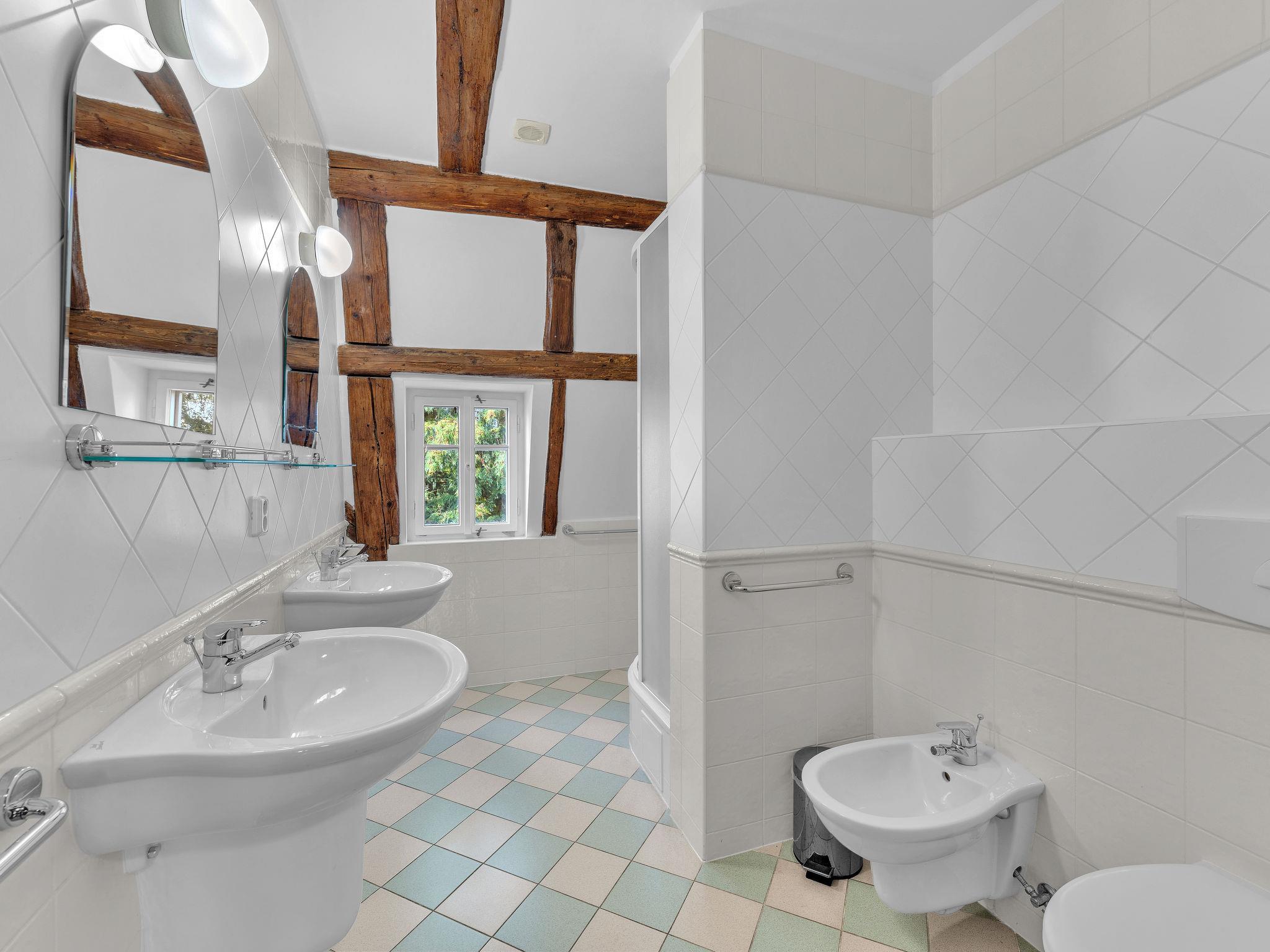 6-room house 140 m2 on 3 levels. Antique furnishings: living room with dining table, international TV channels and tiled stove. 1 room with 1 double bed and shower/WC. Kitchenette (oven, dishwasher, 4 ceramic glass hob hotplates, kettle, microwave). Sep. WC. On the lower ground floor: shower/WC, Sauna. Upper floor: 1 room with 1 double bed and shower/bidet/WC. 1 room with 1 double bed and shower/bidet/WC. Top floor: 1 room with sloping ceilings with 1 double bed and shower/WC. 1 room with sloping ceilings with 1 double bed and bath/WC. Heating. View of the garden and the countryside. Facilities: washing machine. Internet (WiFi, free). Please note: suitable for families. Non-smoking house. Smoke alarm. On the ground floor, there is a second separate kitchen unit with a microwave oven, refrigerator and stove.