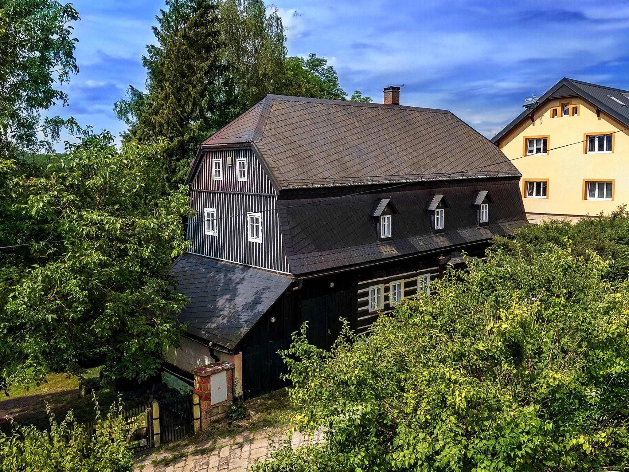 In the heart of the Bohemian Switzerland National Park, registered as a cultural monument, "rustico" cottage "Mezná u Hrenska", 3 storeys, detached, built in 1804, renovated in 2004. In the resort, in a quiet, sunny position, 100 m from the edge of the forest. Private: property 1'100 m2 (fenced), garden. Terrace, garden furniture, barbecue, fireplace. Storeroom available. Parking (for 5 cars) at the house. Shop 5 km, shopping centre 17 km, restaurant 50 m, bus stop "Mezná" 300 m, outdoor swimming pool 10 km. Nearby attractions: Soutesky Hrensko 1.8 km, Pravcická brána, Skalní hrad Šaunštejn 5 km, Dolský Mlýn 7 km, Jetrichovické vyhlídky (Pohovka, Rudolfuv kámen, Vilemínina stena, Mariina skála) 10 km, Skalní hrad Falkenštejn 10 km. Heating: radiators with heat pump.