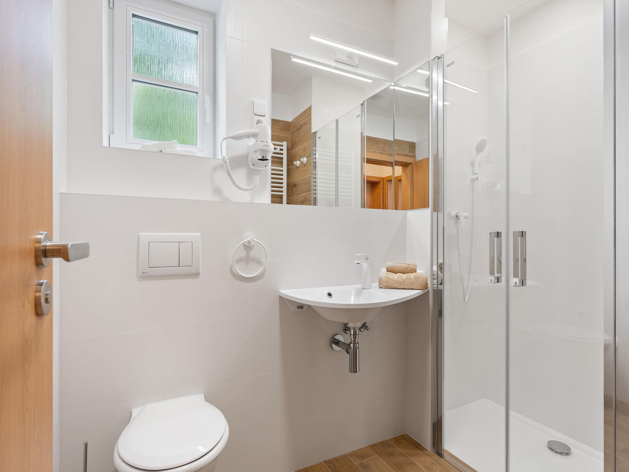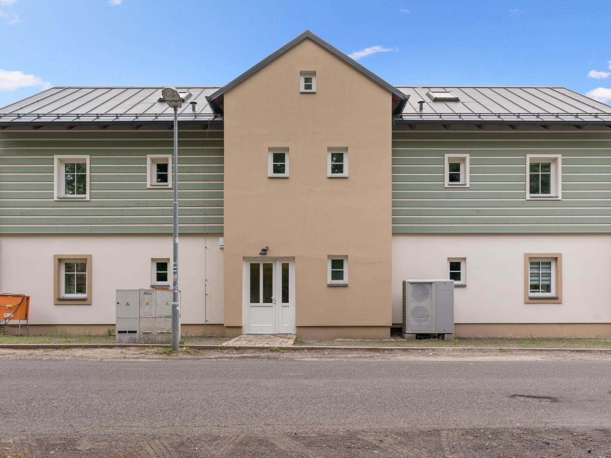 Mezná: Child friendly, modern, cosy residence "V kapradí", 3 storeys, built in 2025, surrounded by trees. 4 apartments in the property. In a quiet, sunny, elevated position, 600 m from the river, in the countryside. For shared use: property 1'000 m2. Patio, garden furniture, barbecue, children's playground (slide, sandbox). In the house: WiFi, central heating system, burglar alarm system. Storeroom available. Parking (for 6 cars) at the house, public parking 200 m on the road. Shop 2 km, grocery 2 km, supermarket 5 km, restaurant 400 m, bicycle rental 5 km, bus stop "Hrensko, Mezná" 500 m, thermal baths "Bad Schandau" 18 km. Golf course (9 hole) 6 km, cross country ski track 6 km. Nearby attractions: Soutesky Hrensko 1,8 km, Pravcická Brána 2 km, Skalní hrad Šaunštejn 5 km, Dolský Mlýn 7 km, Jetrichovické vyhlídky 10 km, Skalní hrad Falkenštejn 10 km, Bad Schandau (D) 16 km, Adrenalin park Jedlová 27 km.