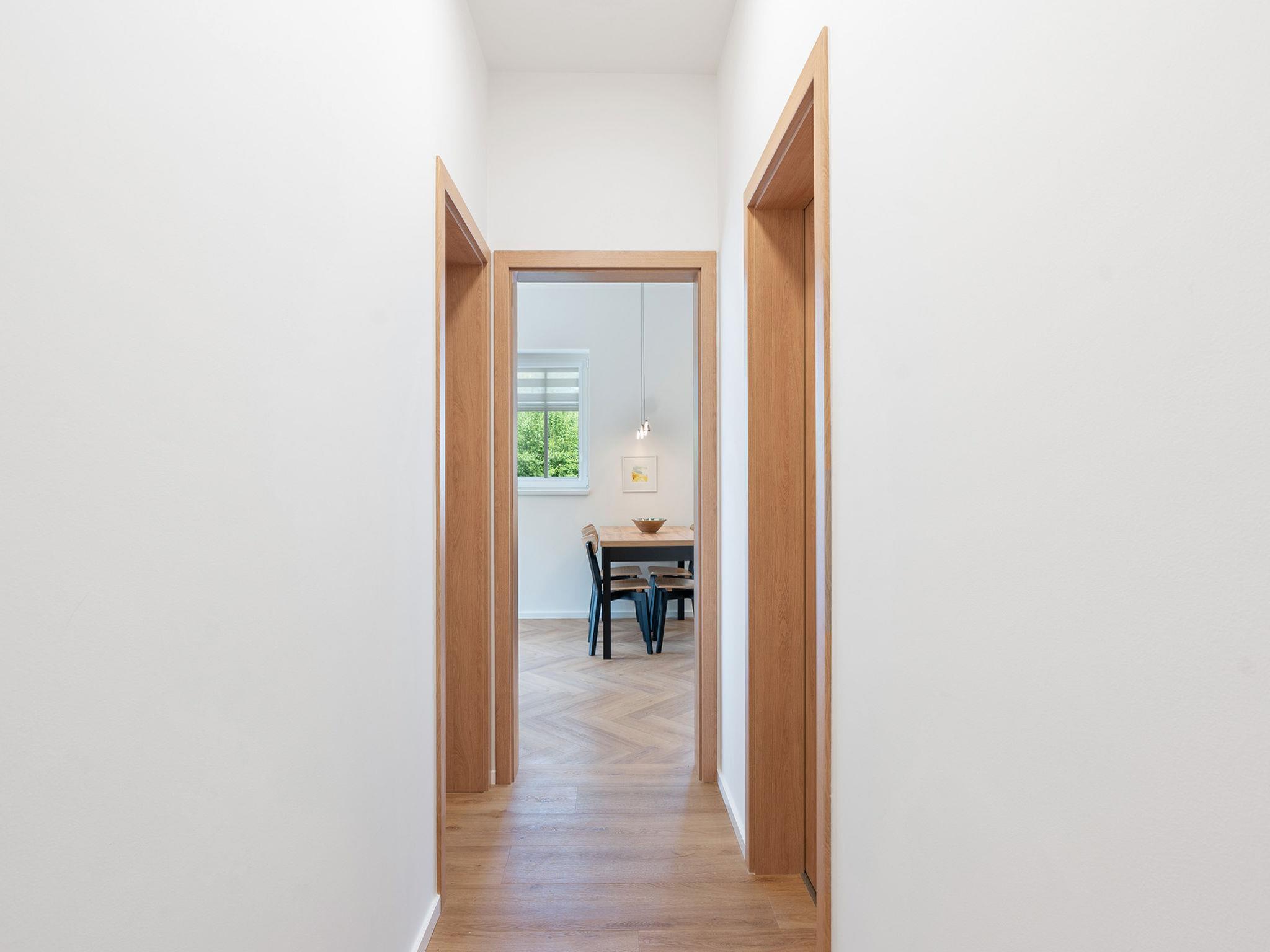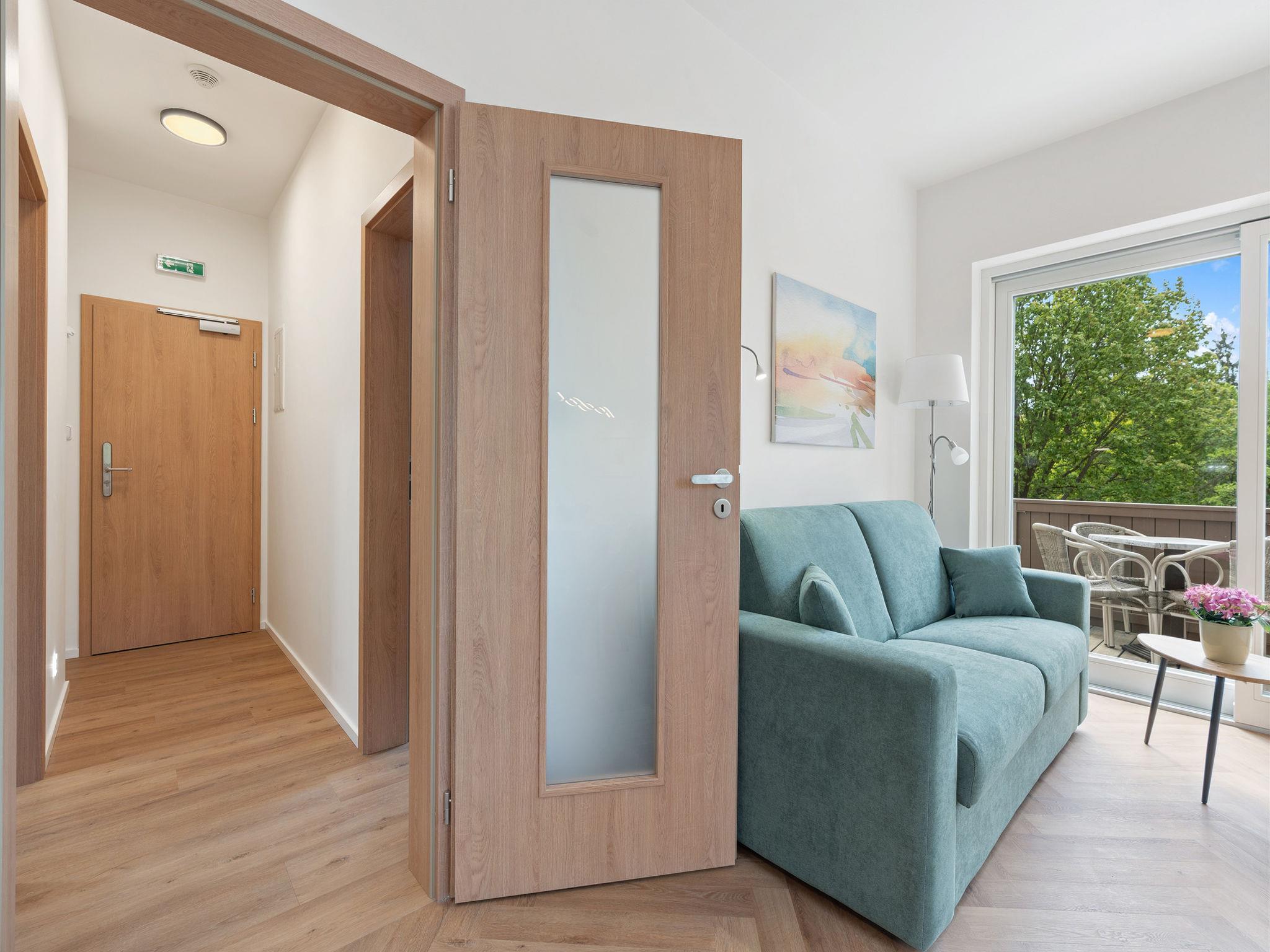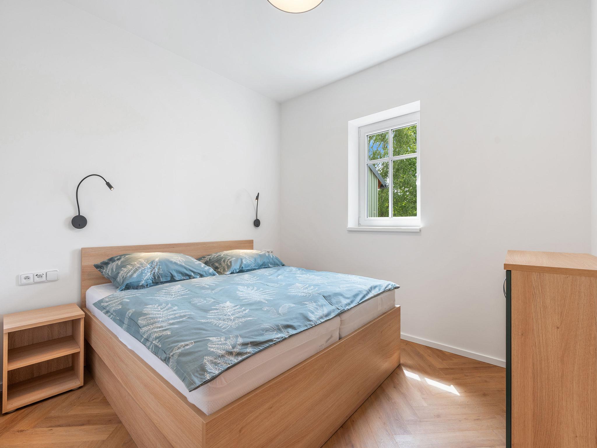 2-room apartment on the ground floor. Very beautiful furnishings: living/sleeping room with 1 double sofabed (140 cm), TV. Exit to the balcony. 1 room with 1 double bed. Kitchenette (oven, dishwasher, 2 ceramic glass hob hotplates, kettle, microwave, electric coffee machine) with dining nook. Shower/WC. Balcony. Balcony furniture. Beautiful view of the garden and the forest. Facilities: hair dryer. Internet (WiFi, free). Parking. Suitable for families. Maximum 2 pets/ dogs allowed.