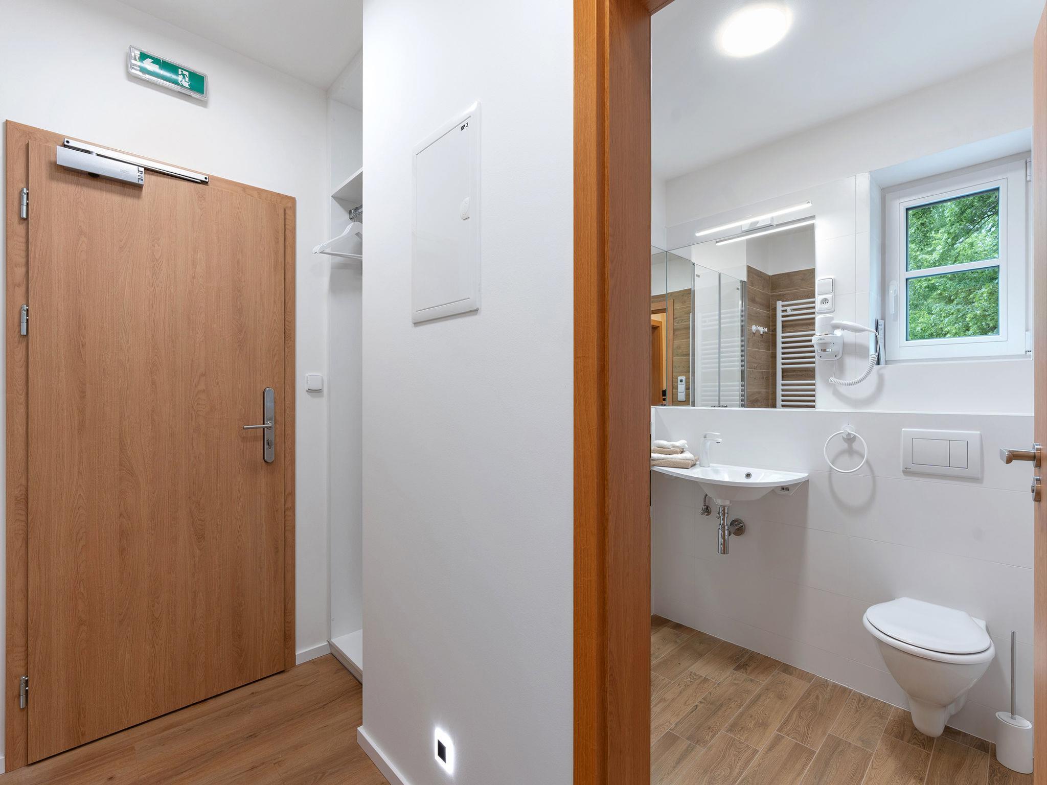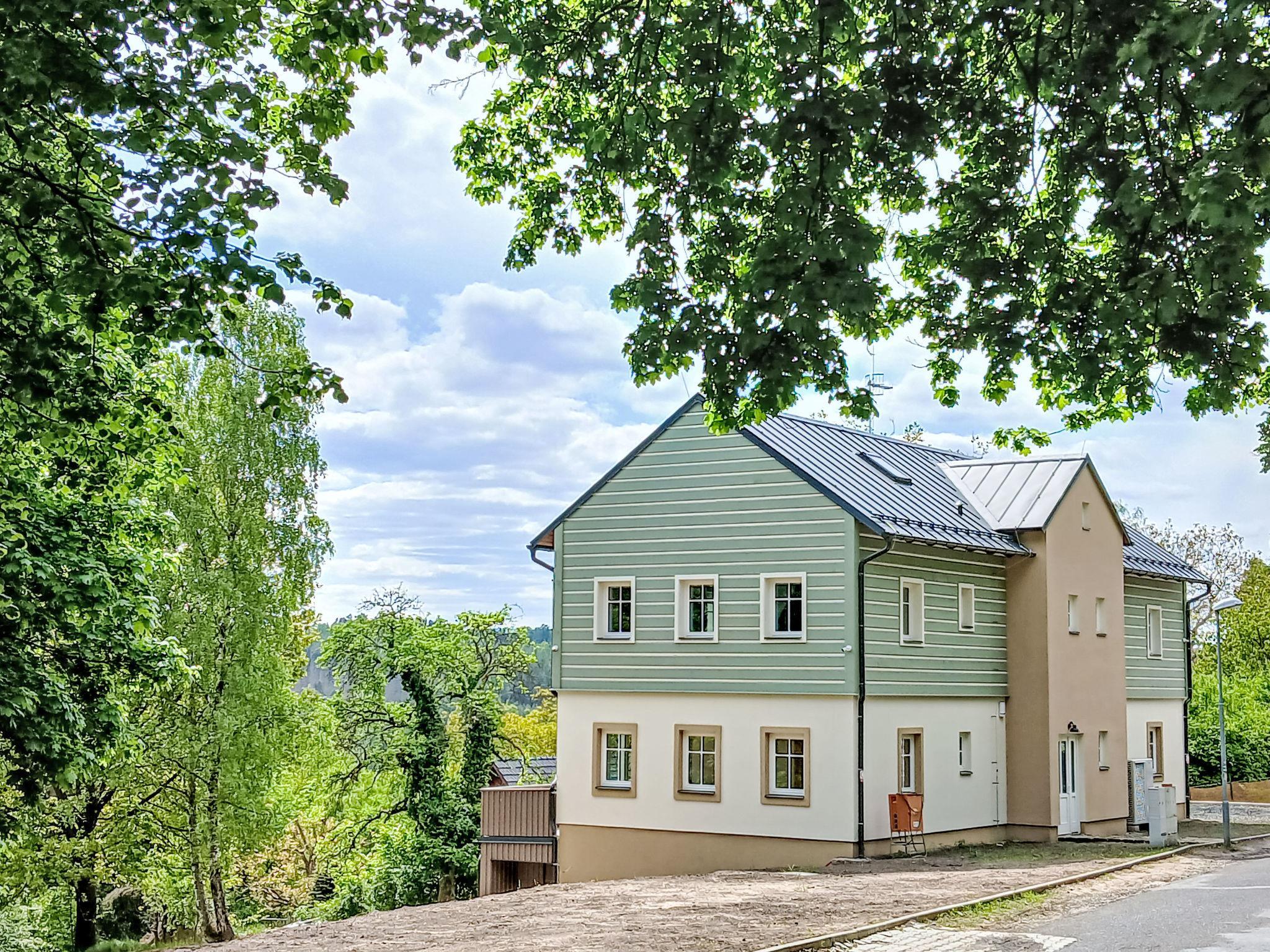 Mezná: Child friendly, modern, cosy residence "V kapradí", 3 storeys, built in 2025, surrounded by trees. 4 apartments in the property. In a quiet, sunny, elevated position, 600 m from the river, in the countryside. For shared use: property 1'000 m2. Patio, garden furniture, barbecue, children's playground (slide, sandbox). In the house: WiFi, central heating system, burglar alarm system. Storeroom available. Parking (for 6 cars) at the house, public parking 200 m on the road. Shop 2 km, grocery 2 km, supermarket 5 km, restaurant 400 m, bicycle rental 5 km, bus stop "Hrensko, Mezná" 500 m, thermal baths "Bad Schandau" 18 km. Golf course (9 hole) 6 km, cross country ski track 6 km. Nearby attractions: Soutesky Hrensko 1,8 km, Pravcická Brána 2 km, Skalní hrad Šaunštejn 5 km, Dolský Mlýn 7 km, Jetrichovické vyhlídky 10 km, Skalní hrad Falkenštejn 10 km, Bad Schandau (D) 16 km, Adrenalin park Jedlová 27 km.