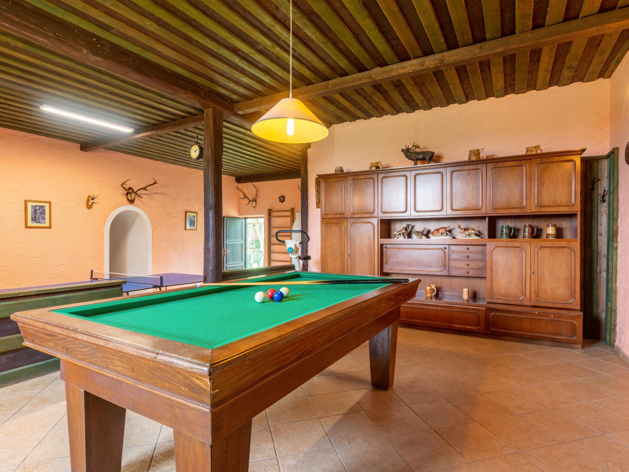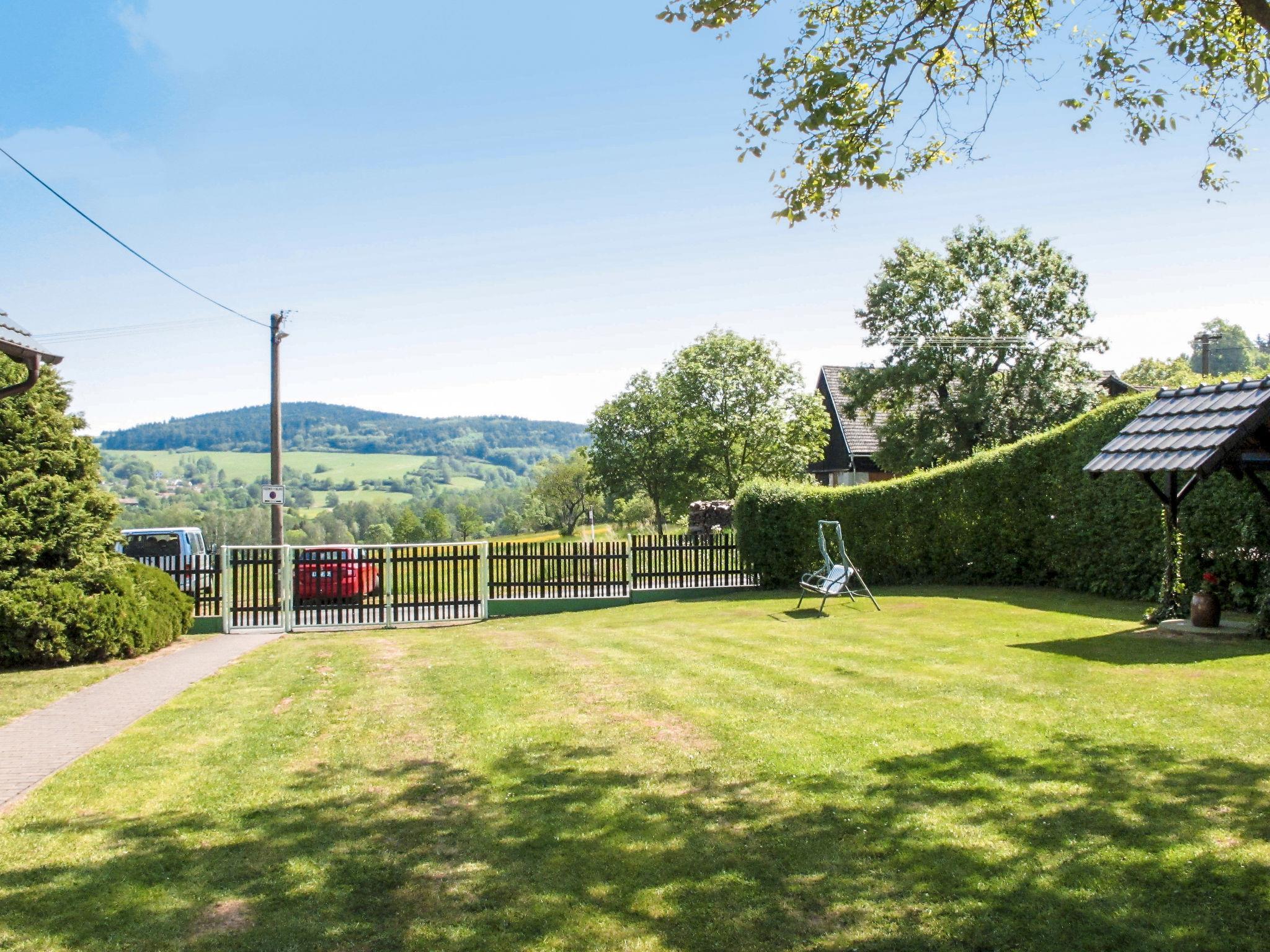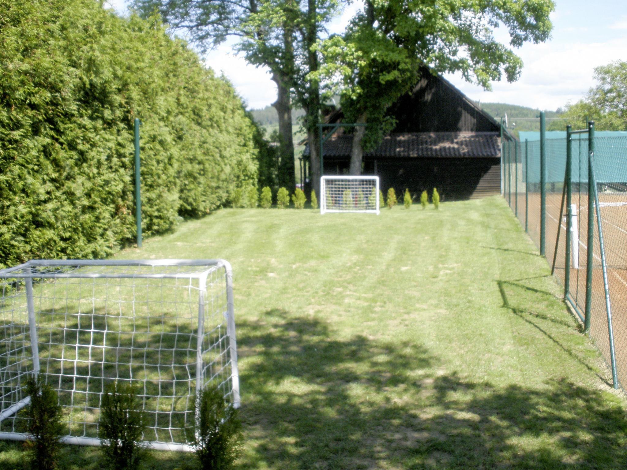 Very beautiful country house "Haus Polivka", 400 m a.s.l., surrounded by meadows and fields. In the resort Hurka u Nemcic, 12 km from the centre of Klatovy, 50 km from the centre of Bayerisch Eisenstein, in a quiet, sunny position, 15 km from the skiing area. Private: property 3'200 m2 (fenced), lawn and trees, meadow, swimming pool, indoor pool heated (6 x 3 m, depth 150 cm, seasonal availability: 01.Jan. - 31.Dec.). Tennis, table tennis, basketball, volleyball, badminton, volleyball court, terrace, garden furniture, barbecue, children's playground (swing). In the house: sauna, billiard table, playroom. Parking (for 6 cars) at the house. Shop 3 km, supermarket 12 km, restaurant 12 km, bus stop "Nemcice" 1 km, railway station "Klatovy" 12 km, outdoor swimming pool 12 km, indoor swimming pool 12 km. Ski lift 15 km, chair lift 40 km, slopes 40 km, ski rental 40 km, ski school 40 km, children's ski school 40 km.