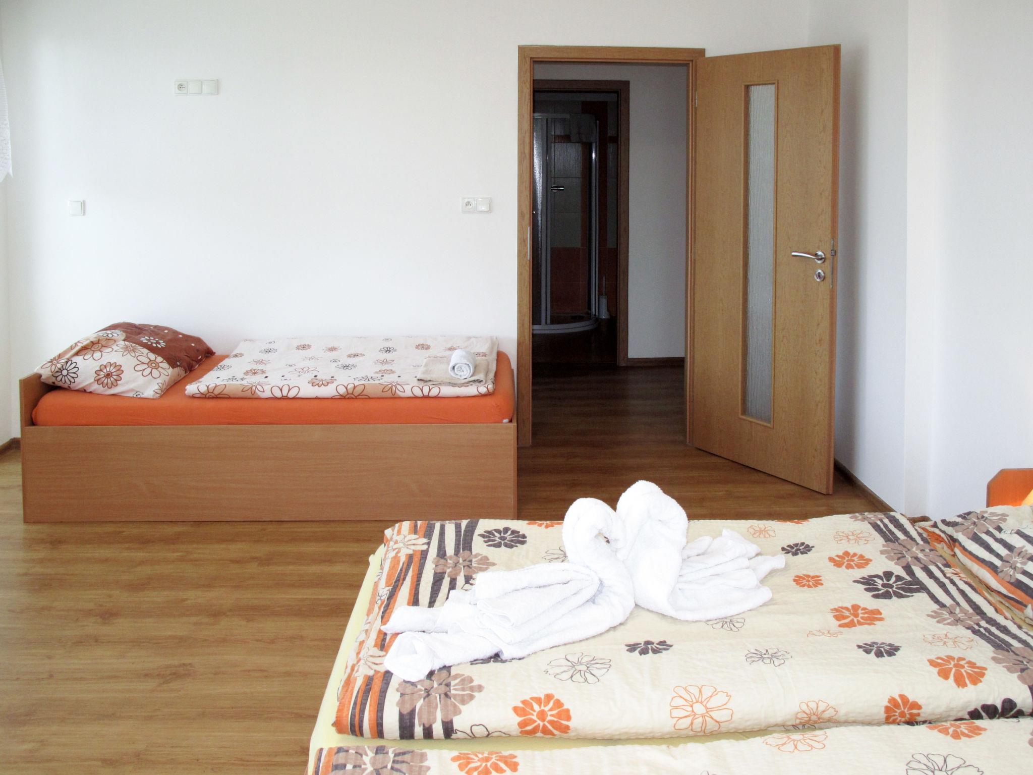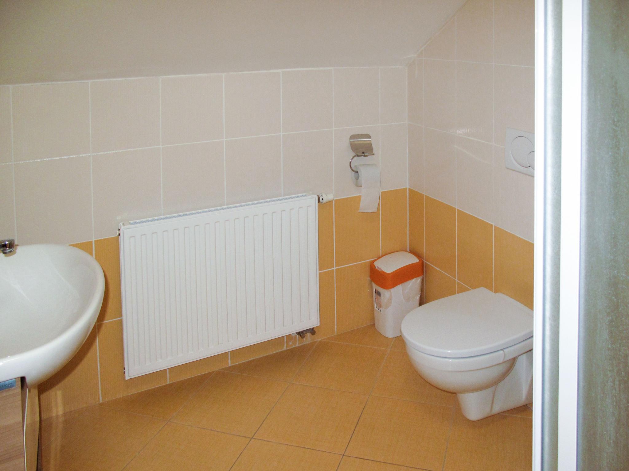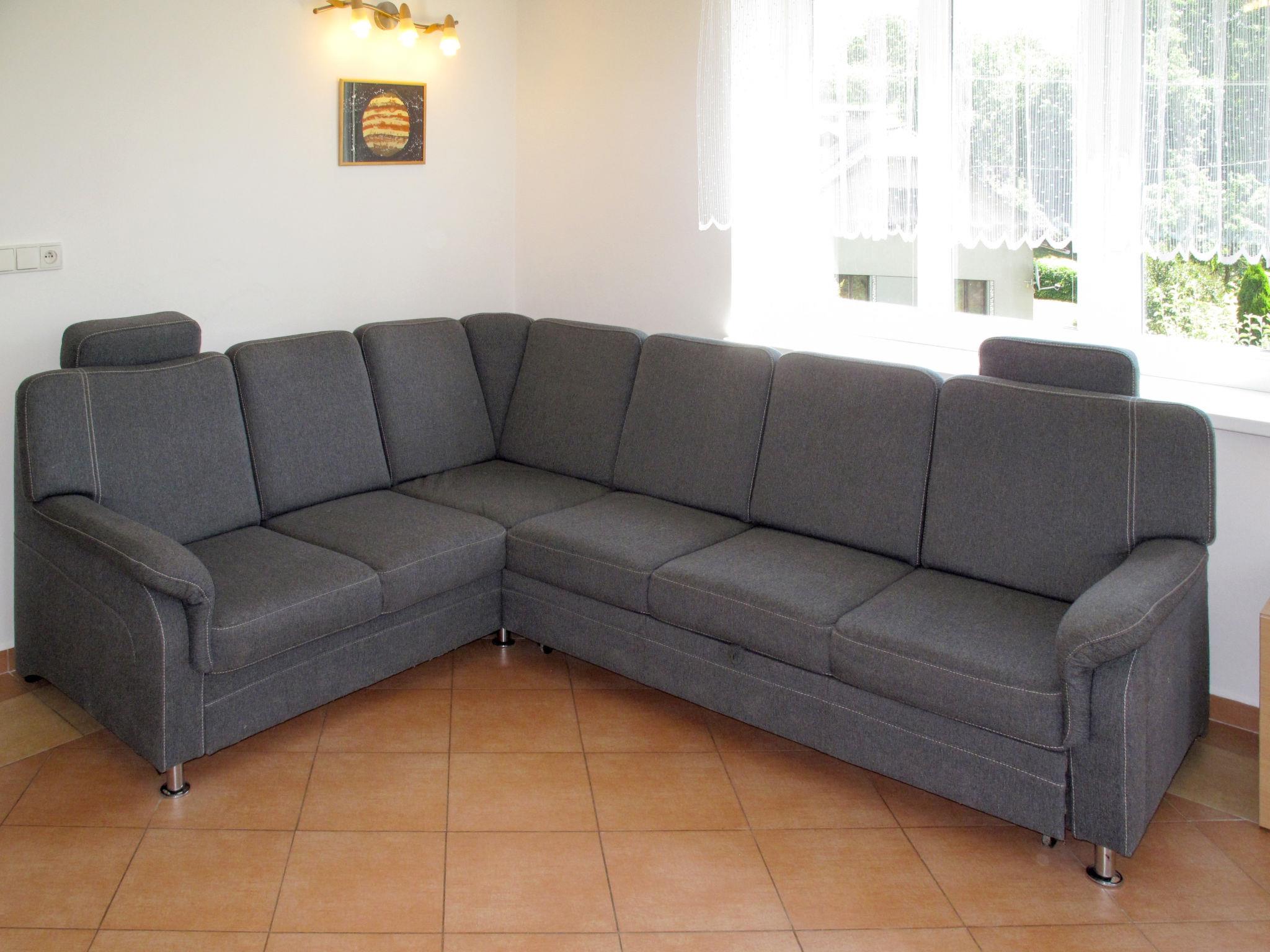 7-room house 220 m2 on 4 levels. Spacious and bright, renovated in 2012, beautiful furnishings: living/dining room with dining table, satellite TV and radio. Exit to the balcony. Kitchen (4 hot plates, oven, dishwasher, toaster, kettle, microwave, electric coffee machine). 2 sep. WC's. Gas heating. On the lower ground floor: 2 showers, 2 sep. WC's, Sauna. Gas heating. Upper floor: 1 room with 2 beds and bath/WC. 1 room with 1 bed and 1 double bed. Exit to the balcony. 1 room with 1 bed. Exit to the balcony. Shower/WC. Gas heating. Top floor: 1 room with sloping ceilings with 2 beds and shower/WC. 1 room with sloping ceilings with 2 beds. 1 room with sloping ceilings with 2 beds. Shower/WC. Gas heating. 2 large balconies. Balcony furniture. Panoramic view. Facilities: washing machine. Internet (WiFi, free). Please note: suitable for families. Non-smokers only. Maximum 2 pets/ dogs allowed.