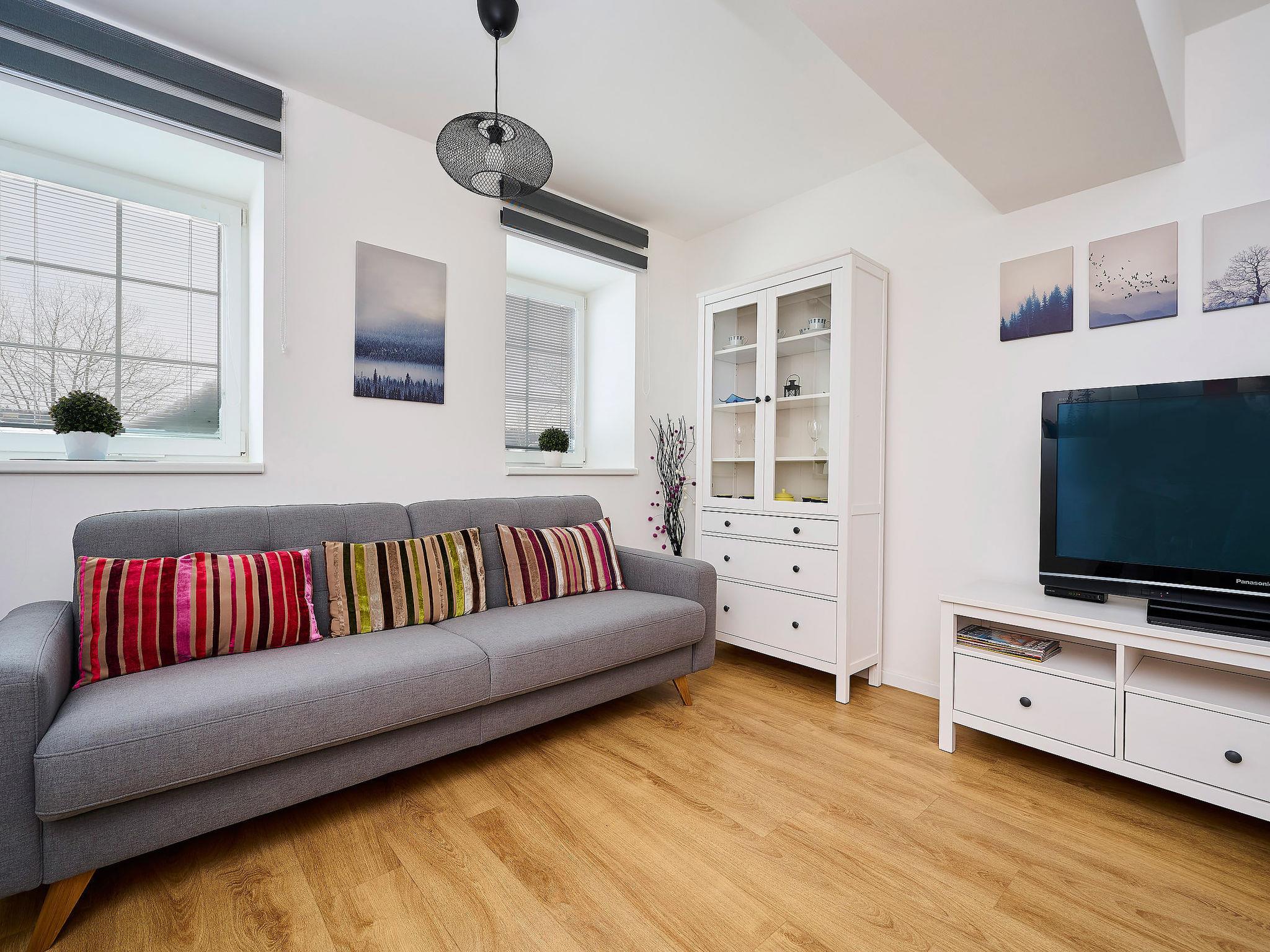 "Hašlerka", 2-room apartment 55 m2, on the ground floor. Bright, very beautiful and modern furnishings: living/dining room with 1 sofabed, 1 double bed and Scandinavian wood stove (only for decoration), dining table, TV and electric heater. 1 room with 1 sofabed, 1 french bed and electric heater. Kitchenette (oven, 4 ceramic glass hob hotplates, freezer). Shower/WC. Electric heating, underfloor heating. Box-room. View of the valley. Facilities: Internet (WiFi, free). Parking (2 cars) at the house. Please note: suitable for families. Non-smokers only.
