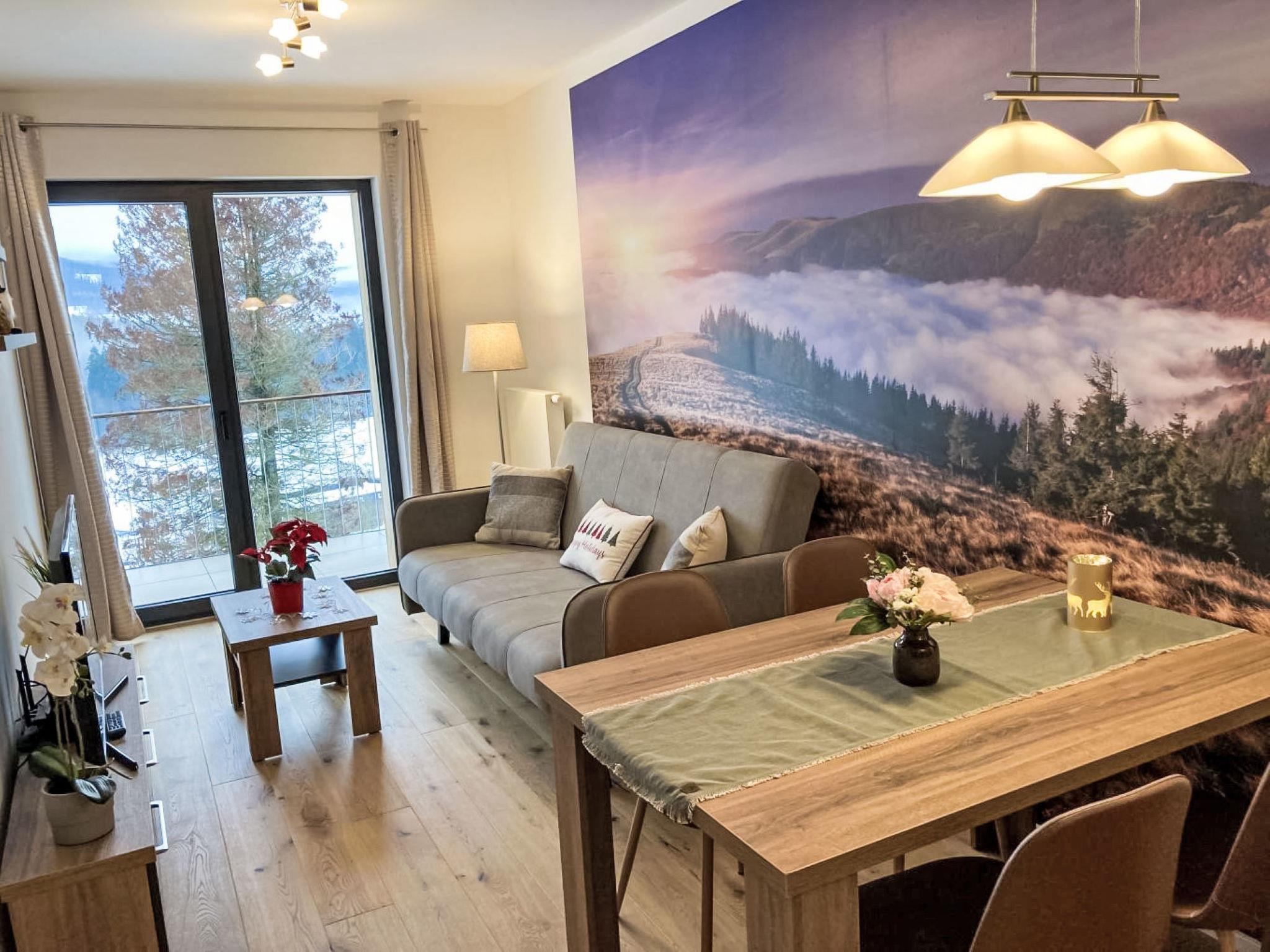 "Ski&Bike Siréna", 2-room apartment. Spacious: living room with 1 double sofabed and TV. Exit to the balcony. 1 room with 1 double bed. Kitchenette (oven, dishwasher, 4 ceramic glass hob hotplates, toaster, kettle, microwave, freezer, electric coffee machine) with dining table. Shower/WC. Balcony. Balcony furniture. Beautiful view of the countryside. Facilities: Internet (WiFi, free). Parking space n 7. Please note: suitable for families. Non-smokers only.