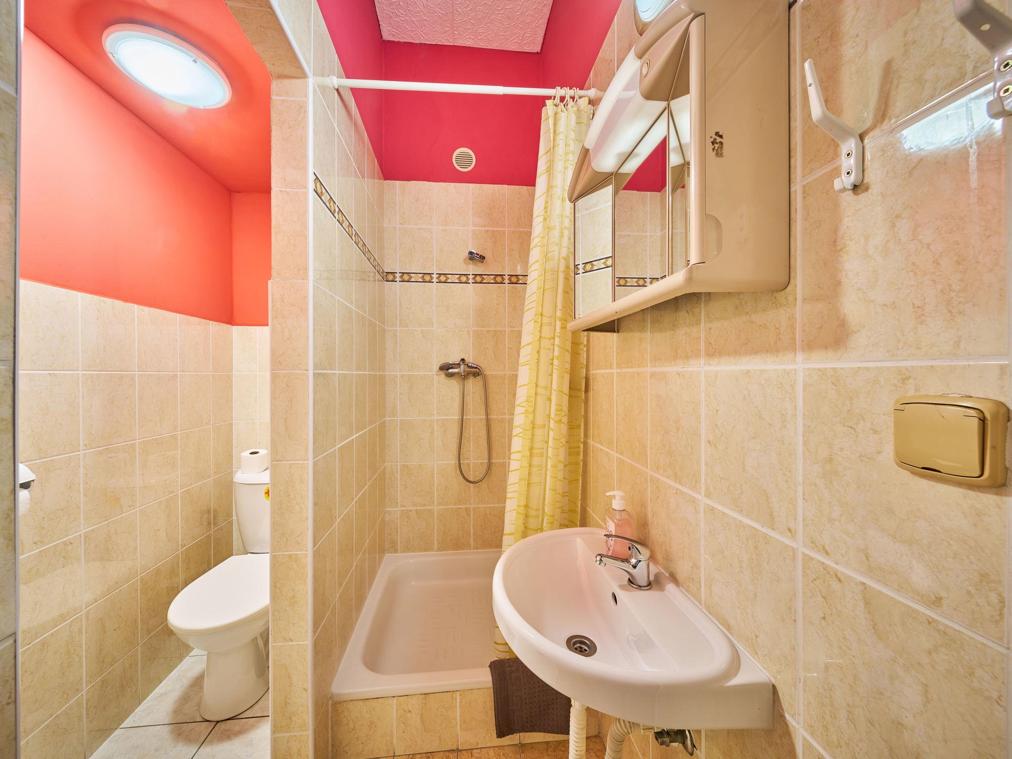 9-room cottage 384 m2 on 2 levels. 2 rooms, each room with 2 beds and 2 x 1 bunk beds, shower/WC. 1 room with 2 x 2 bunk beds, 1 double bed and shower/WC. Playroom with dining table, satellite TV and heating stove with Scandinavian wood stove. Kitchen (oven, dishwasher, 4 ceramic glass hob hotplates, kettle, microwave). Upper floor: 2 rooms, each room with 2 double beds and shower/WC. 1 room with 1 x 1 bunk beds, 1 double bed and shower/WC. 1 room with 1 x 1 bunk beds, 1 double bed and shower/WC. 2 rooms, each room with 2 beds and 2 x 1 bunk beds, kitchen corner and shower/WC. Beautiful view of the mountains. Facilities: Internet (WiFi, free). Please note: non-smokers only. Maximum 1 pet/ dog allowed. Smoke alarm, fire extinguisher.