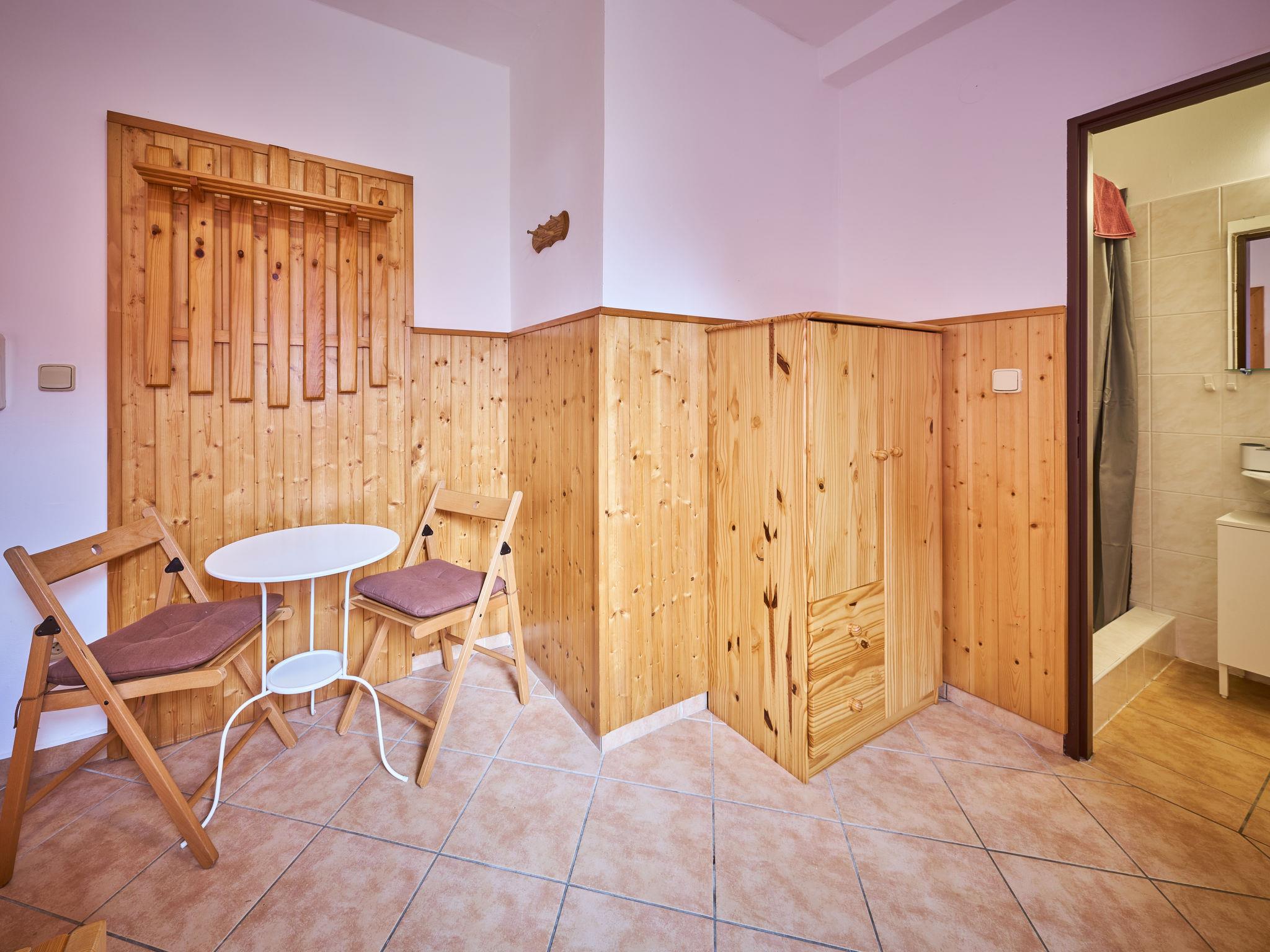 "U Švýcarského dvora IV", 2-room apartment 37 m2, on the ground floor. Practical and cosy furnishings: 1 room with 2 beds. 1 room with 1 double bed and satellite TV. Kitchenette (2 hot plates, kettle, microwave). 2 showers/WC. Heating. View of the garden. Facilities: Internet (WiFi, free). Please note: non-smokers only. Smoke alarm, fire extinguisher.