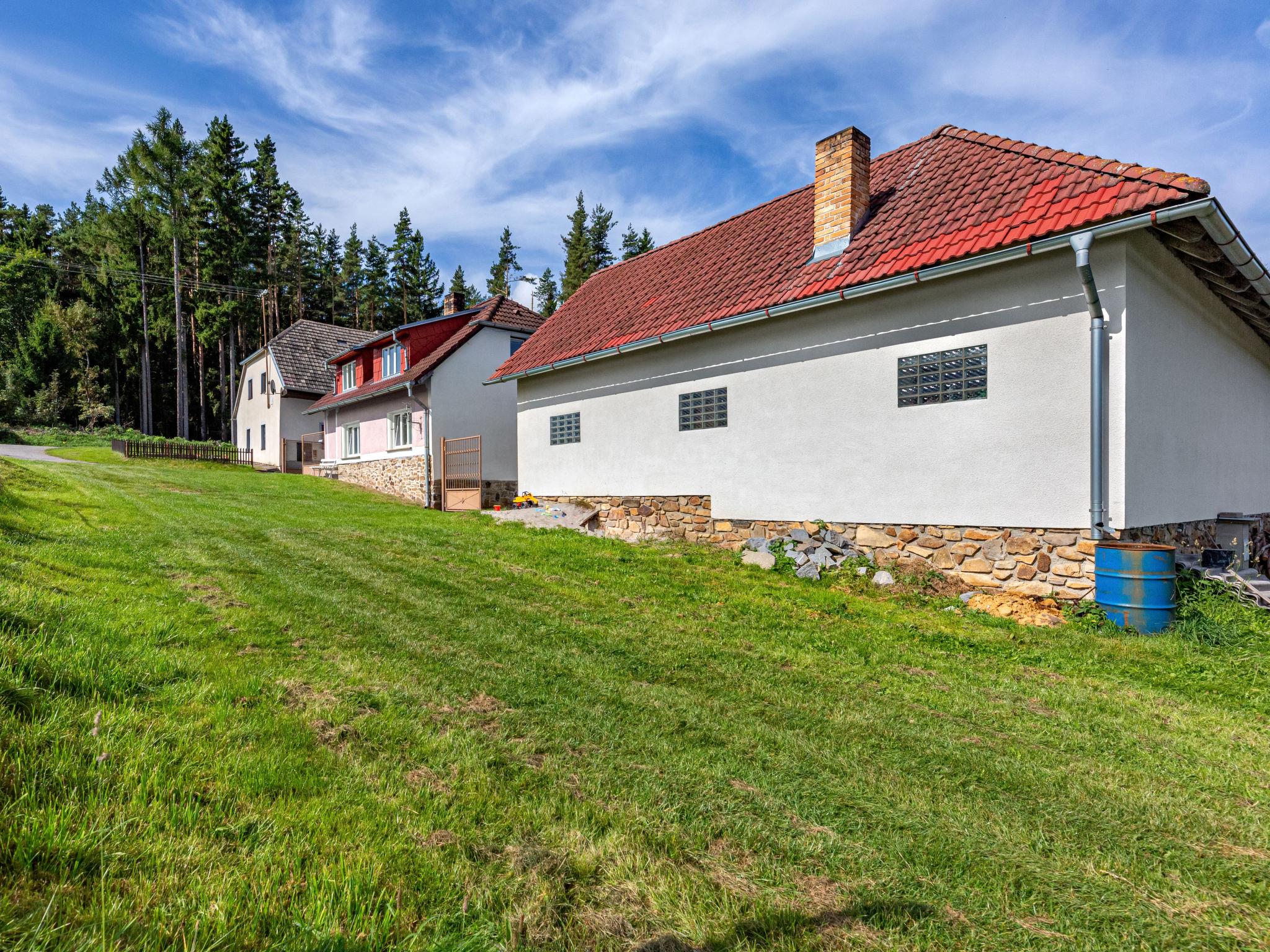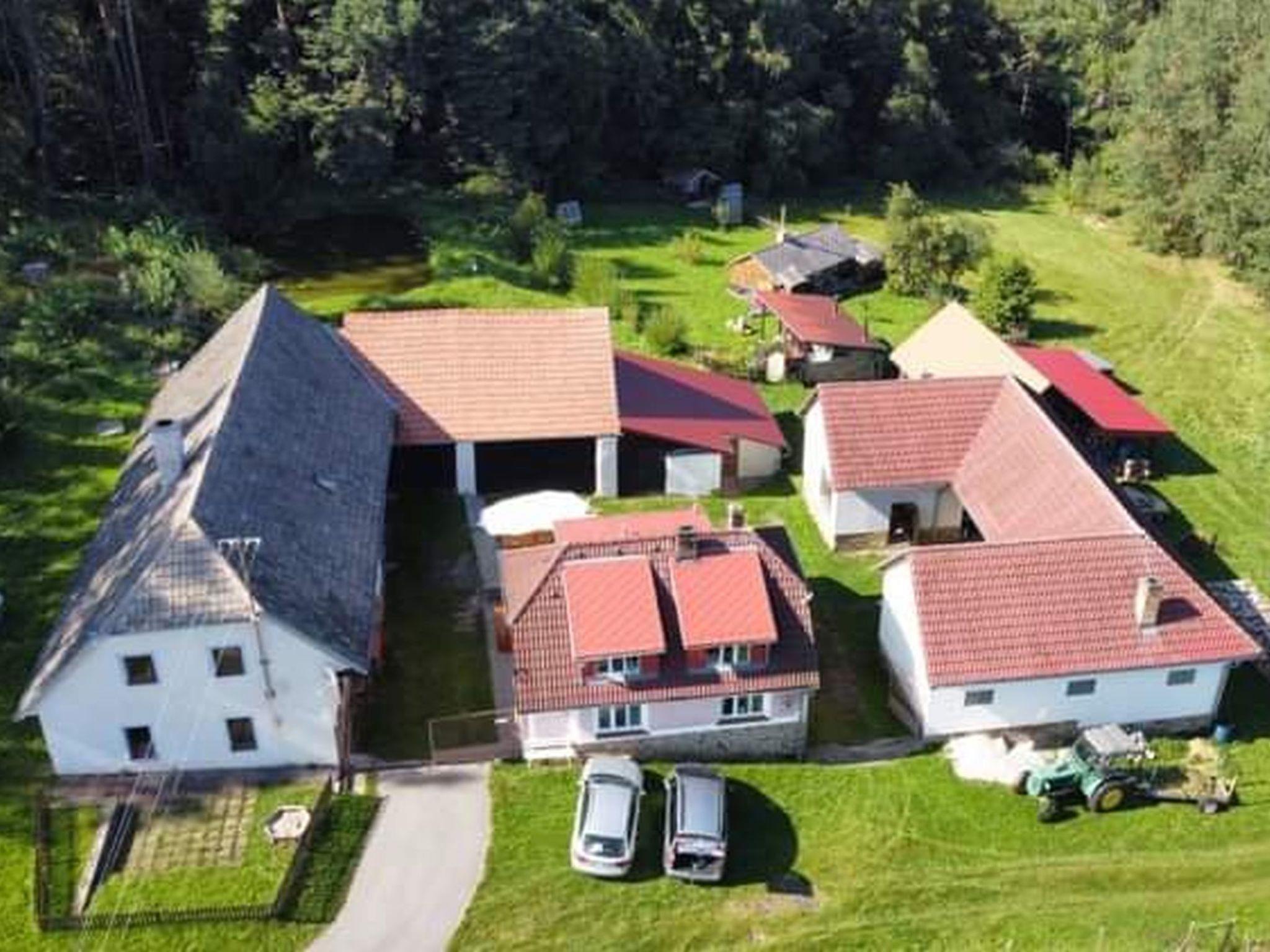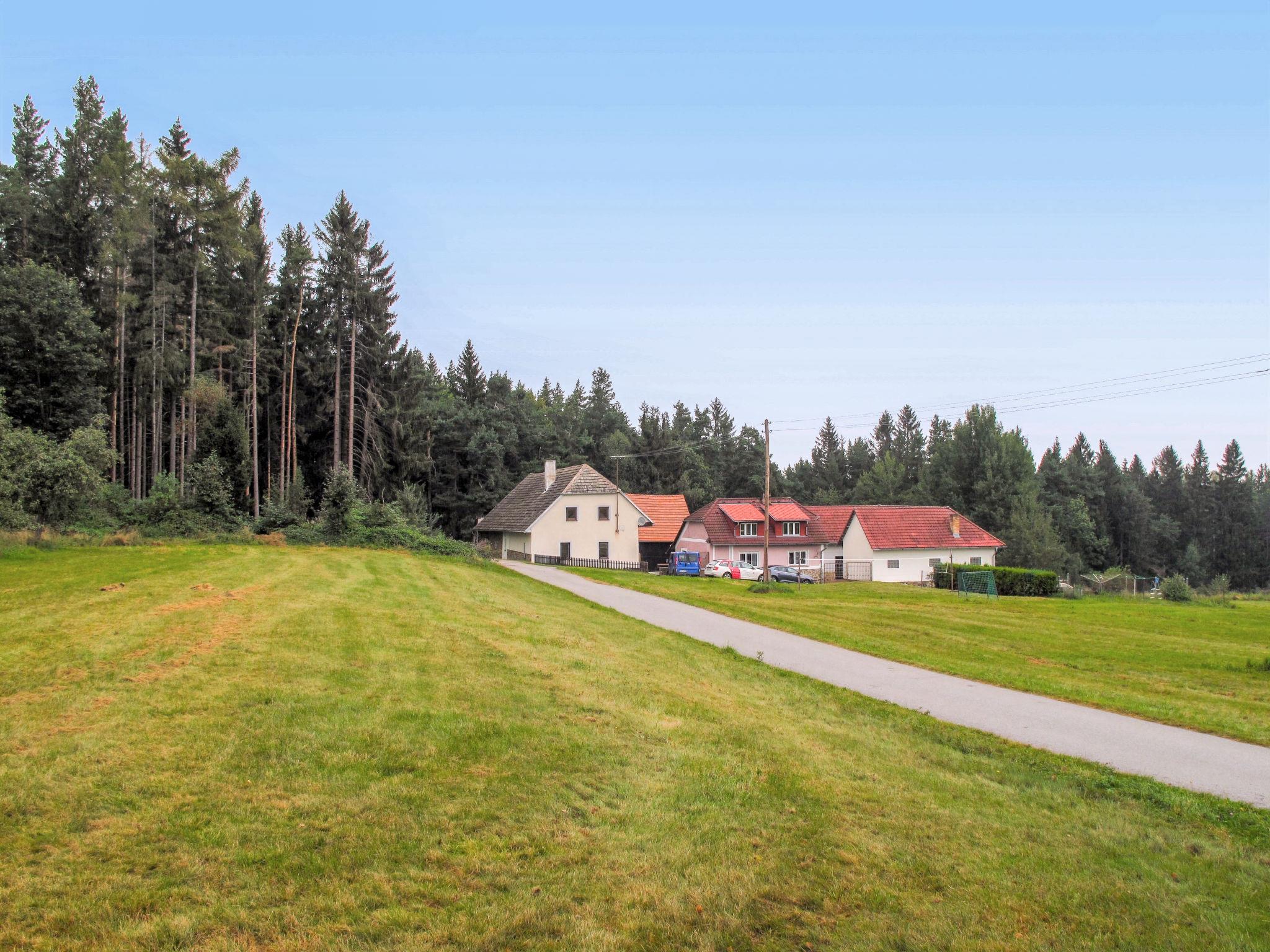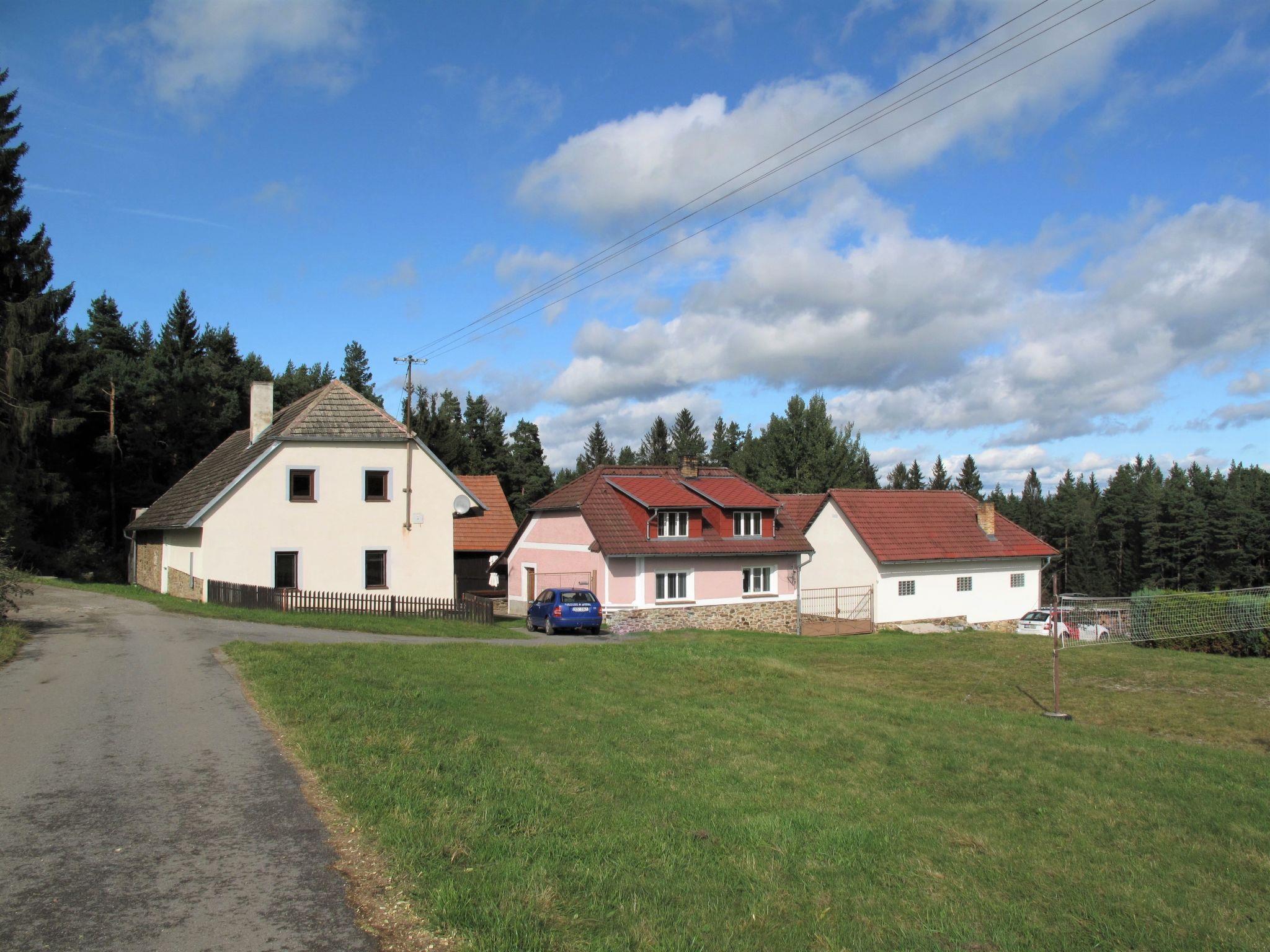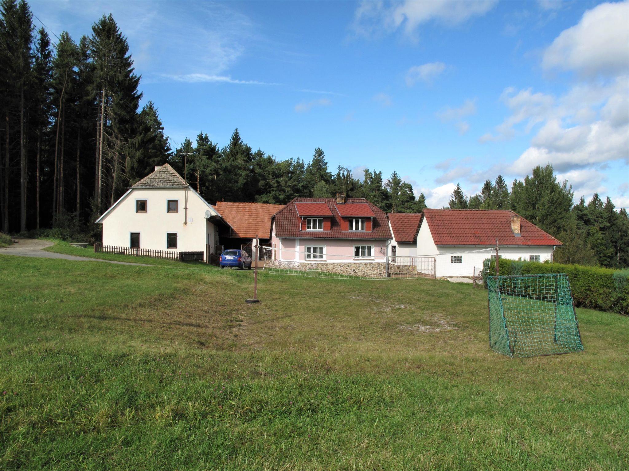 Jelemek/Nebahovy 6 km from Prachatice: The house is part of a complex of several buildings. Child friendly, cosy house, 2 storeys, built in 1940, renovated in 2000, surrounded by trees and meadows. 2 houses in the residence. Property composed of main house and outbuilding, in a quiet, sunny position, along the wooded area, in the countryside. Private: property 300 m2, swimming pool (above ground) round (3,6 m diameter, depth 120 cm, seasonal availability: 01.Jun. - 31.Aug.). Basketball, volleyball, pergola, garden furniture, barbecue house, children's playground (swing, sandbox). In the complex: table football, trampoline, central heating system, washing machine. Motor access to the grounds (100 m via unmade road). Parking (for 5 cars) on the premises. Shop 6 km, grocery 2 km, restaurant 6 km, bus stop "Nebahovy" 2.5 km, outdoor swimming pool 6 km, indoor swimming pool 6 km. Riding stable 300 m, walking paths from the house 10 m. Nearby attractions: Helfenburk 25 km, Ceský Krumlov, Boubínský prales 35 km, Ceské Budejovice, Hluboká nad Vltavou 40 km, Národní park Šumava, 40 km. Well-known ski regions can easily be reached: Libín 12 km, Zadov 40 km. Owner lives in separate semi-detached house. For beer lovers, the owner can arrange a beer keg for a fee (it must be requested in advance before arrival). Horse riding can be arranged at the neighbouring property.