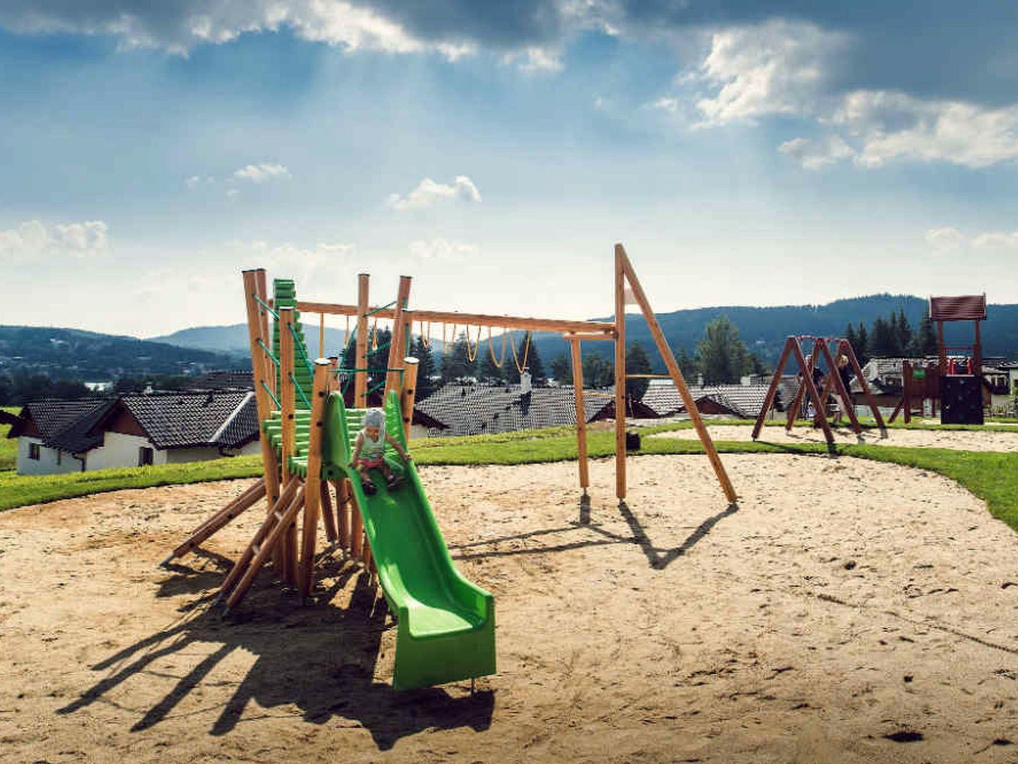 Child friendly, modern holiday village "Residence Lipno". 40 houses in the resort. On the outskirts, 1.5 km from the centre of Lipno nad Vltavou, in a sunny, elevated position, 250 m from the lake, 2 km from the skiing area. For shared use: property. Children's playground (slide, swing). Private: garden. Terrace, garden furniture. In the complex: reception, storage room for bicycles, washing machine, tumble dryer (for shared use, extra). Parking at the house. E-charging station. Grocery 1.2 km, restaurant 200 m, bus stop "Lipno nad Vltavou, Kobylnice" 200 m, grass beach 250 m, indoor swimming pool 2 km. Sports harbour 1.5 km, walking paths from the house 10 m, cycle lane, chair lift 2 km, skisport facilities 2 km, ski bus stop 200 m, ski school 2 km. Nearby attractions: Aquaworld Lipno 2 km, Hopsárium 2 km, Bobová dráha 2.5 km, Stezka korunami stromu 3.5 km, Království Lesa 3.5 km. Well-known ski regions can easily be reached: Skiareál Lipno 2 km. All houses/apartments are individually designed/furnished. Marina Lipno (1,5 km) with a yacht harbor and a indoor water park (not in operation from 1.11.- 30.11.). Golf course and ski lift to Kramolin 1 km (5 ski slopes, snowboard park, 50 km cross-country skiing). Yacht, ski and bicycle rental.