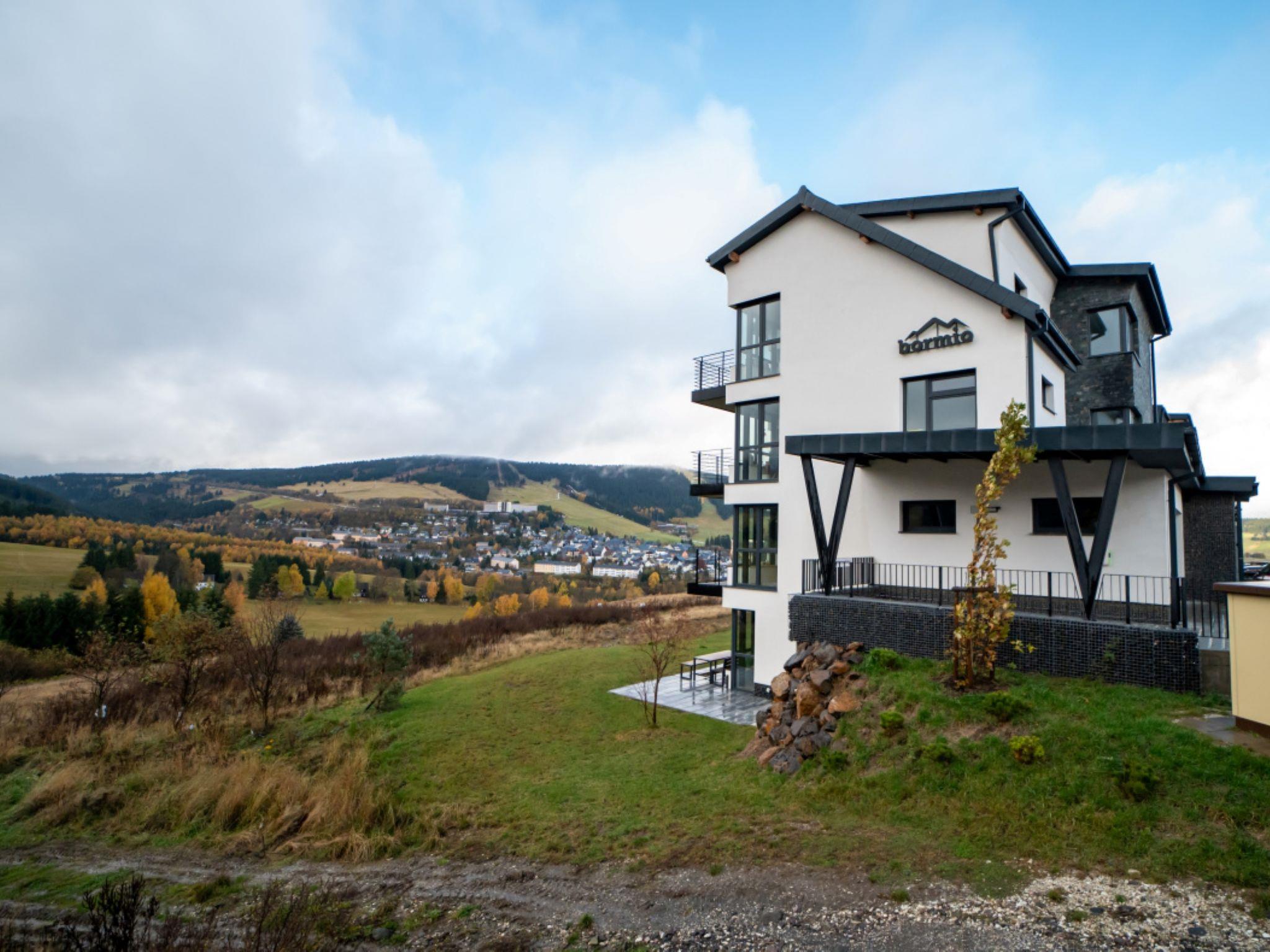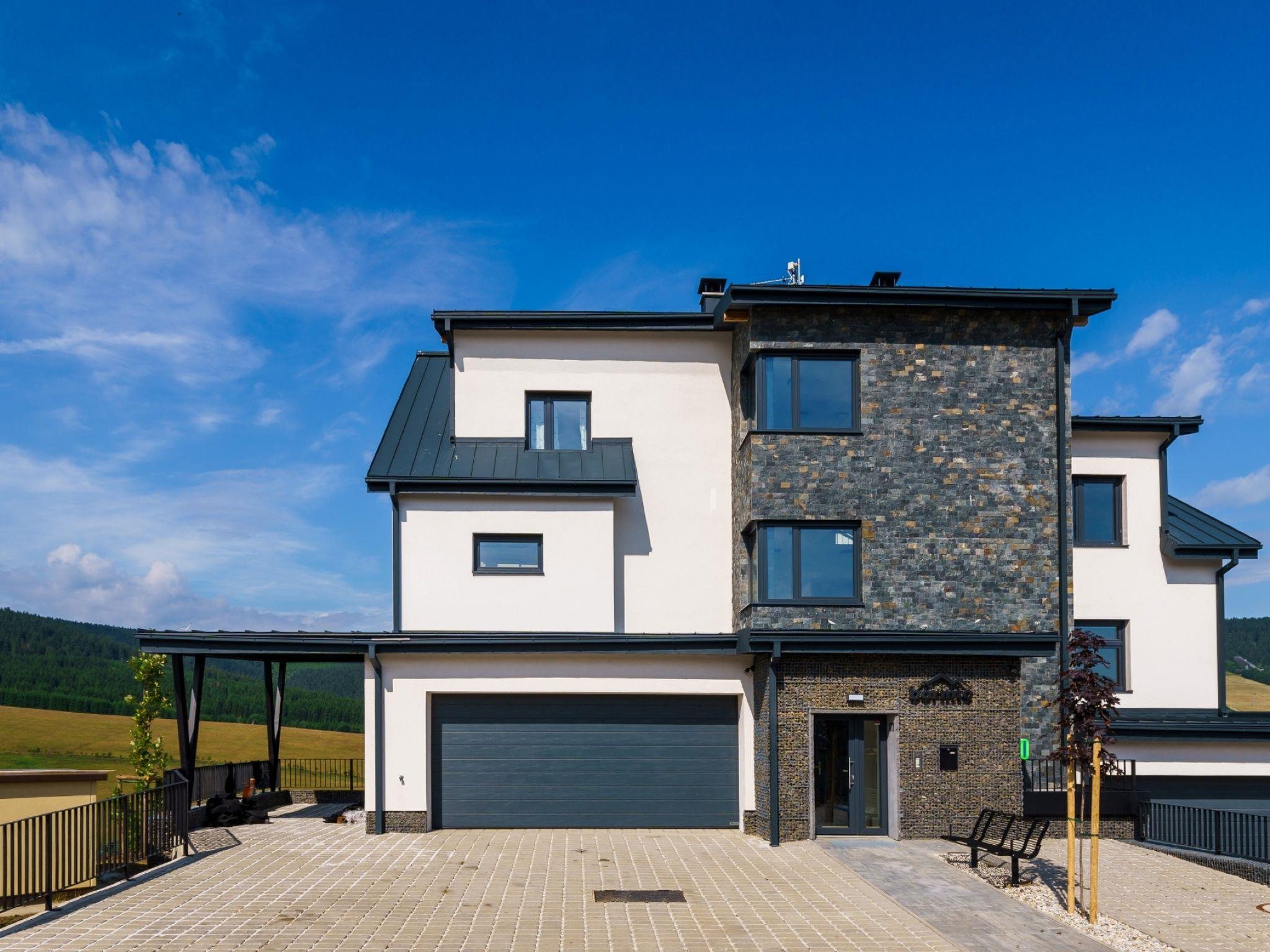 Modern, beautiful apartment block "Bormio", 3 storeys, built in 2024. 1.2 km from the skiing area. For shared use: property. In the house: lift, central heating system. Storeroom available. Parking at the house. Supermarket 750 m, restaurant 1 km, bar 800 m, bus stop "Loucná, háj. Park" 1.2 km. Nearby attractions: Boží dar 6 km, Fichtelberg 8 km, Jáchymov 14 m. Well-known ski regions can easily be reached: Klínovec 1 km, Boží dar 6 km. Hiking paths: Krušnohorská magistrála, Ježíškova cesta, Naucná stezka Božídarské rašelinište.