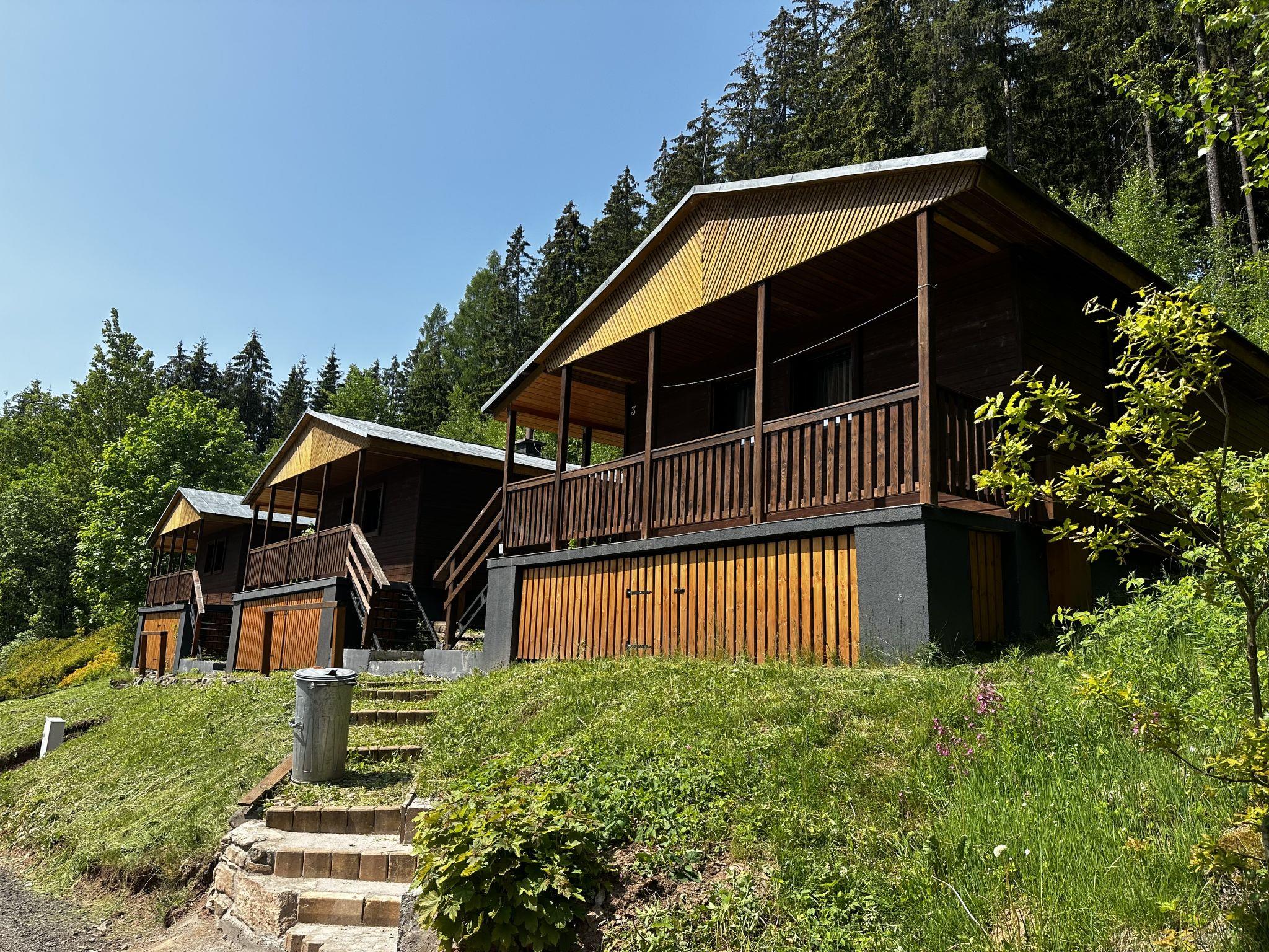 "Lesní plovárna B1", 1-room bungalow. Comfortable furnishings: living/sleeping room with 1 x 2 bunk beds, 1 double bed, Scandinavian wood stove, dining table and TV (flat screen). Kitchenette (2 hot plates, toaster, kettle, microwave, electric coffee machine, Capsules for coffee machine (Tchibo)). Shower/WC. Electric heating, wood heating. Terrace. Terrace furniture, barbecue (portable), deck chairs. Facilities: Internet (WiFi, free). Please note: suitable for families. Non-smoking house. 1 small pet/ dog allowed.