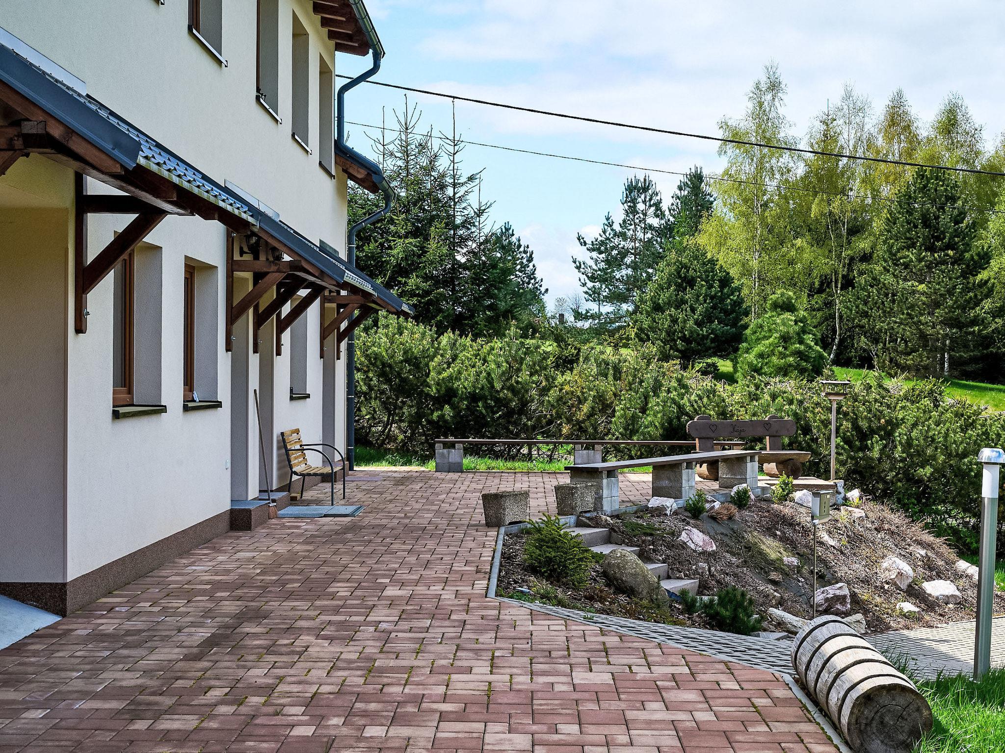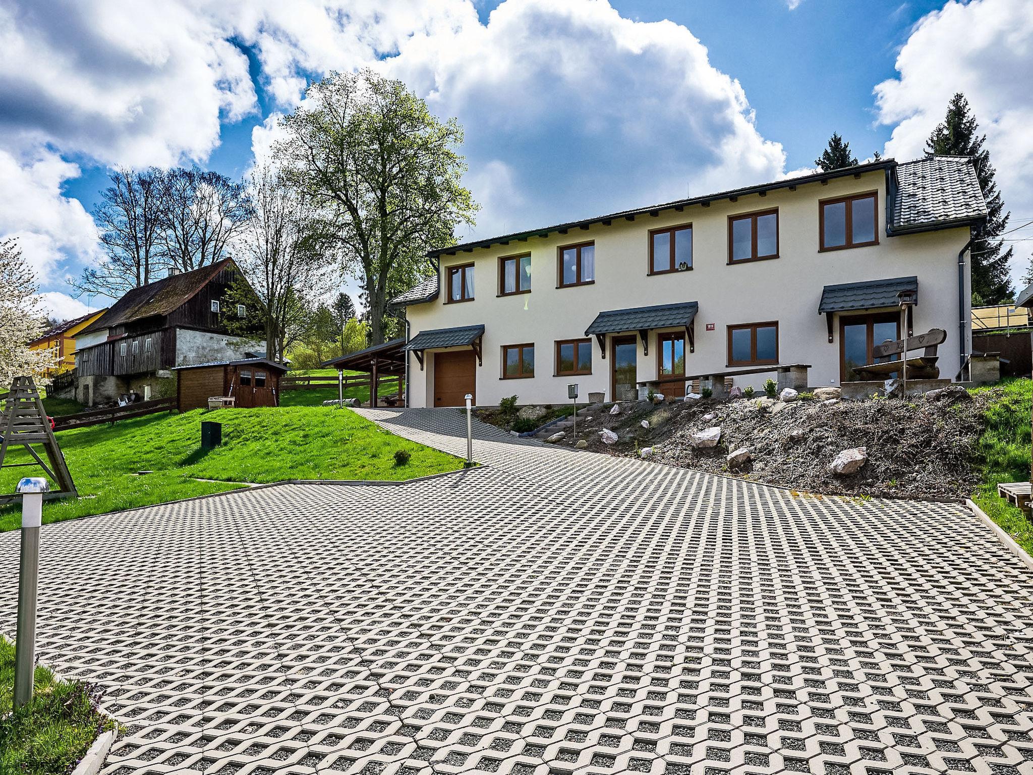 Child friendly, beautiful 2-family house "Pod Cernou Studnicí". In a quiet, sunny position, 3 km from the skiing area. For shared use: terraced garden, natural garden. Terrace, garden furniture, barbecue, fireplace, children's playground, parking. Shop 3 km, supermarket 600 m, restaurant 3 km, bar 3 km, bus stop "Nová Ves nad Nisou" 700 m, railway station "Nová Ves nad Nisou" 3 km, outdoor swimming pool 700 m, indoor swimming pool 6 km. Riding stable 500 m, ski lift 3 km, ski rental 3 km, ski school 3 km, cross country ski track 500 m. Nearby attractions: Cerná Studnice rozhledna 1.9 km, Nisanka 1.5 km, muzeum obrnené techniky 1.5 km, muzeum Na ceste 3 km, arboretum 1.9 km, Urbanova Krížová cesta. Well-known ski regions can easily be reached: Filip Smržovka 3 km, Špicák 9 km, Severák 10 km. Well-known lakes can easily be reached: Mšeno Jablonec nad Nisou 6 km. Hiking paths: Hrebenovka Cyklostezka Odra-Nisa 50 m, Lucany nad Nisou 3 km, Horní Maxov 7 km. Please note: suitable for families. In this building there are two apartments No. CZ4696.1011.1 and CZ4696.1011.2, which can also be booked together under No. CZ4696.1011.3.