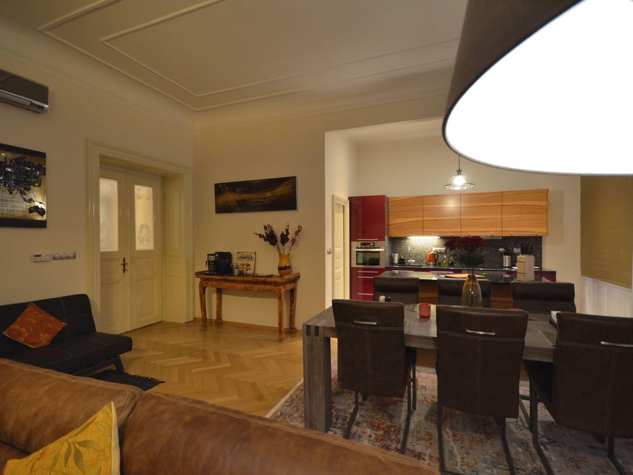 It is a unique two-bedroom flat measuring 130 m². It is located in the heart of Prague's liveliest district, in a sought-after location and certainly at one of Prague's best addresses. It borders Old Town Square and is just a few steps from the famous Jewish Old Town. It is also close to the trendy Republic Square and the famous Parizska Street with its wide range of excellent shopping opportunities.