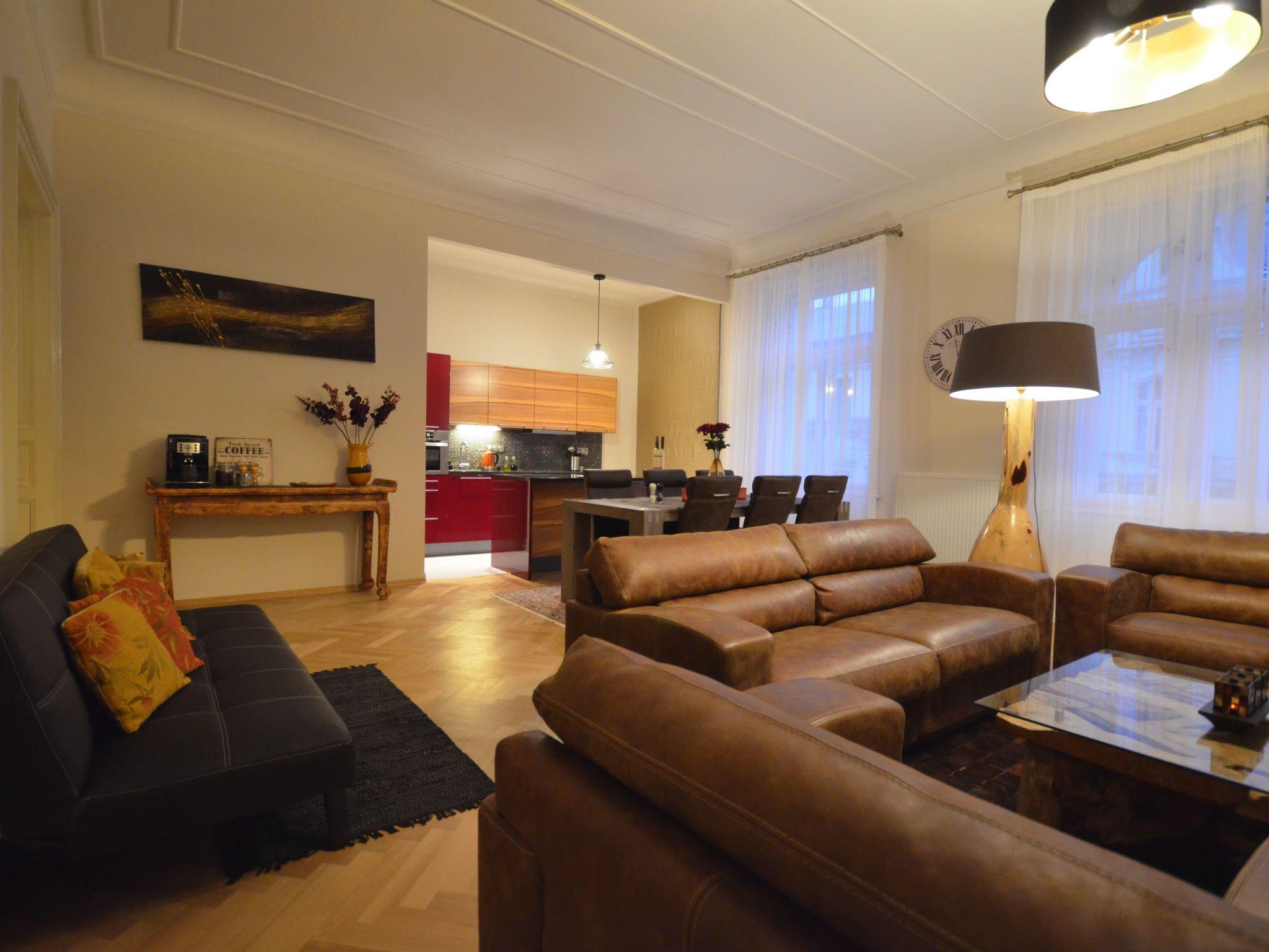 Featuring modern chic at its best, this very spacious flat is finished to a high standard, with elegant furnishings, warm decor and all the modern conveniences you could need to provide comfortable and welcoming accommodation in the heart of Prague. You will also have the great pleasure of enjoying breakfast in the charming 'Bake Shop' on the ground floor.