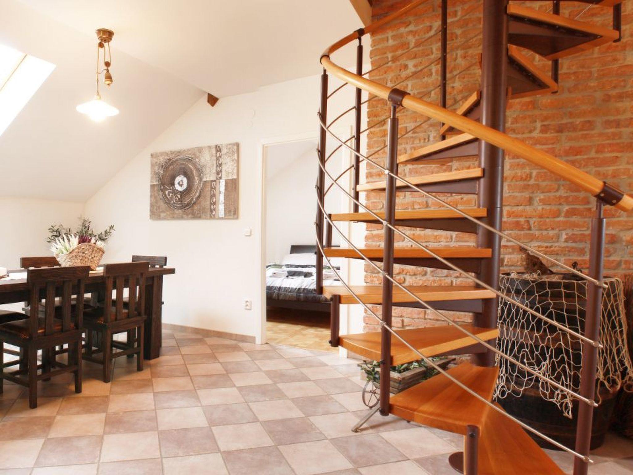 The Attic Hastalska flat is located on the fourth floor of a building with a lift.