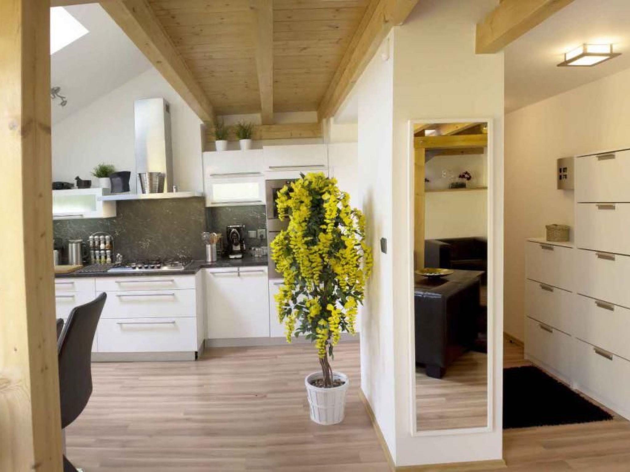 Layout: The ground floor comprises a living room with a fully equipped open-plan kitchen, dining area, terrace, two bedrooms and bathroom with WC. The first floor is accessed via a designer steel and wood staircase. Here you'll find the third and fourth bedrooms, the second bathroom and a storage room. The flat features high-quality materials.
