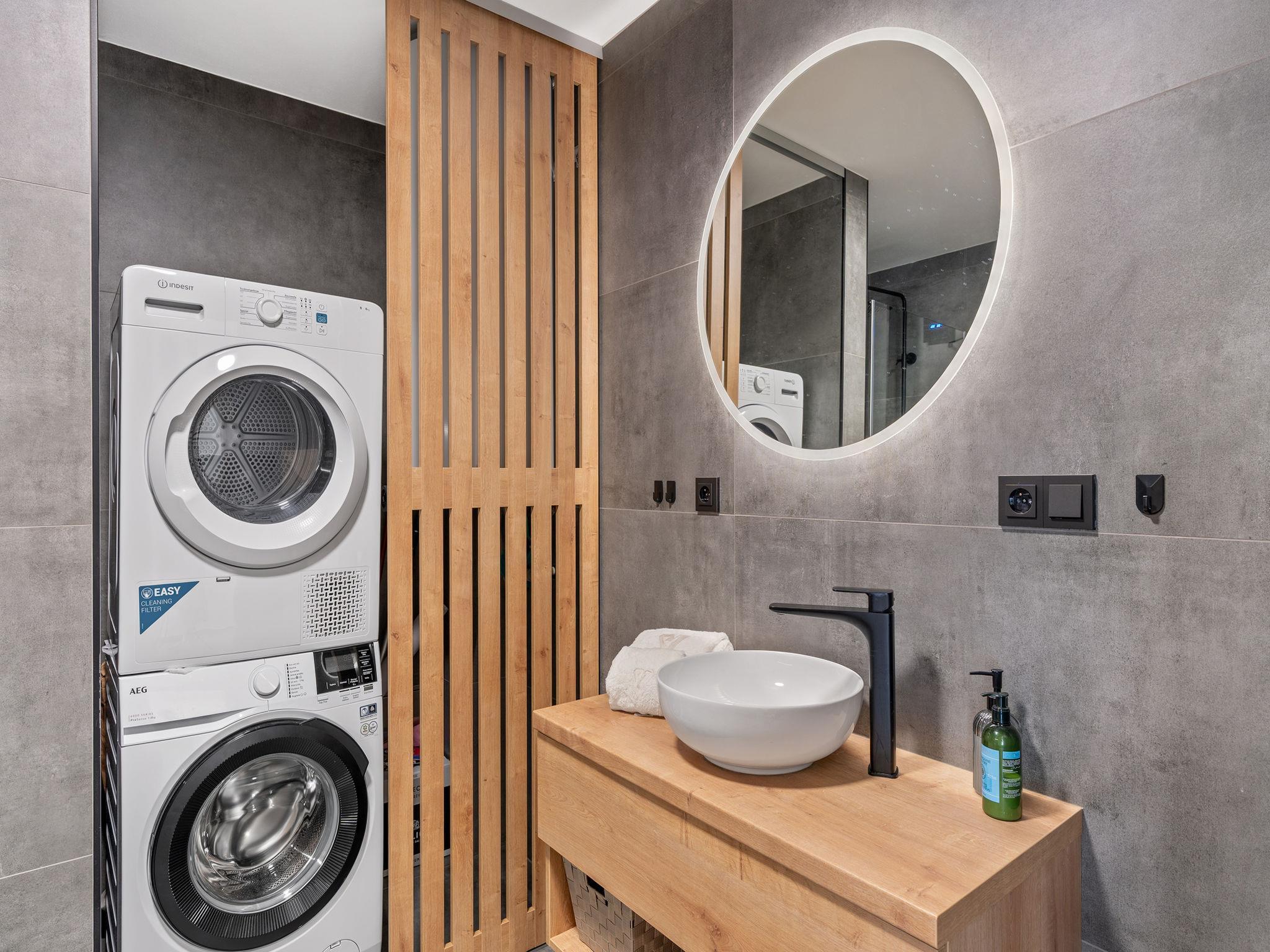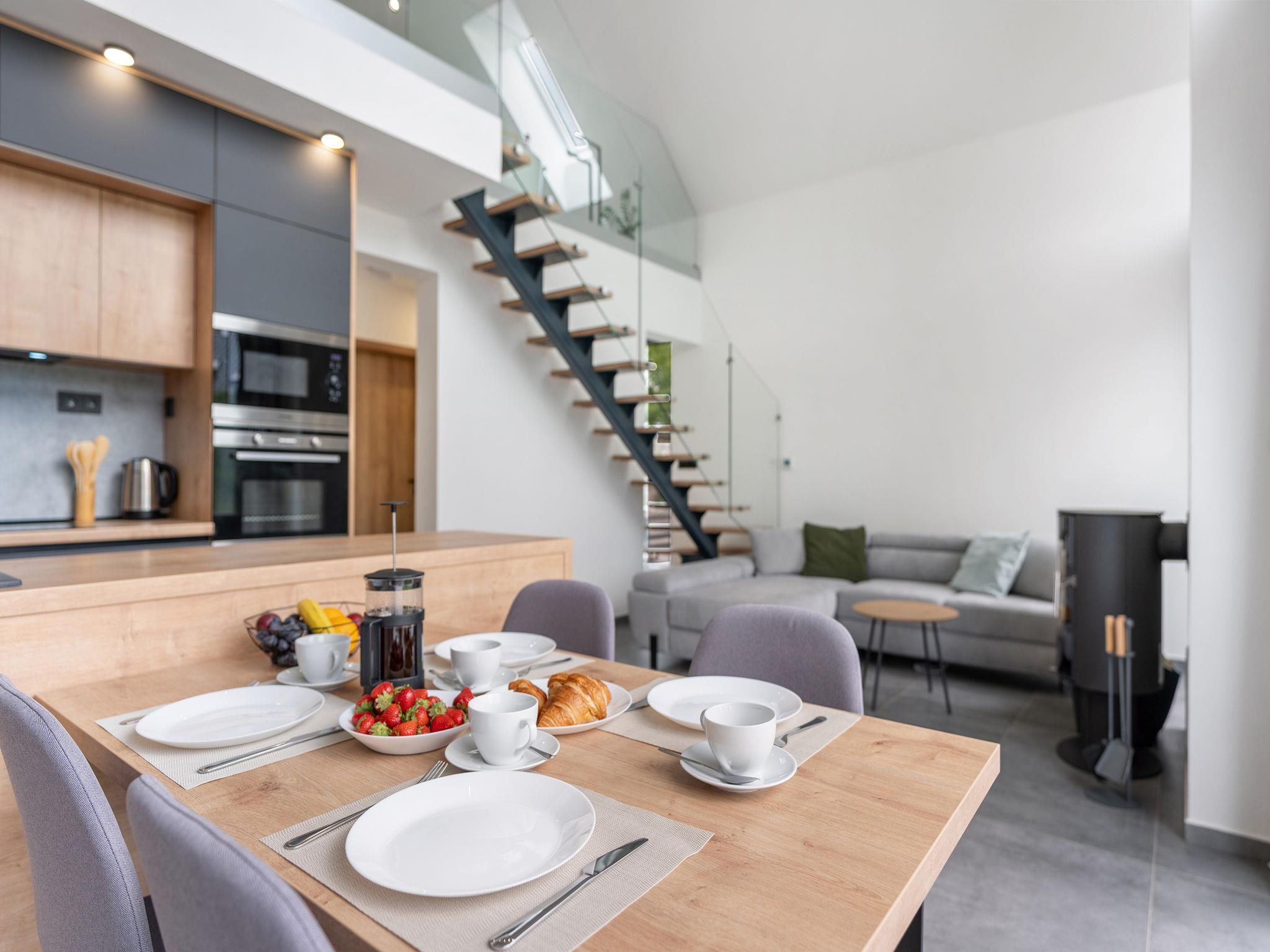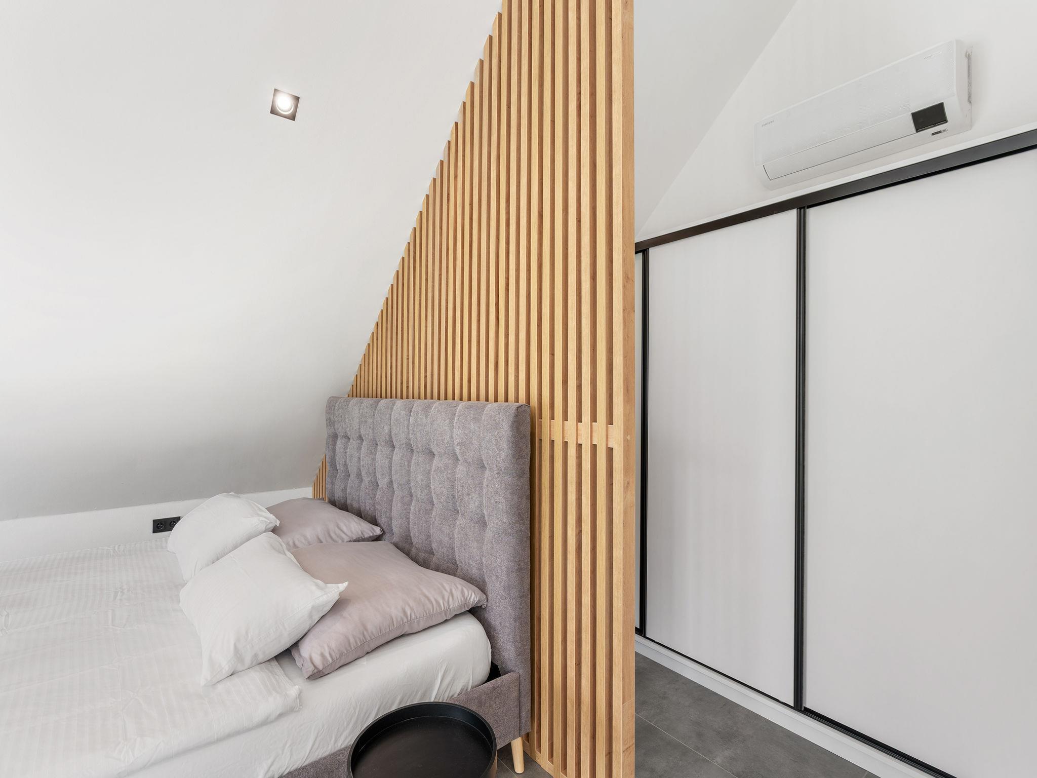 "Romance & Relax Villa", 3-room house 120 m2 on 2 levels. Modern and luxurious furnishings: entrance hall. Open living room with open-hearth fireplace, TV and air conditioning. 1 room with 1 double bed (160 cm), TV and air conditioning. Open kitchen (oven, dishwasher, 4 induction hot plates, kettle, microwave, freezer, electric coffee machine) with dining table. Shower/WC. Upper floor: open gallery with Dressing room with 1 double bed (180 cm), bathroom. Sep. WC. Terrace 25 m2. Terrace furniture, barbecue (portable). Beautiful view of the garden. Facilities: washing machine, dryer. Internet (WiFi, free). E-charging station. Please note: non-smoking house. Maximum 1 pet/ dog allowed. SAUNA WILL BE AVAILABLE FROM OCTOBER 2025.
