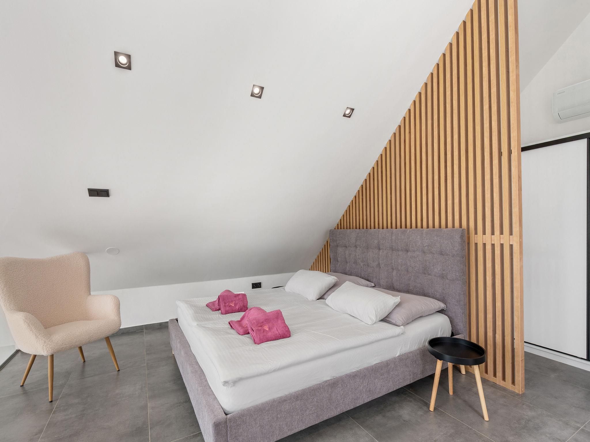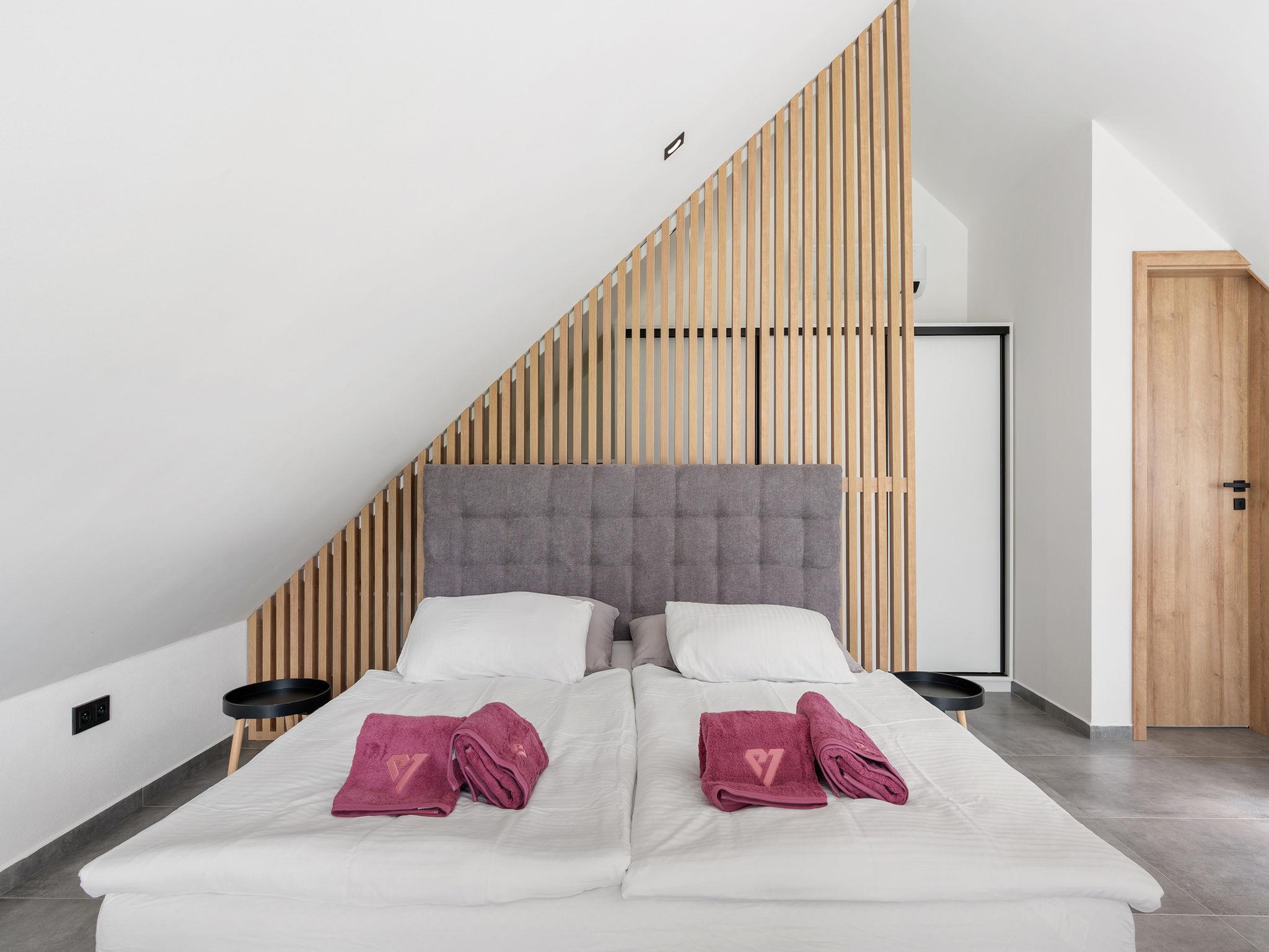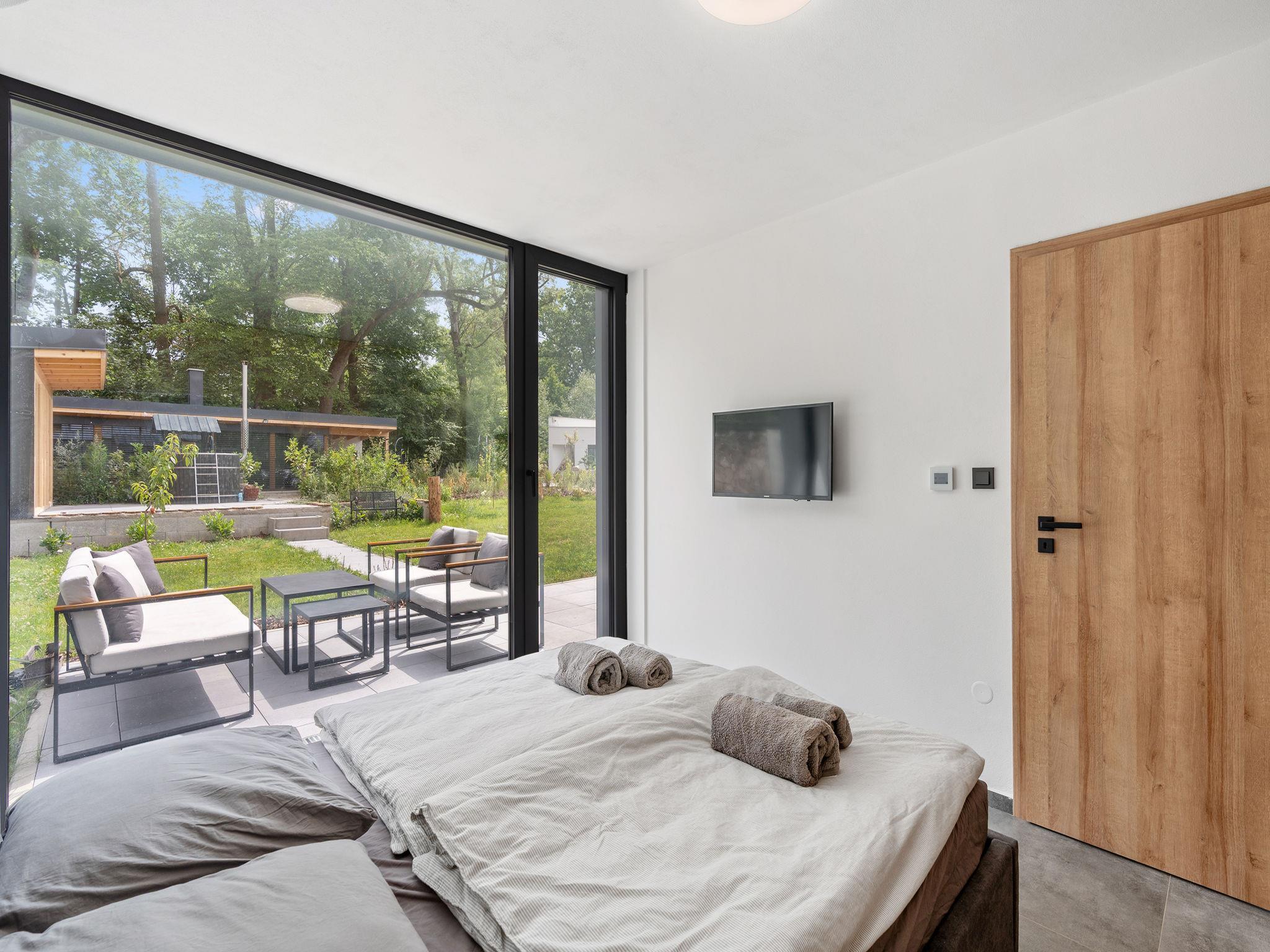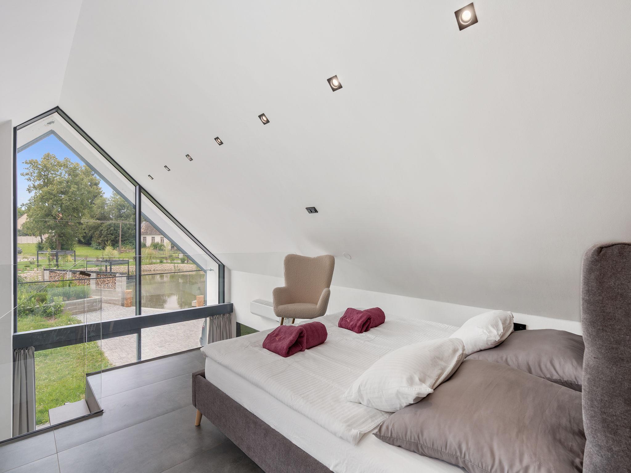 Modern, luxurious holiday development. 3 houses in the resort. In a quiet, sunny position. For shared use: property 600 m2. Private: terrace, garden furniture, barbecue. In the complex: sauna (extra). Massage (extra). Hot tub, relaxation room, central heating system. House maid on request (included). Parking on the premises. Shop 5 km, supermarket 5 km, restaurant 5 km, bus stop "Pocátky, Prostý" 100 m. Golf course (18 hole) 21 km. Nearby attractions: Lázne Svatá Katerina, Zámek Žirovnice 9 km, Zámek Žirovnice, Popelín, Studená 9 km, Ceská Olešná 10 km, Telc (UNESCO) 20 km, Zámek Jindrichuv Hradec 25 km, Zámek Cervená Lhota 35 km, Golf Telc(18 jamek)21km, Mnich(36 jamek) 27 km. Hiking paths: Jihlava 38 km, Trebon 50 km. Overall, the superbly designed glass villa RomanceRelax is dominated by a duplex bedroom with a freestanding bathtub. Beautiful view through the all-glass wall of the adjacent pond. The owner can arrange Ayurvedic massages, quad bikes, animation programs, horseback riding. Petanque court. Suitable for couples, peace, nature, wellness, romance,..