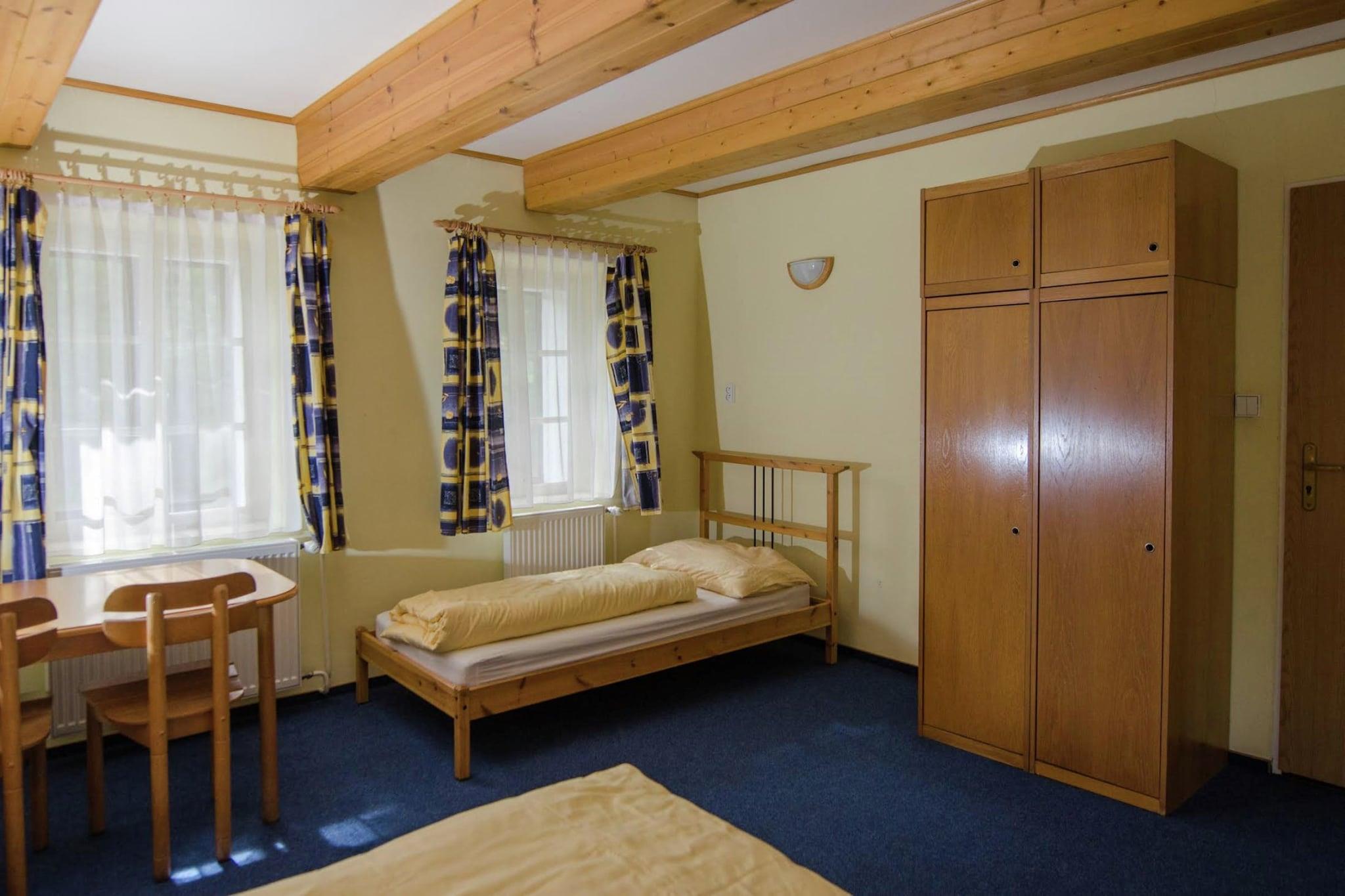 Located in Rudník, this 6-bedroom holiday home is near the Giant Mountains ski area and Krkonose natural area. It is spacious to host a group of 23 people or families with children. It offers a small private swimming pool to take a cool refreshing dip and a private terrace to relax. Experience the stunning nature and enjoy lovely walks in the surroundings. You can check out the nearby Vrchlabi and Trutnov and enjoy a Czech beer. In winter, you can reach the skiing regions of Cerna Hora and Cerny Dul at 12 km, suitable for both beginners and experts. Local cuisine is served in the restaurants at 5 km and supermarket is at 2 km. The terrace and furnished garden are perfect for an evening barbecue while the kids try the play equipment. You can have fun in the recreation room with fireplace and bar. There are party games for entertainment. Cot and high chair are available on request. Free WiFi and parking are also available. Public transport is at a walkable distance of 500 m.