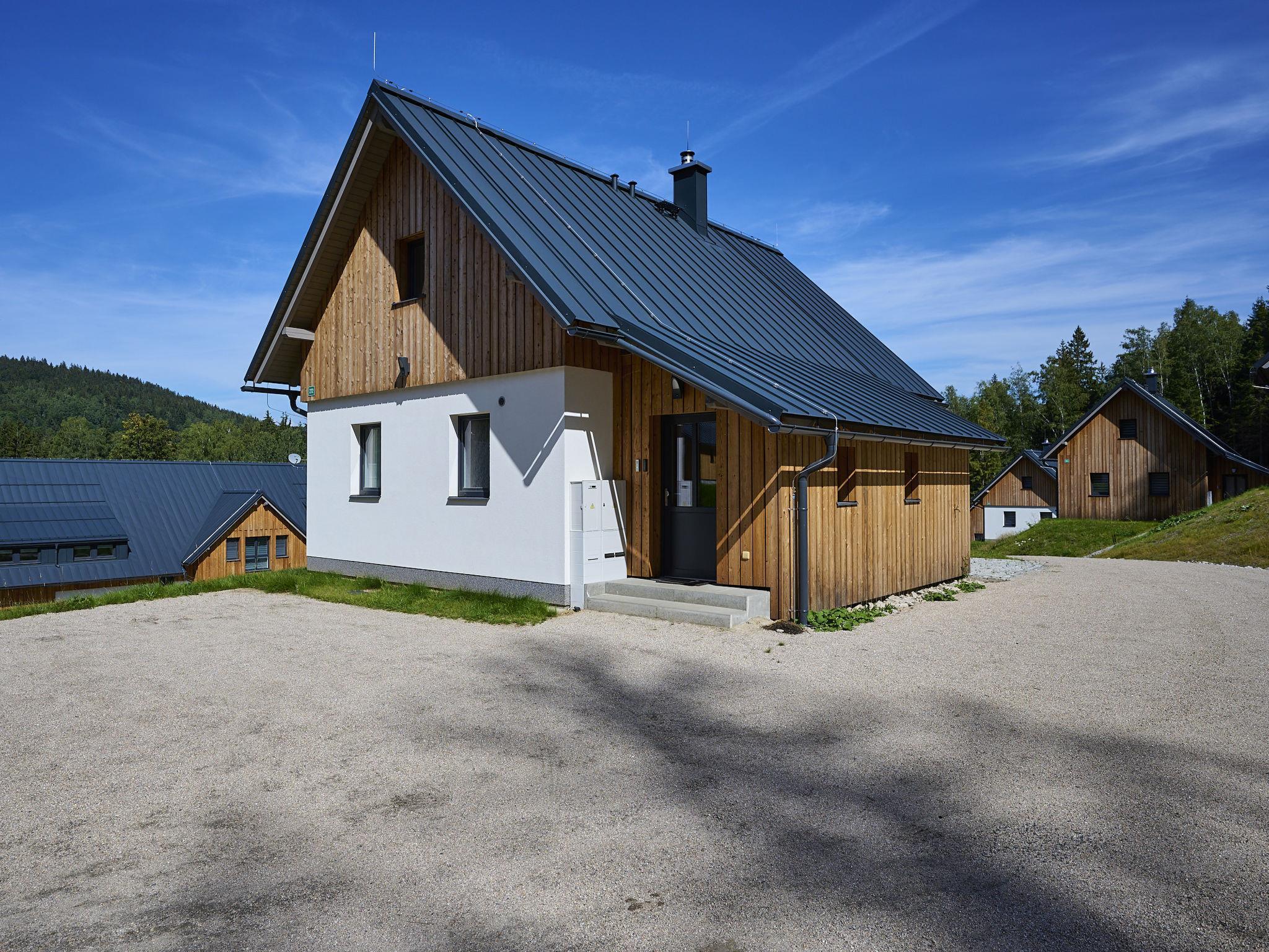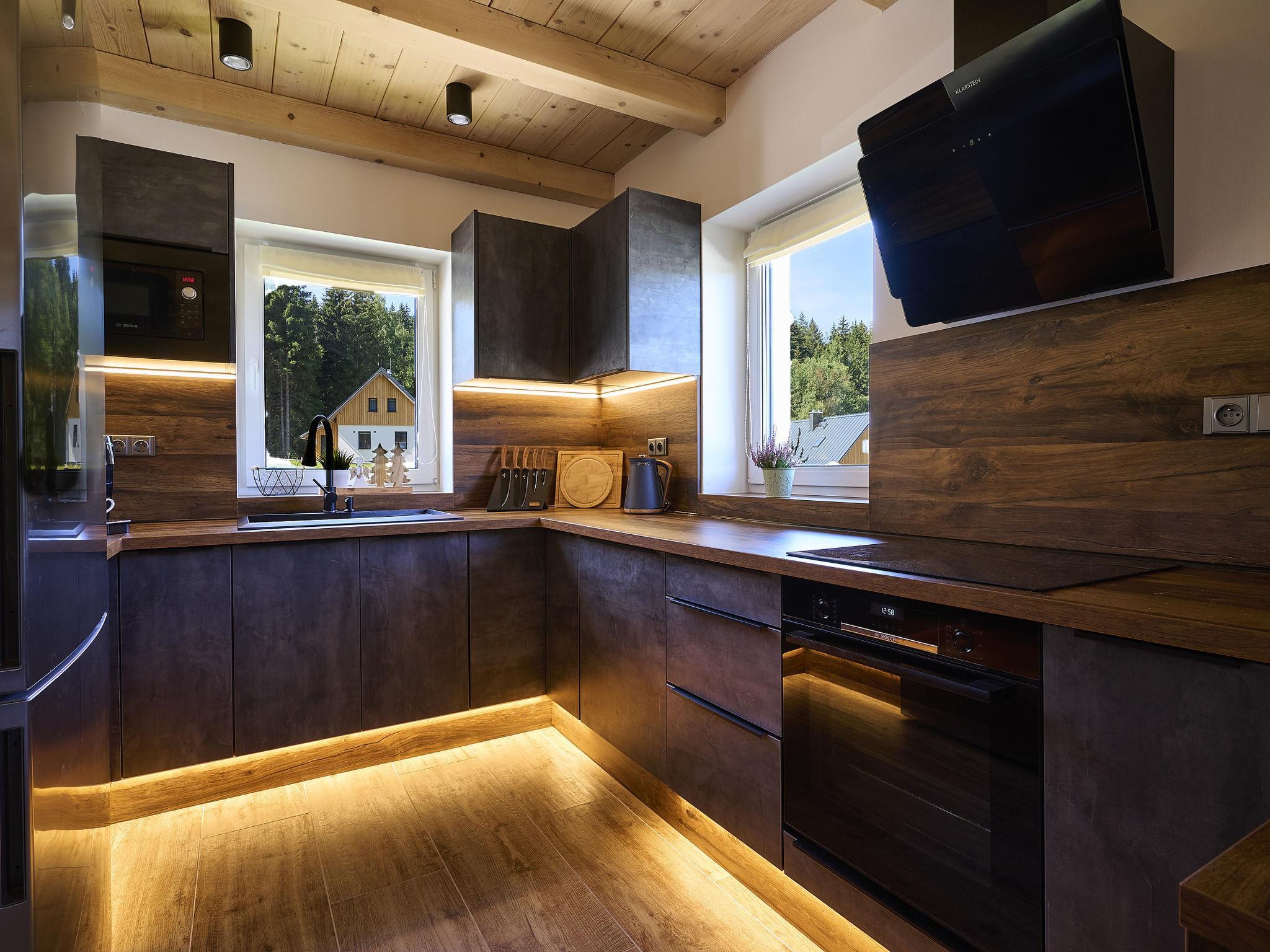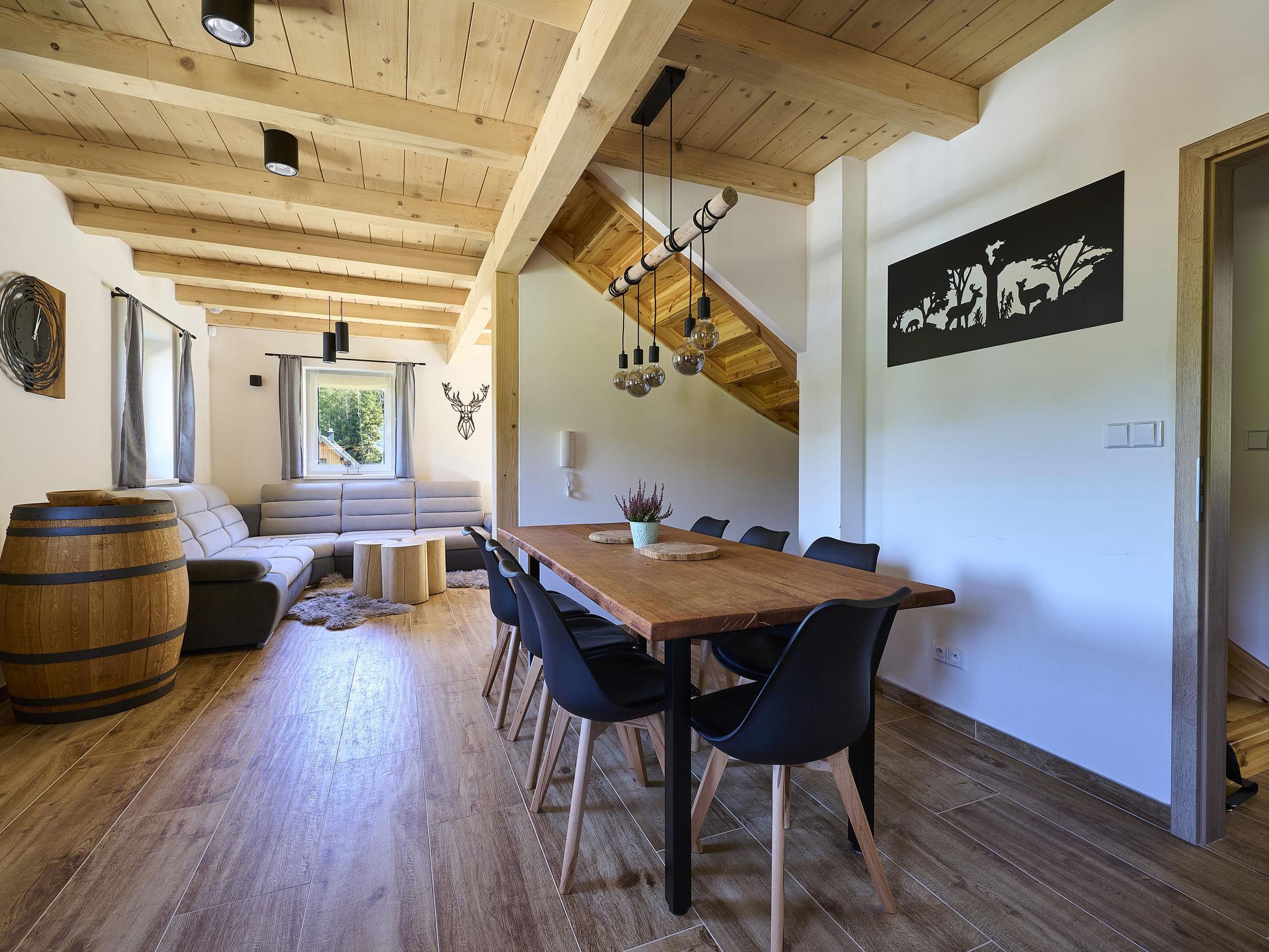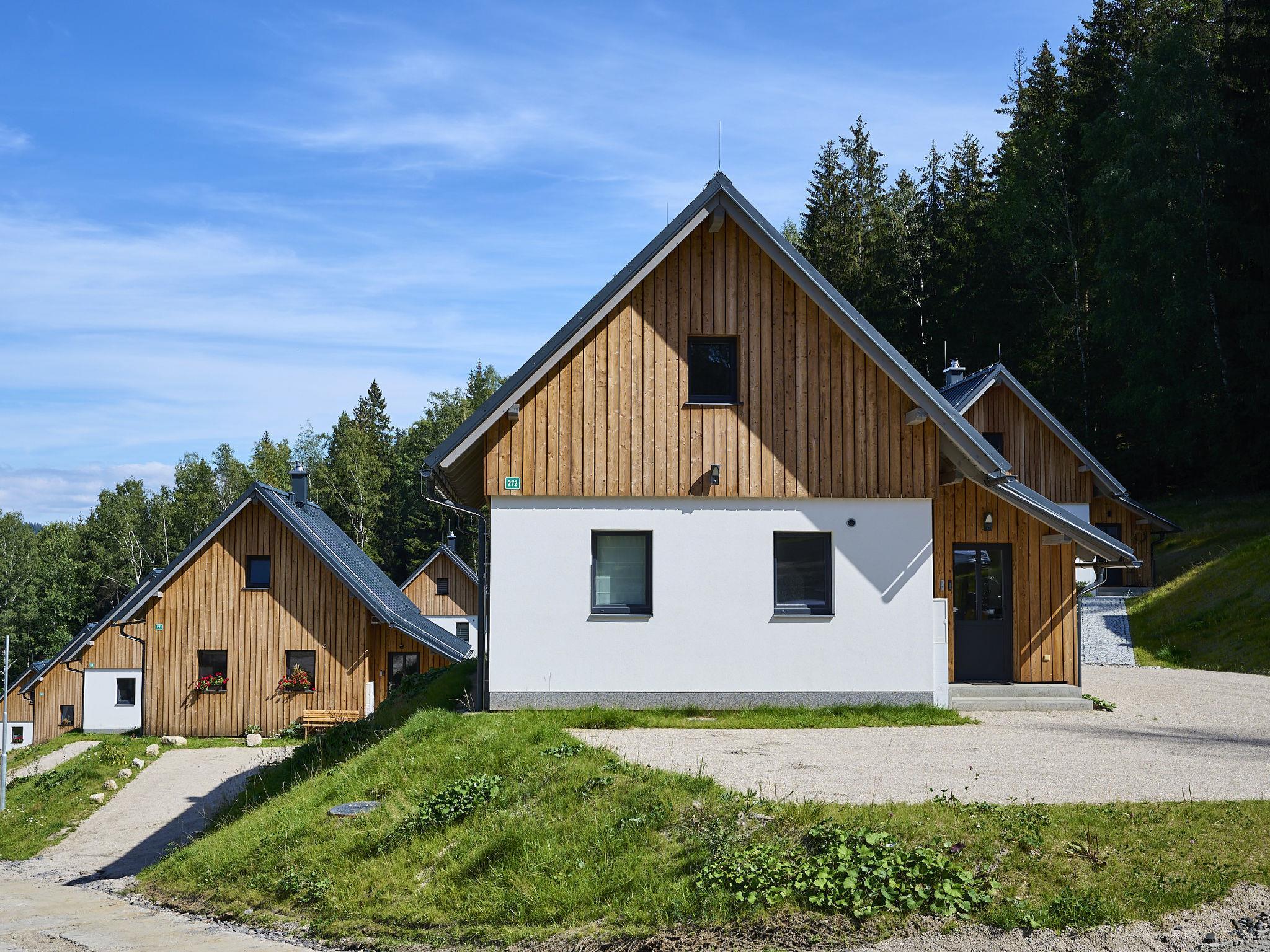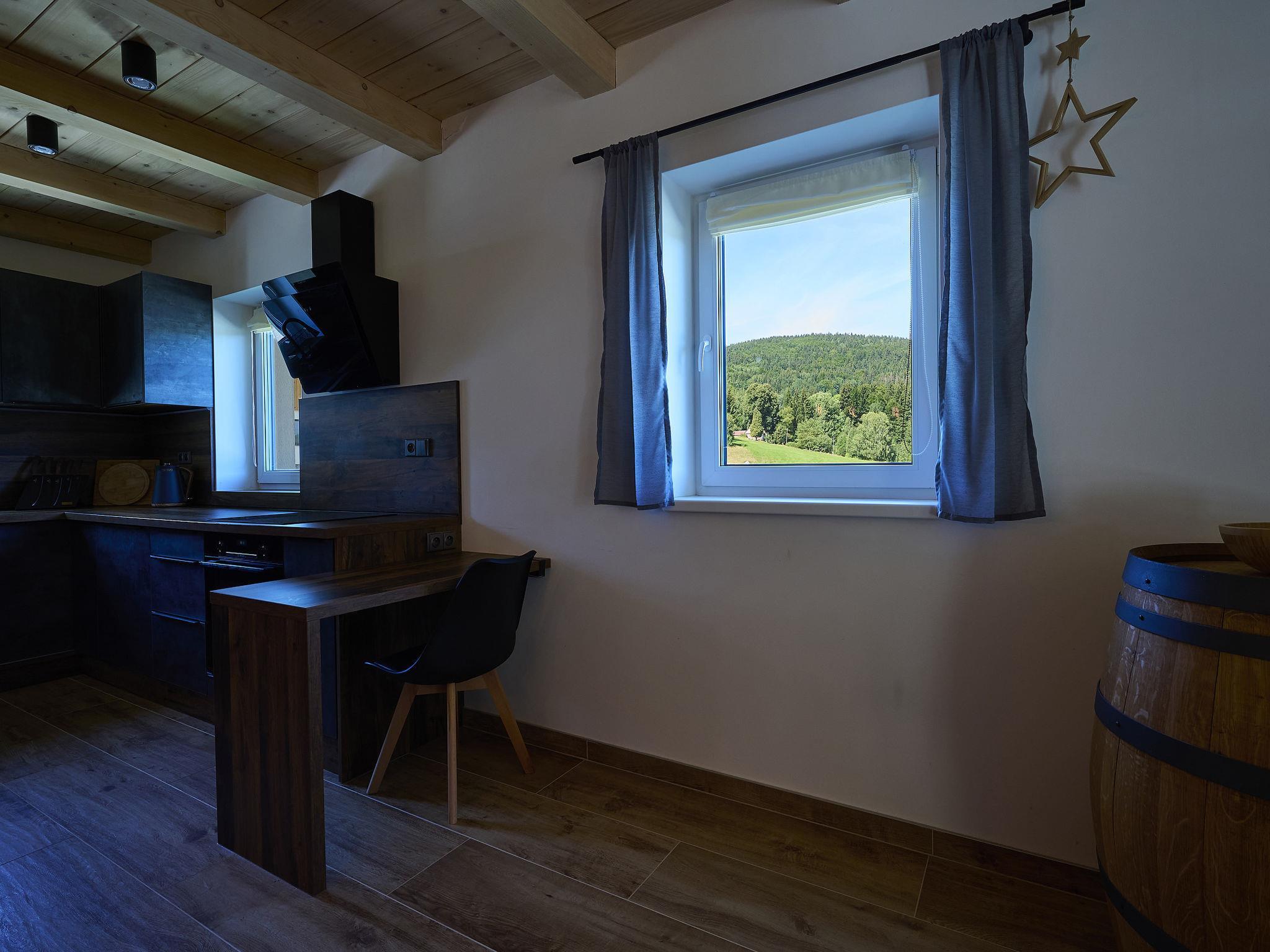 Comfortable cottage "Muhu", 2 storeys, detached, built in 2023. Outside the resort, along the wooded area, 2 km from the skiing area. Private: property. Terrace, garden furniture, barbecue, fireplace. In Winter: please take snow chains. Parking (for 2 cars) on the premises. Shop 2 km, grocery 2.5 km, supermarket 6 km, shopping centre 20 km, restaurant 2 km, bus stop "Jiretín pod Bukovou" 1.4 km, railway station "Jiretín pod Bukovou" 1.3 km, outdoor swimming pool 7 km, indoor swimming pool 20 km. Golf course (9 hole) 17 km, walking paths from the house 10 m, cycle lane 100 m, ski lift 2 km, slopes 2 km, ski rental 2 km, ski school 2 km, cross country ski track 100 m, children's playground 3 km. Nearby attractions: Rozhledna Cerná Studnice 6 km, Muzeum obrnené techniky Smržovka 6 km, Vodopády Jedlové 7 km, Kittelovo muzeum v Krásné 12 km, Aquapark Babylon, IQLandia, ZOO Liberec 22 km, Bozkovské jeskyne 22 km. Well-known ski regions can easily be reached: Tanvaldský Špicák 2 km, Filip Smržovka 4 km, Svetlý Vrch Albrechtice 4 km, Josefuv Dul 7 km, Severák, Bedrichov 12 km. Hiking paths: Hrebenovka. Please note: baby equipment.