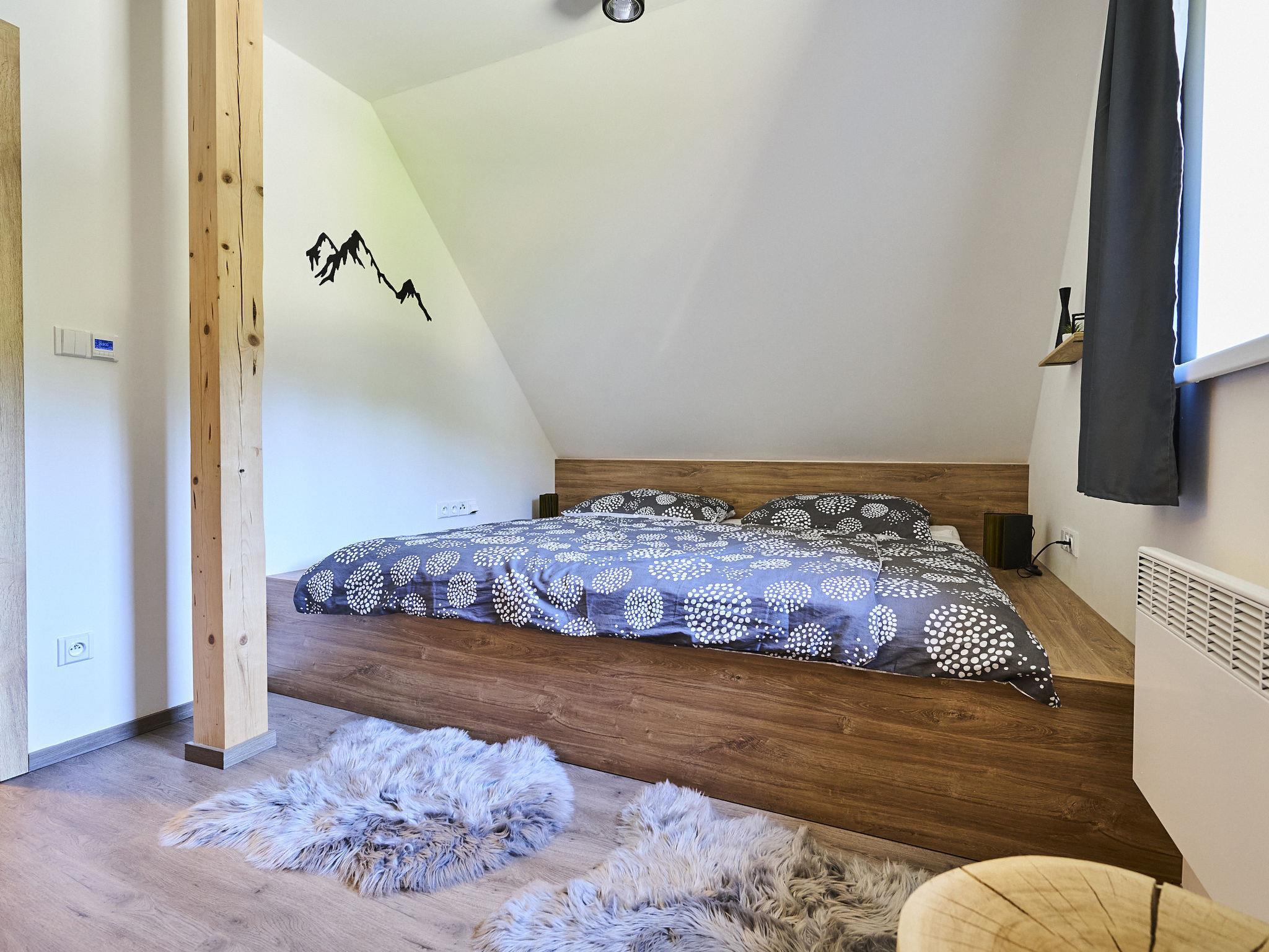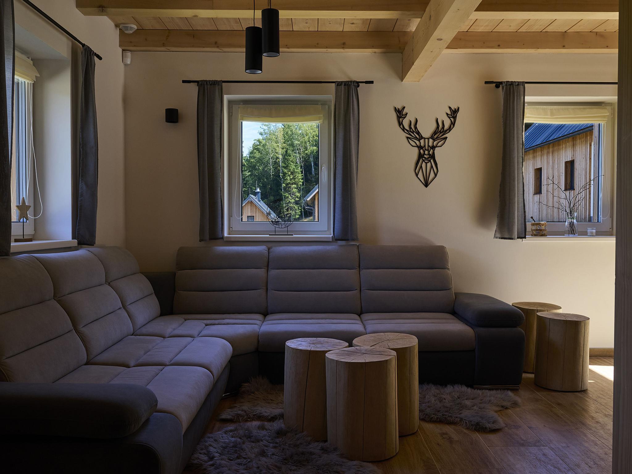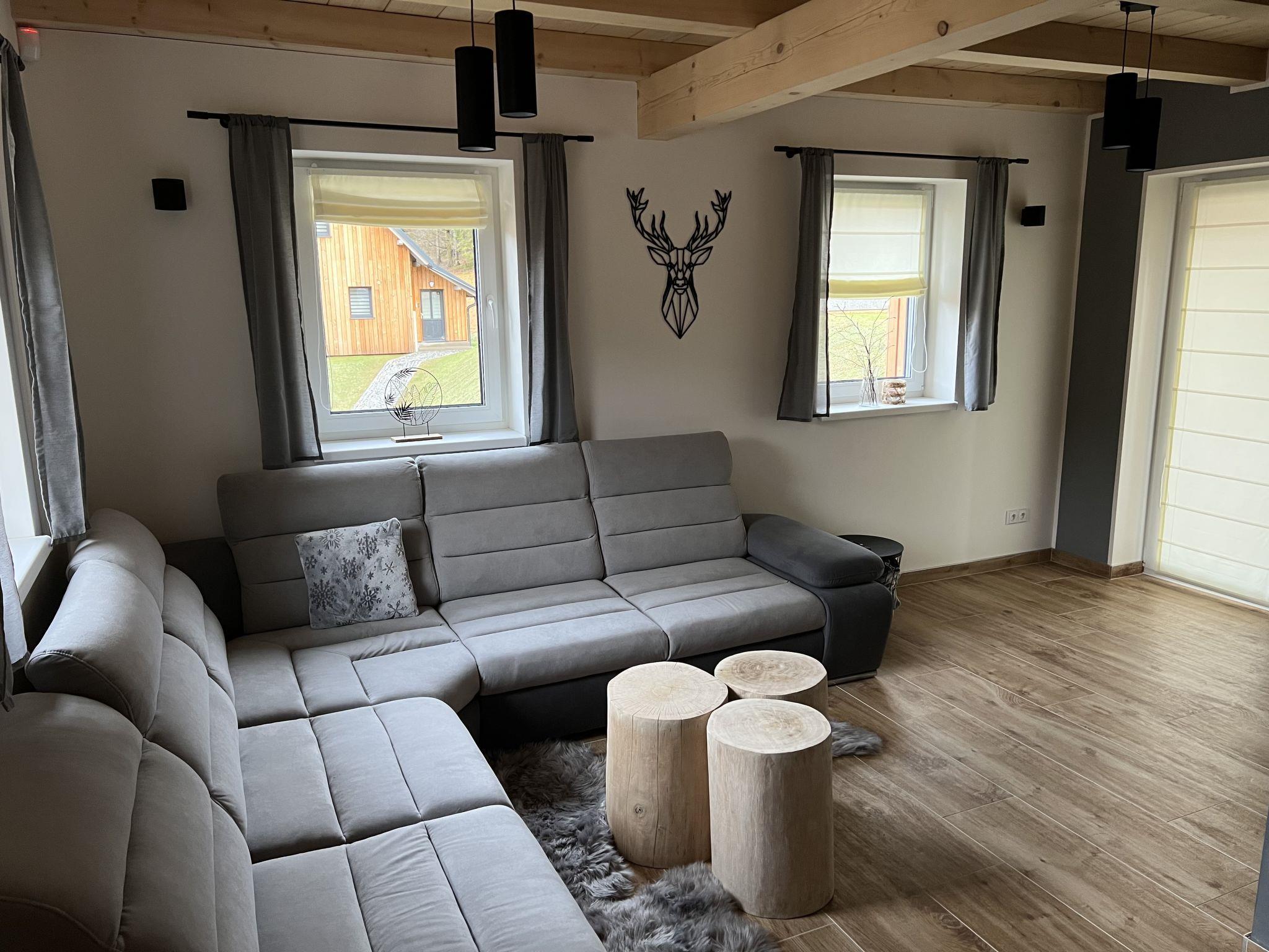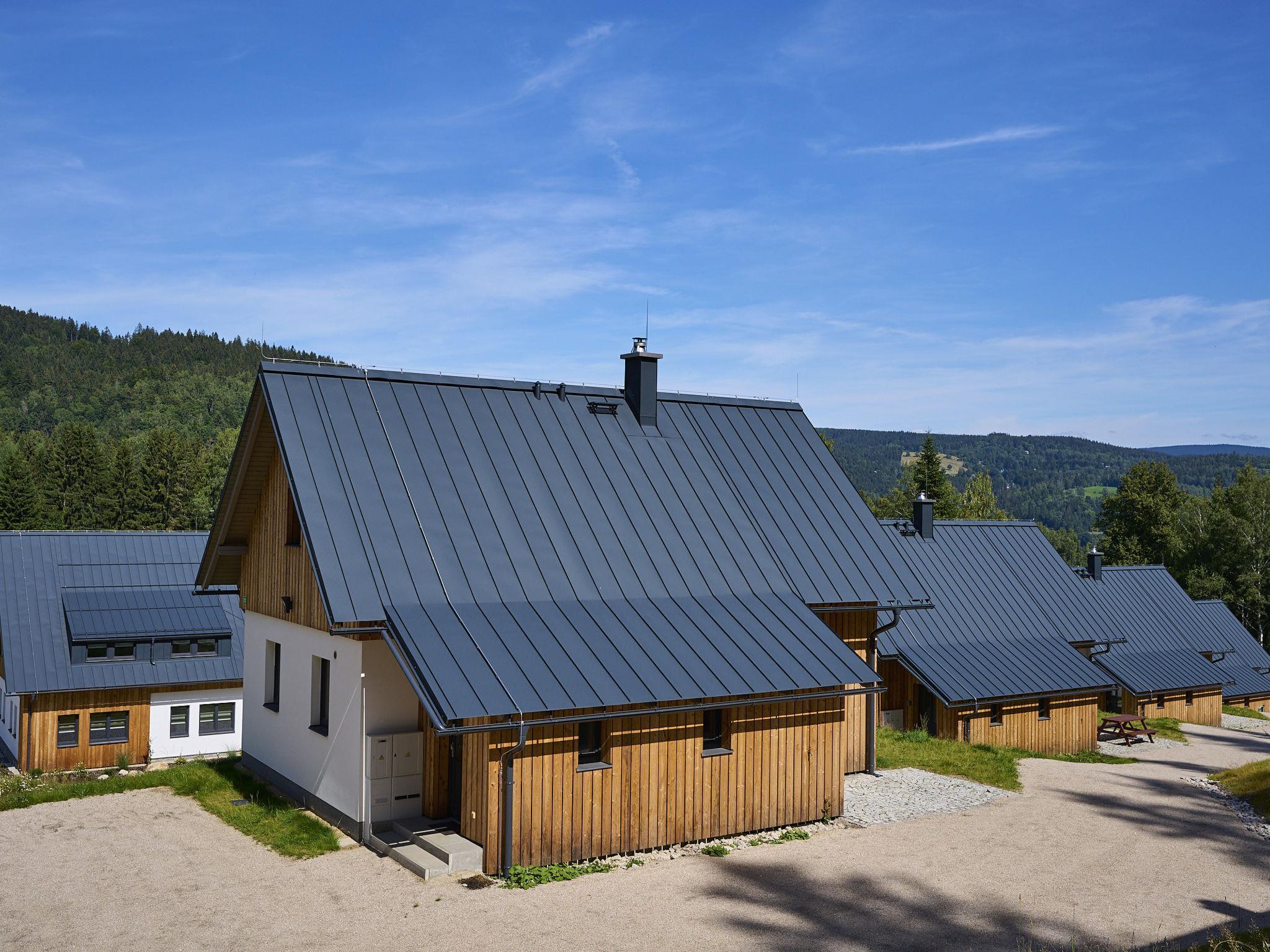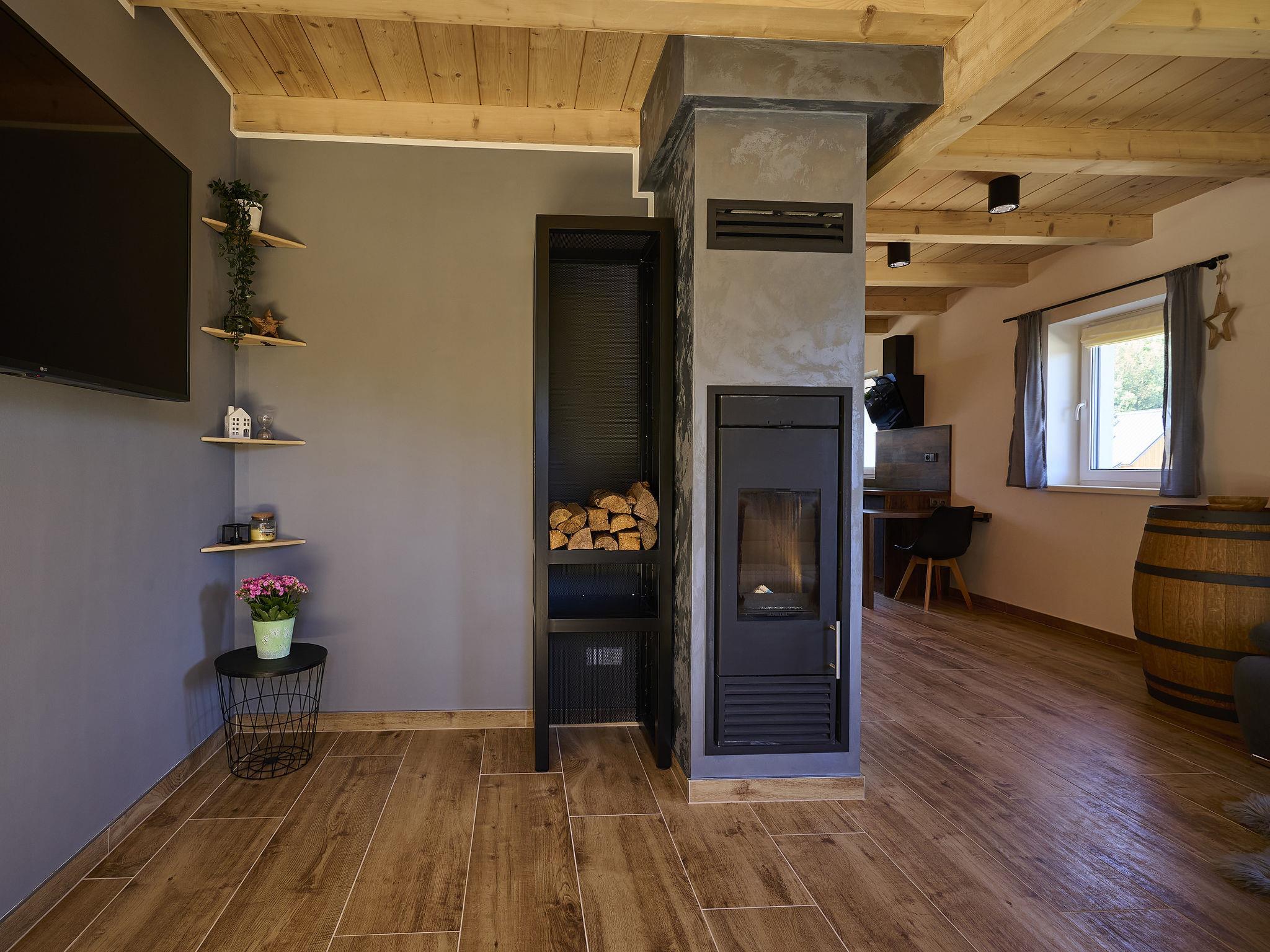 Comfortable cottage "Muhu", 2 storeys, detached, built in 2023. Outside the resort, along the wooded area, 2 km from the skiing area. Private: property. Terrace, garden furniture, barbecue, fireplace. In Winter: please take snow chains. Parking (for 2 cars) on the premises. Shop 2 km, grocery 2.5 km, supermarket 6 km, shopping centre 20 km, restaurant 2 km, bus stop "Jiretín pod Bukovou" 1.4 km, railway station "Jiretín pod Bukovou" 1.3 km, outdoor swimming pool 7 km, indoor swimming pool 20 km. Golf course (9 hole) 17 km, walking paths from the house 10 m, cycle lane 100 m, ski lift 2 km, slopes 2 km, ski rental 2 km, ski school 2 km, cross country ski track 100 m, children's playground 3 km. Nearby attractions: Rozhledna Cerná Studnice 6 km, Muzeum obrnené techniky Smržovka 6 km, Vodopády Jedlové 7 km, Kittelovo muzeum v Krásné 12 km, Aquapark Babylon, IQLandia, ZOO Liberec 22 km, Bozkovské jeskyne 22 km. Well-known ski regions can easily be reached: Tanvaldský Špicák 2 km, Filip Smržovka 4 km, Svetlý Vrch Albrechtice 4 km, Josefuv Dul 7 km, Severák, Bedrichov 12 km. Hiking paths: Hrebenovka. Please note: baby equipment.