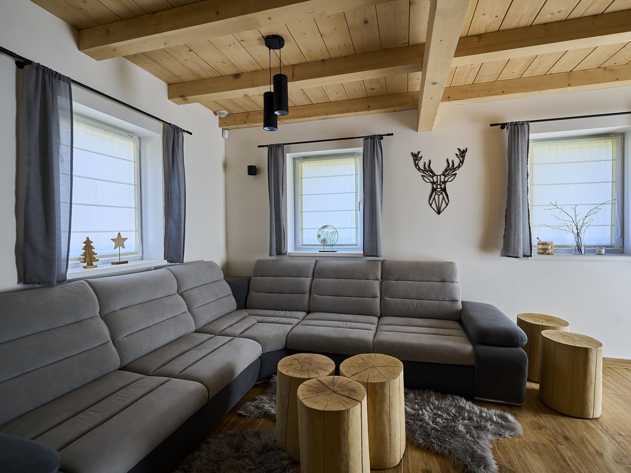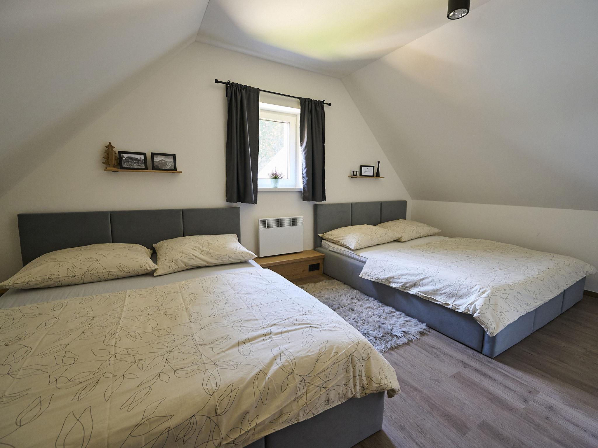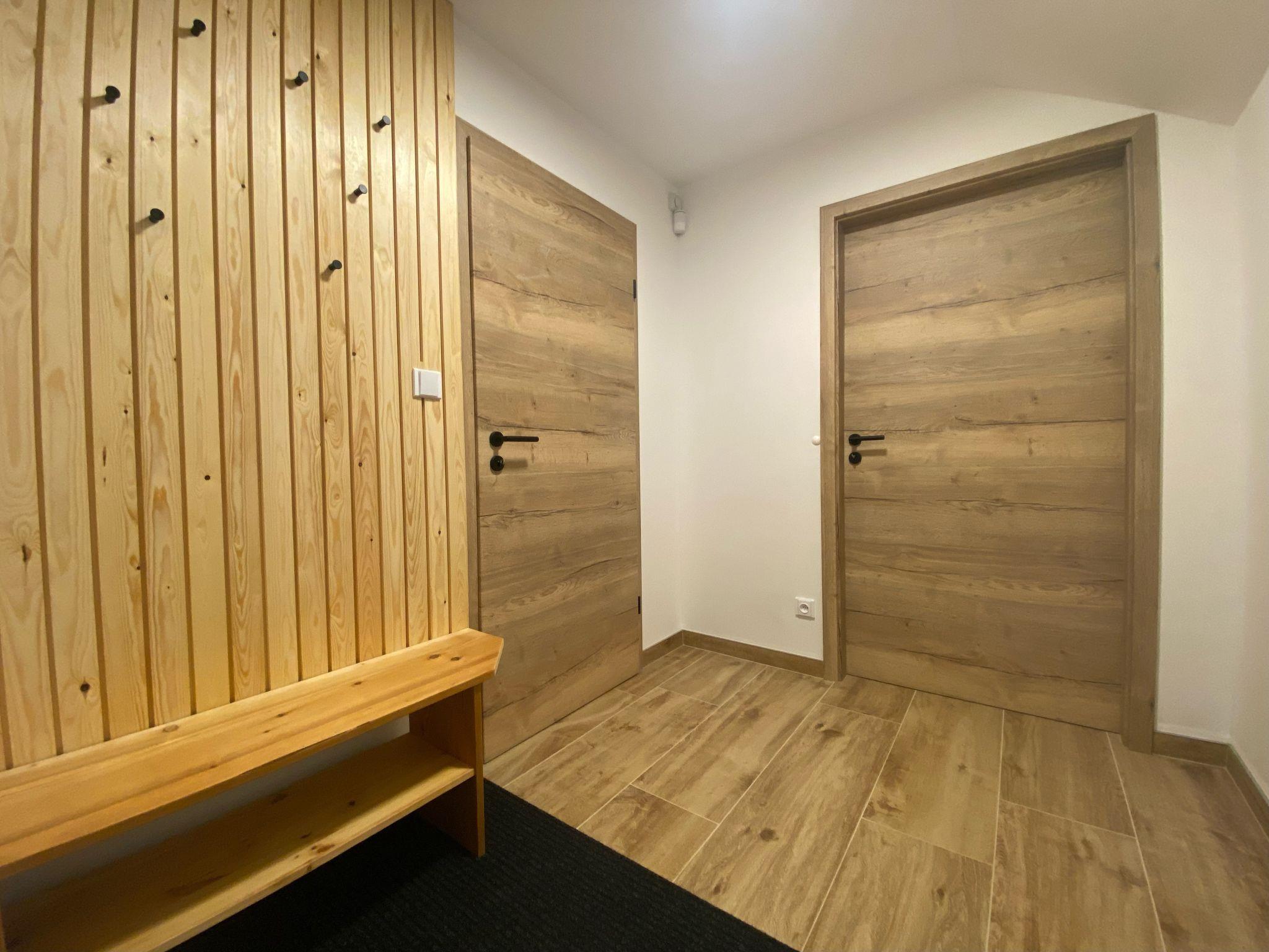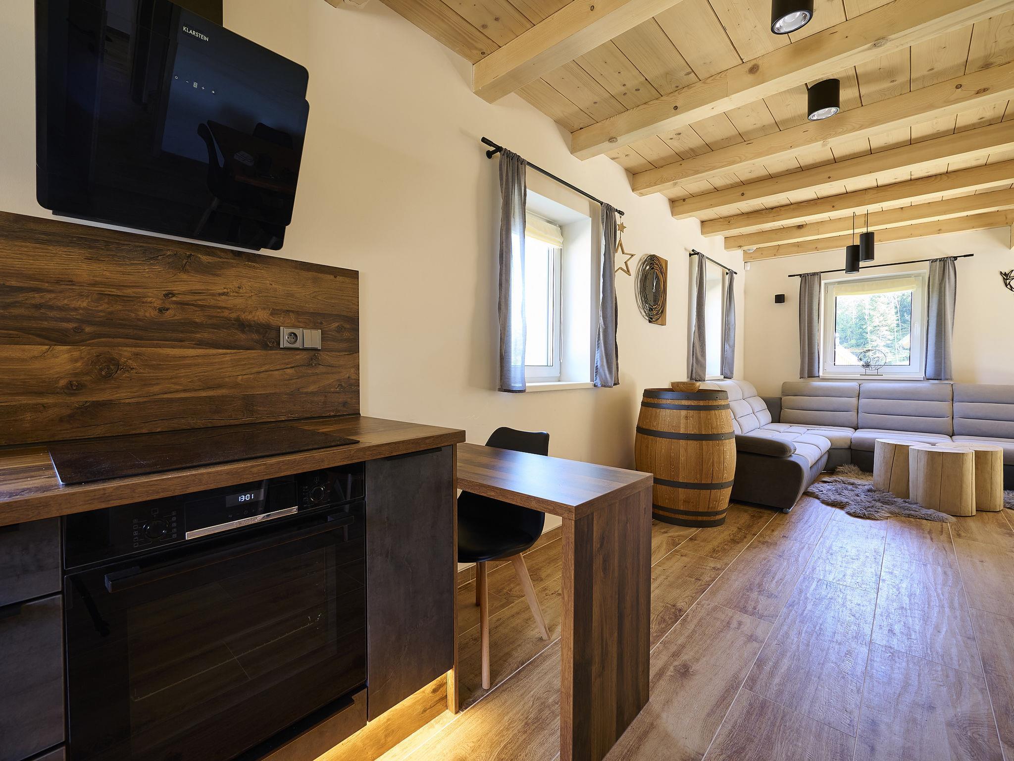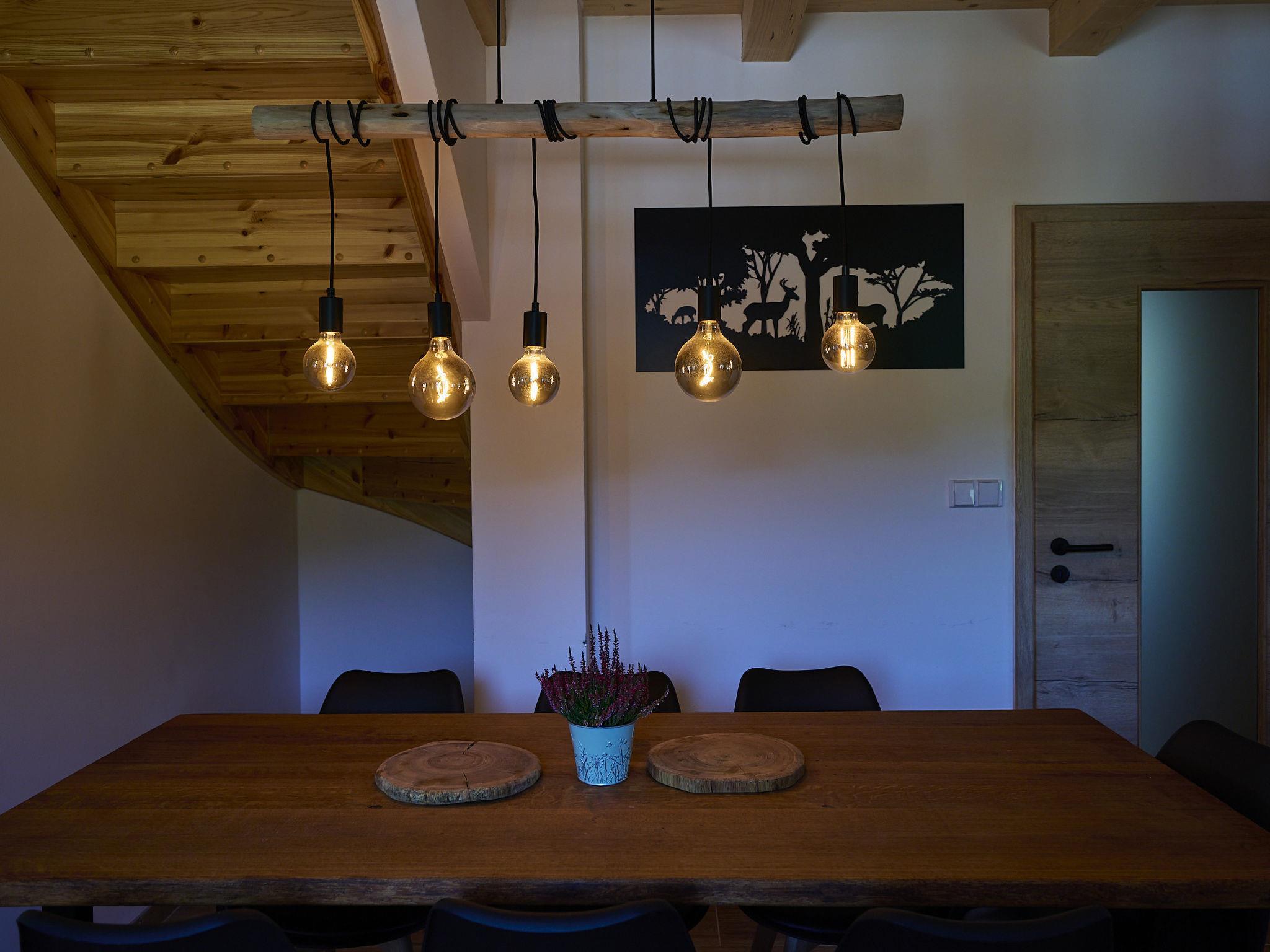 Comfortable cottage "Muhu", 2 storeys, detached, built in 2023. Outside the resort, along the wooded area, 2 km from the skiing area. Private: property. Terrace, garden furniture, barbecue, fireplace. In Winter: please take snow chains. Parking (for 2 cars) on the premises. Shop 2 km, grocery 2.5 km, supermarket 6 km, shopping centre 20 km, restaurant 2 km, bus stop "Jiretín pod Bukovou" 1.4 km, railway station "Jiretín pod Bukovou" 1.3 km, outdoor swimming pool 7 km, indoor swimming pool 20 km. Golf course (9 hole) 17 km, walking paths from the house 10 m, cycle lane 100 m, ski lift 2 km, slopes 2 km, ski rental 2 km, ski school 2 km, cross country ski track 100 m, children's playground 3 km. Nearby attractions: Rozhledna Cerná Studnice 6 km, Muzeum obrnené techniky Smržovka 6 km, Vodopády Jedlové 7 km, Kittelovo muzeum v Krásné 12 km, Aquapark Babylon, IQLandia, ZOO Liberec 22 km, Bozkovské jeskyne 22 km. Well-known ski regions can easily be reached: Tanvaldský Špicák 2 km, Filip Smržovka 4 km, Svetlý Vrch Albrechtice 4 km, Josefuv Dul 7 km, Severák, Bedrichov 12 km. Hiking paths: Hrebenovka. Please note: baby equipment.