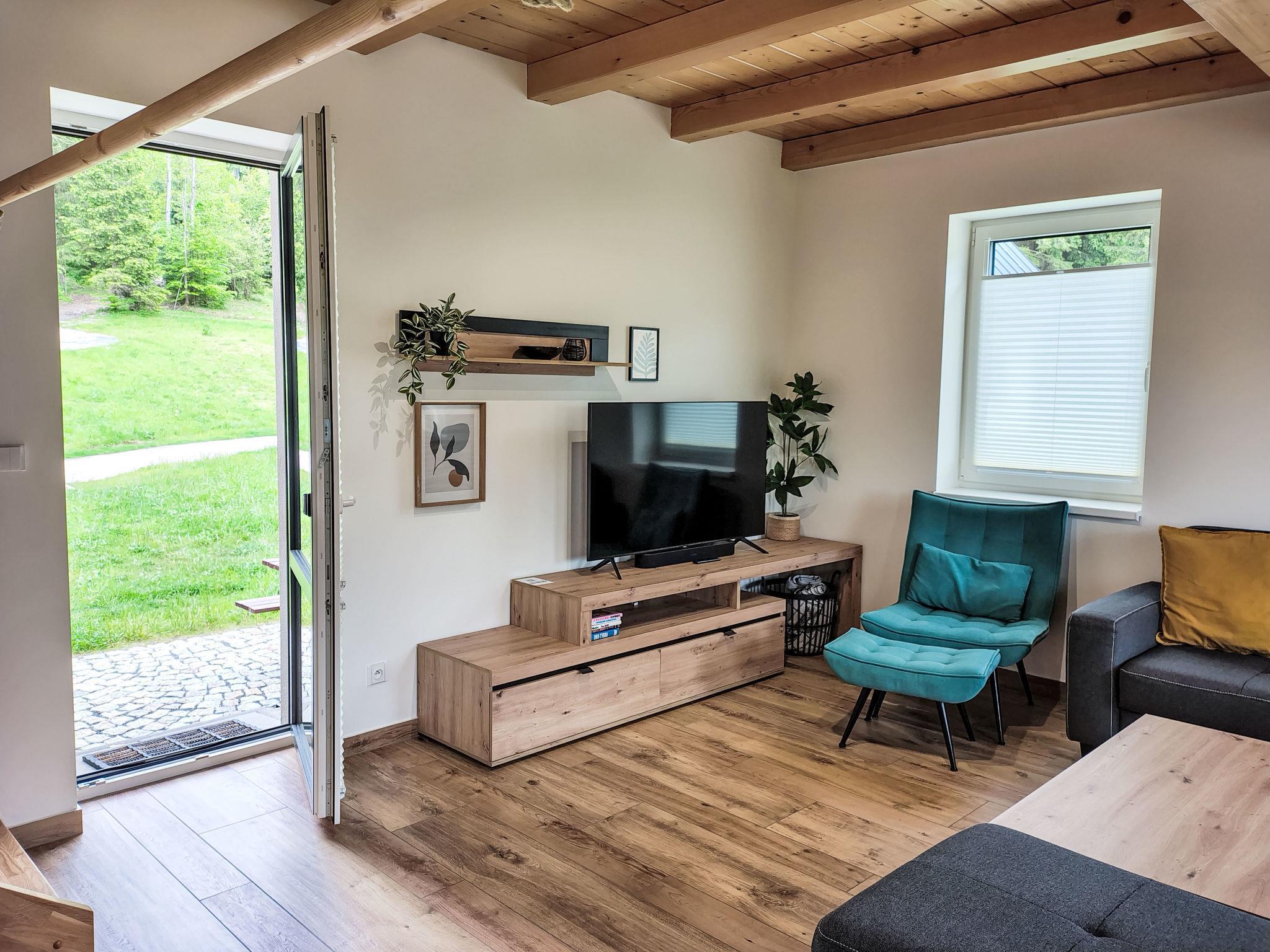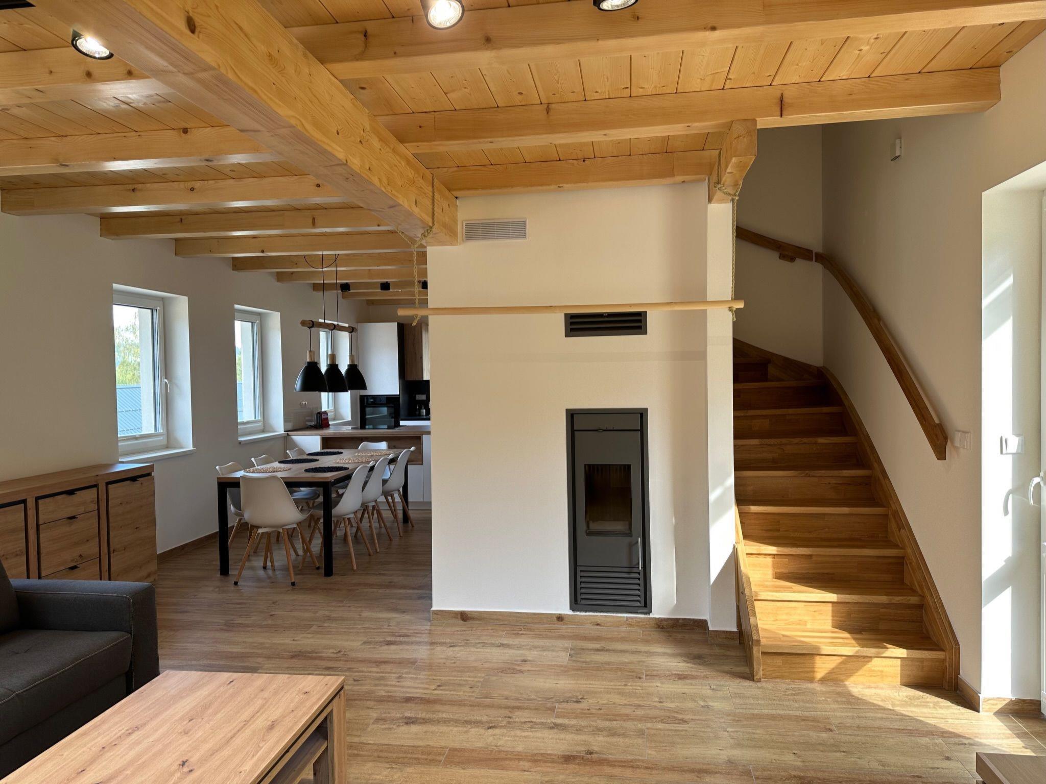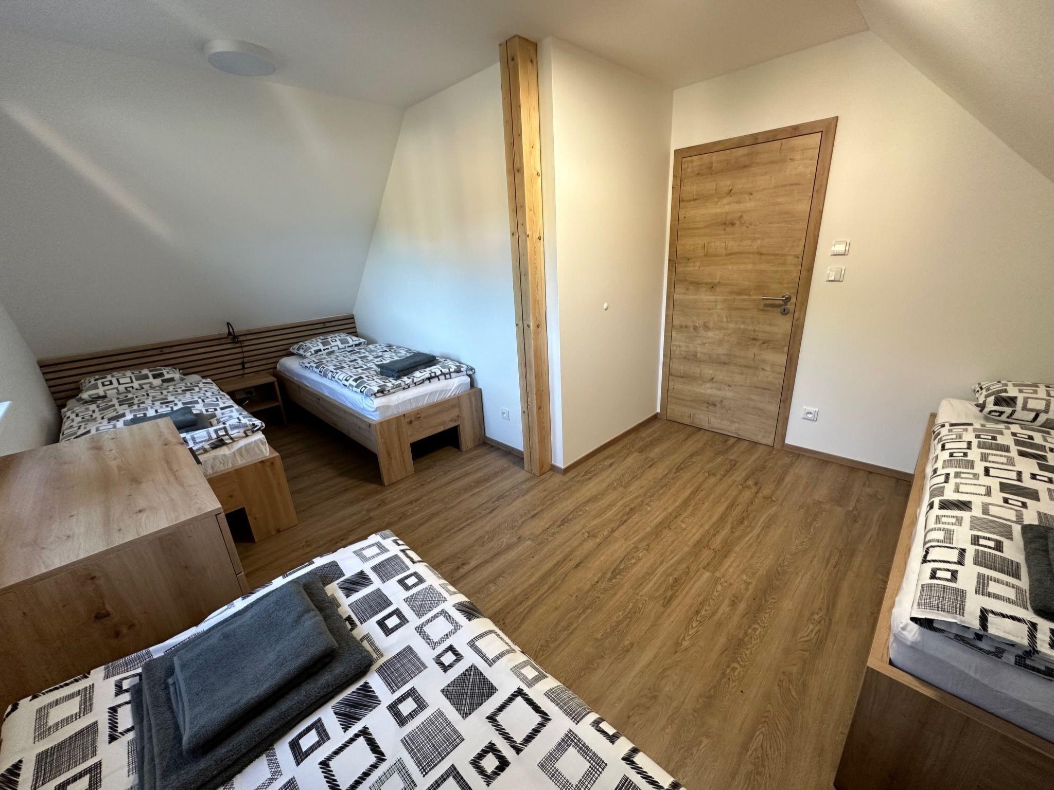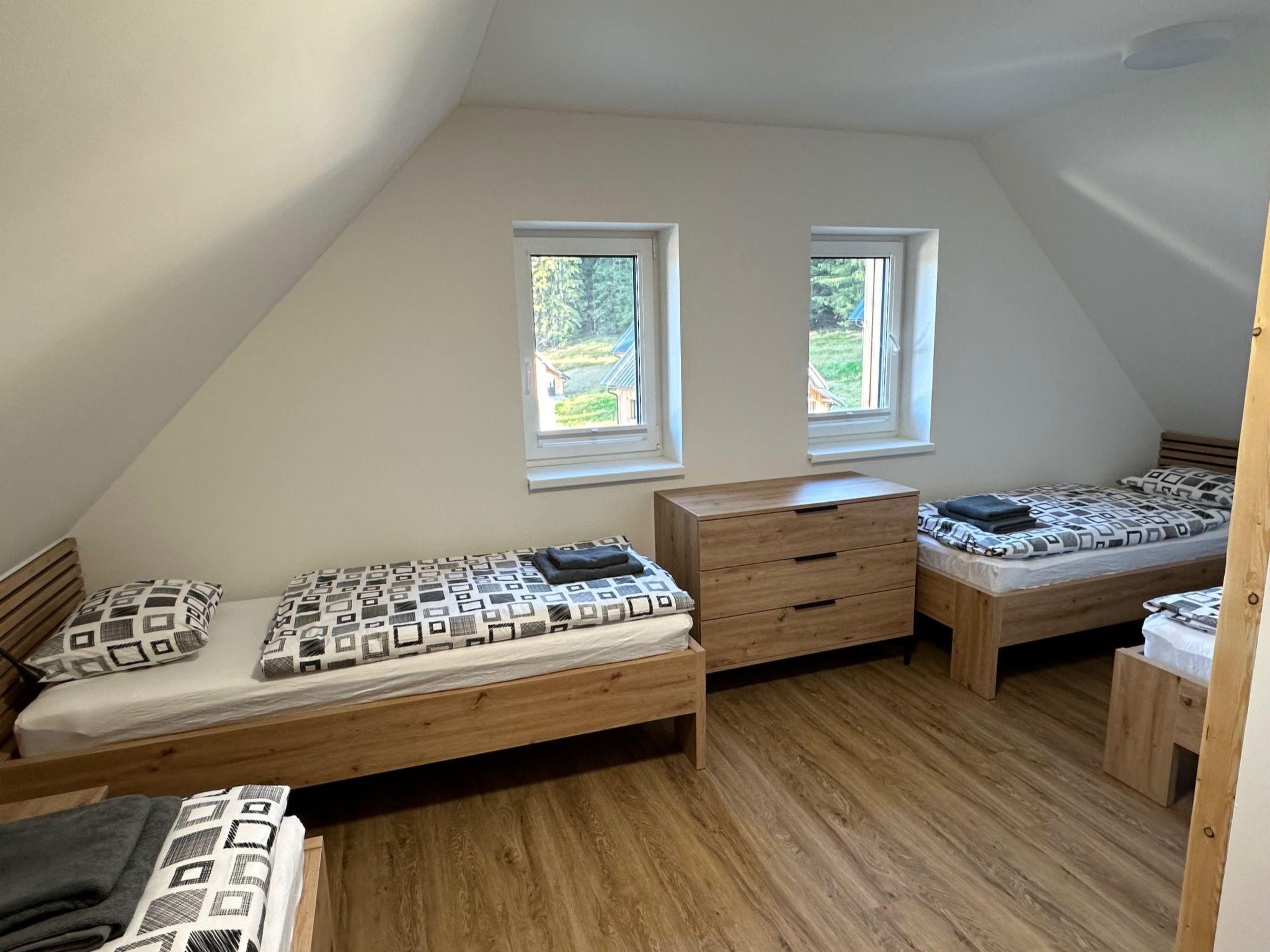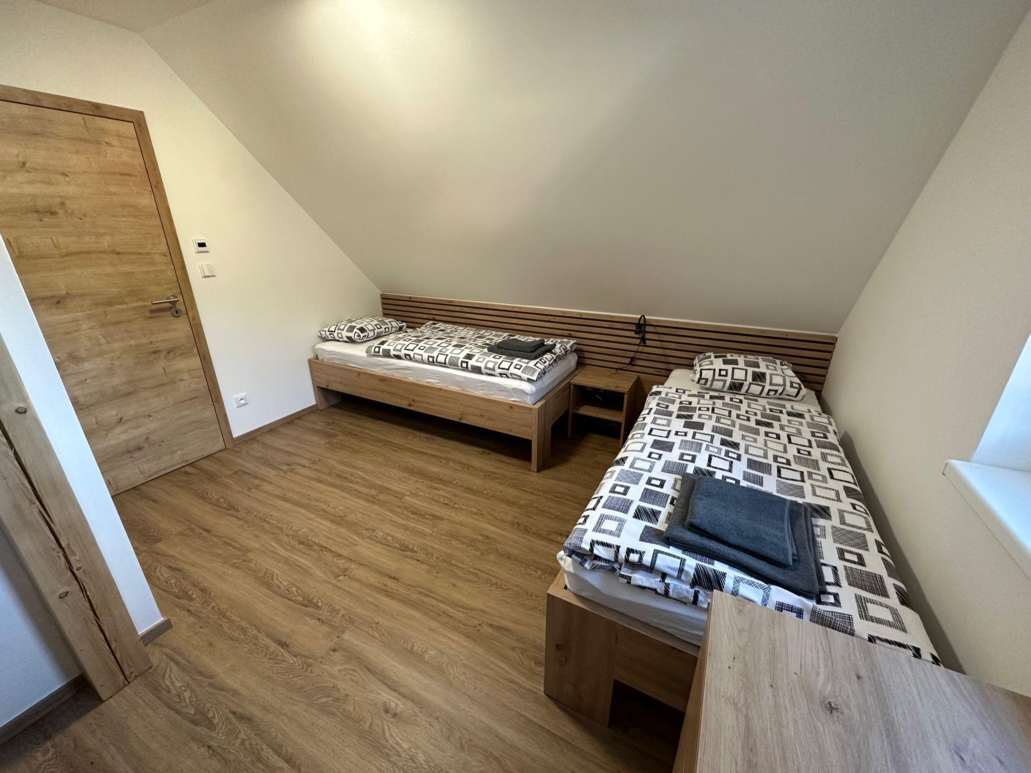 Comfortable cottage, 2 storeys, detached, built in 2023. Outside the resort, along the wooded area, 2 km from the skiing area. Private: property. Terrace. In Winter: please take snow chains. Parking. E-charging station. Shop 2 km, grocery 2.5 km, supermarket 6 km, shopping centre 20 km, restaurant 2 km, bus stop "Jiretín pod Bukovou" 1.4 km, railway station "Jiretín pod Bukovou" 1.3 km, outdoor swimming pool 7 km, indoor swimming pool 20 km. Golf course (9 hole) 17 km, walking paths from the house 10 m, cycle lane 100 m, ski lift 2 km, slopes 2 km, ski rental 2 km, ski school 2 km, cross country ski track 100 m, children's playground 3 km. Nearby attractions: Rozhledna Cerná Studnice 6 km, Muzeum obrnené techniky Smržovka 6 km, Vodopády Jedlové 7 km, Kittelovo muzeum v Krásné 12 km, Aquapark Babylon, IQLandia, ZOO Liberec 22 km, Bozkovské jeskyne 22 km. Well-known ski regions can easily be reached: Tanvaldský Špicák 2 km, Filip Smržovka 4 km, Svetlý Vrch Albrechtice 4 km, Josefuv Dul 7 km, Severák, Bedrichov 12 km. Hiking paths: Hrebenovka.