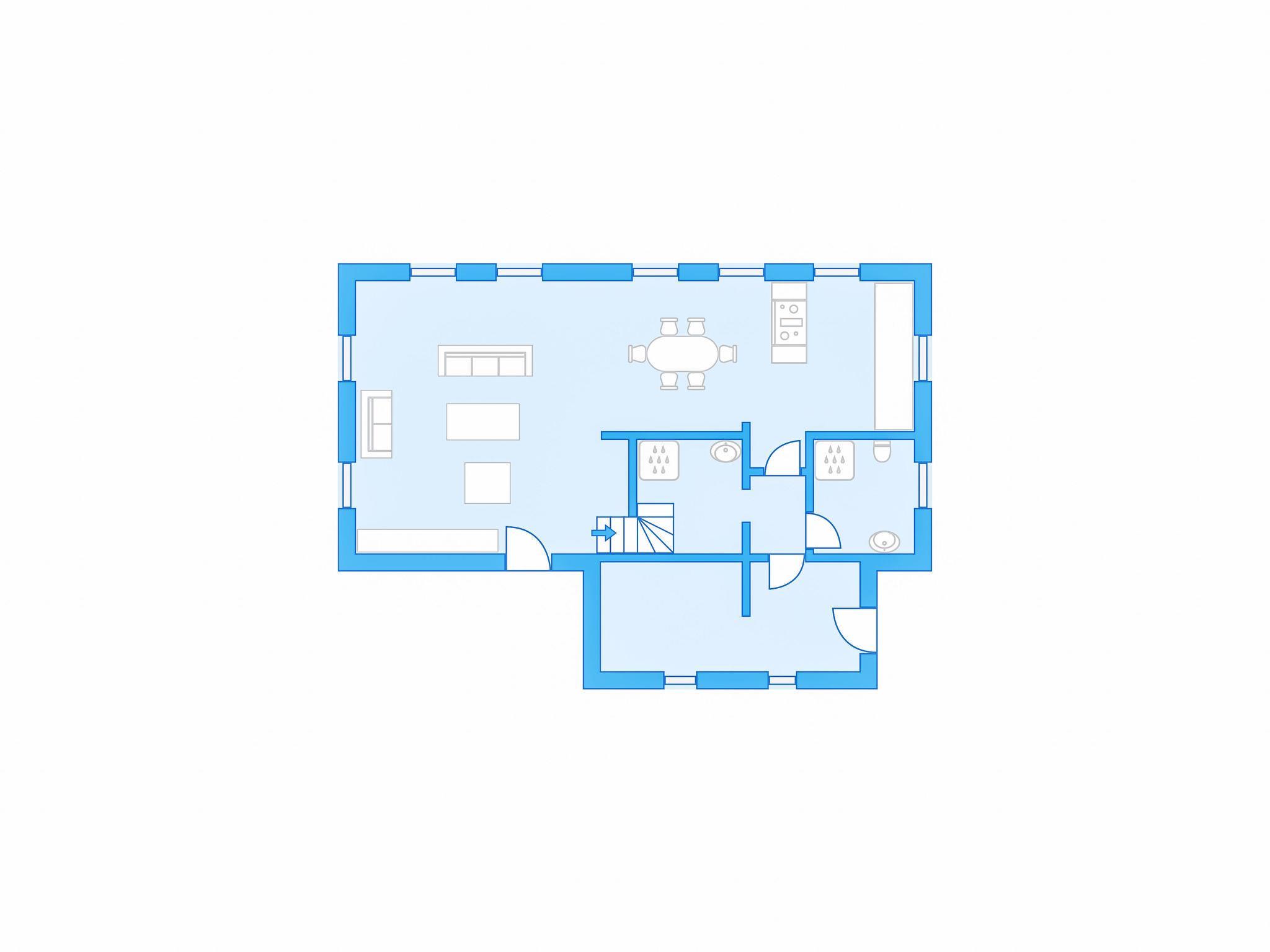 "13ka Duplex with Terrace", 4-room apartment on 2 levels on 1st floor. Very beautiful and modern furnishings: open large living room with Scandinavian wood stove, dining table and TV. Exit to the terrace. Kitchenette (dishwasher, 4 induction hot plates, toaster, kettle, freezer, electric coffee machine, Capsules for coffee machine (Nespresso)). Shower/WC. Floor heating, boiler. Upper floor: 2 rooms, each room with 1 double bed. 1 room with 4 beds. Shower/WC. Electric heating, wood heating, floor heating. Terrace. Terrace furniture, barbecue, box-room. Facilities: washing machine, children's high chair, baby cot. Internet (WiFi, free). Parking at 20 m. E-charging station. Please note: suitable for families. Non-smoking house.