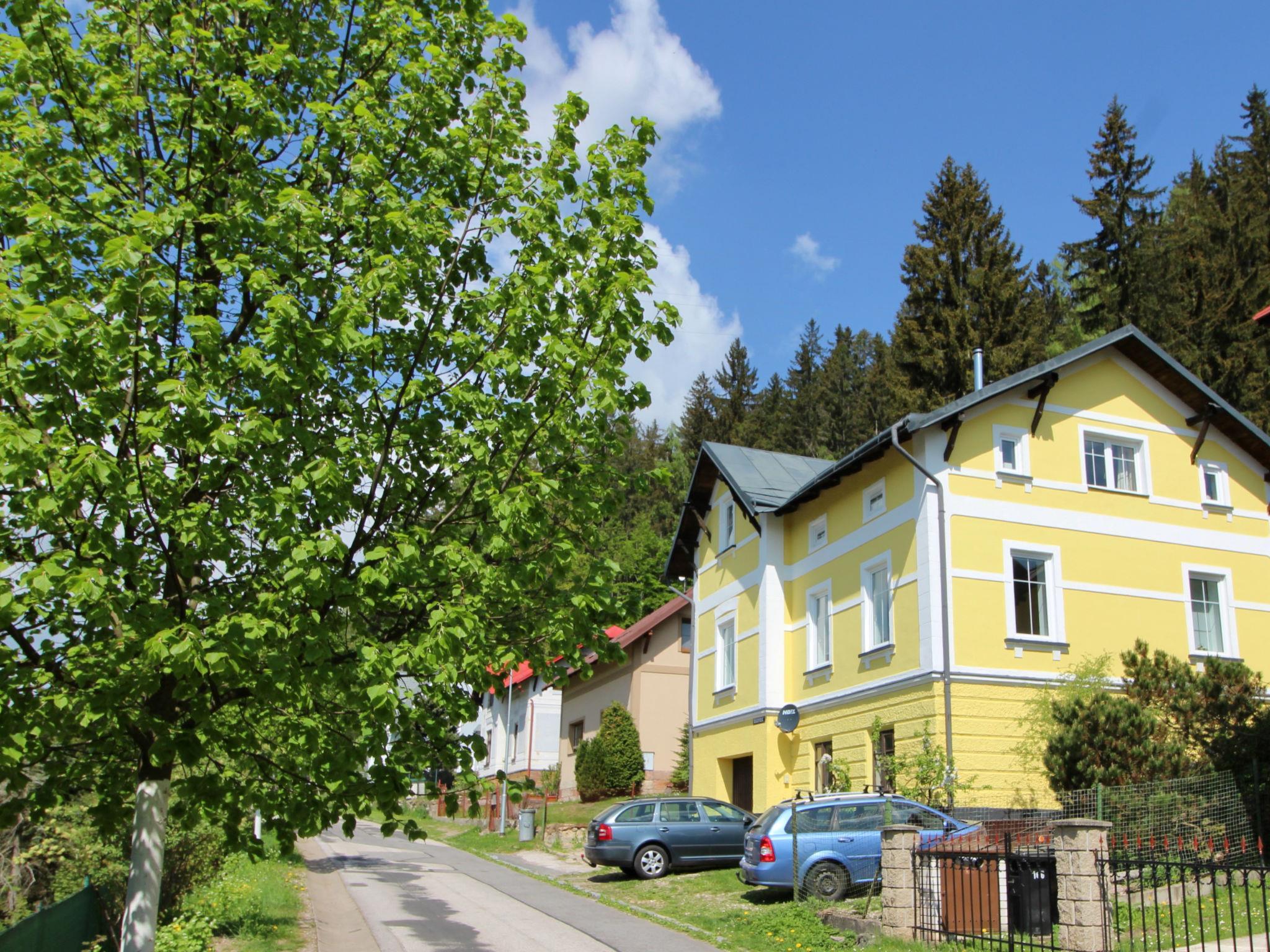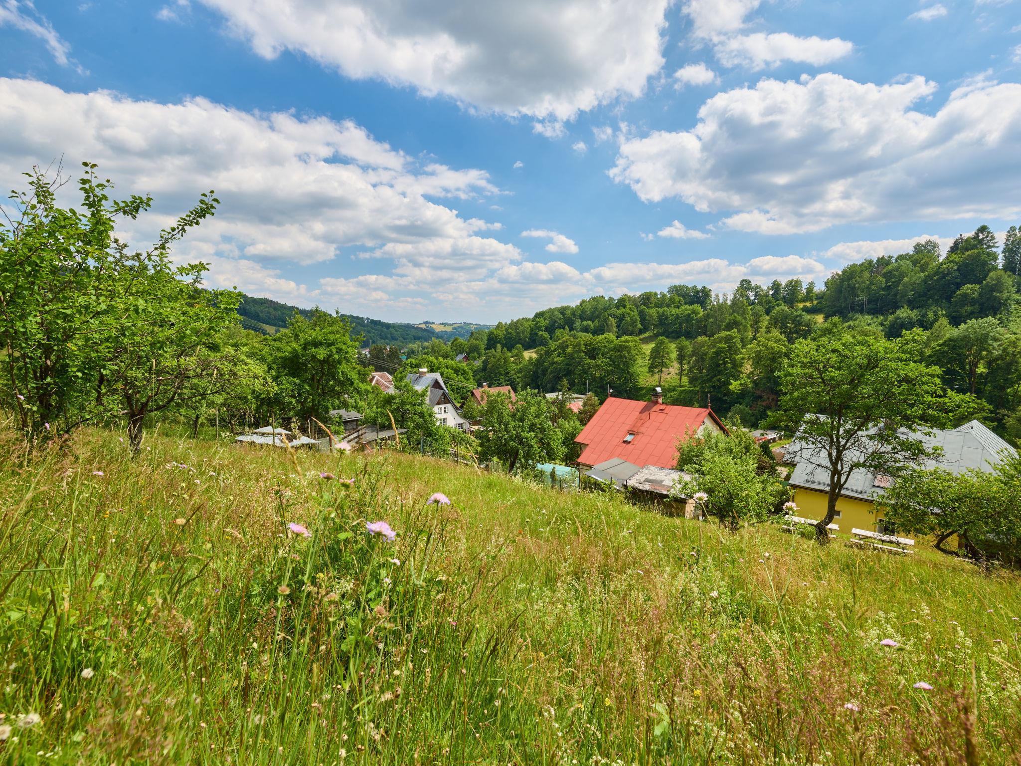 Svoboda na Úpou 2 km from Janské Lázne: Historical villa "Hillside Lodge & Garden", 3 storeys, detached, built in 1906, renovated in 2021. In the resort, 300 m from the centre, in a quiet, sunny position, 100 m from the edge of the forest, 2 km from the skiing area. Private: garden 1'200 m2. Garden furniture, barbecue, parking (for 5 cars) at the house. Shop 500 m, supermarket 400 m, restaurant 300 m, bus stop "Svoboda nad Úpou, námestí" 350 m. Golf course (18 hole) 4 km, ski lift 2 km, chair lift 2 km, slopes 2 km, cross country ski track 10 m. Nearby attractions: Janské Lázne Spa, Stezka korunami stromu 3 km, Aquapark Trutnov 12 km, Relax Park Pec pod Snežkou / Snežka 12 km, Adršpašské skály 30 km, Zoo Safari Dvur Králové 30 km. Well-known ski regions can easily be reached: Cerná Hora/Svoboda nad Úpou 2 km, Cerná Hora/Janské Lázne 3.5 km. Please note: suitable for families. The owner does not accept any youth groups. On the ground floor there is a storage room for skis/bicycles.