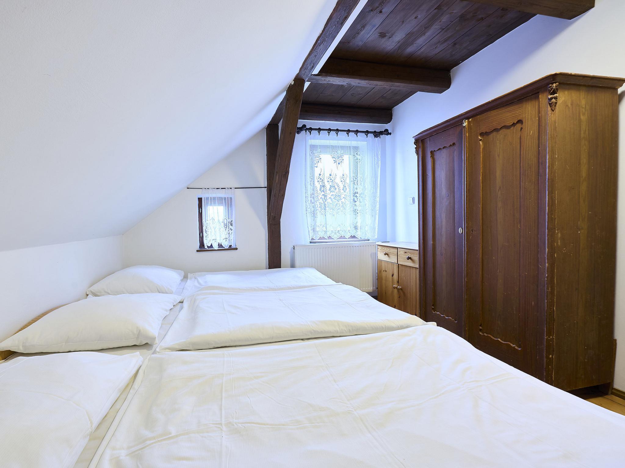 Zlatá Olešnice: Child friendly, simple cottage "Garden & Pets Escape", 2 storeys, detached. On the outskirts, in a sunny position, 1 km from the skiing area. Private: swimming pool (seasonal availability: 01.Jun. and - 31.Sep.). Terrace, barbecue, children's playground. In the house: central heating system. Parking at the house. Shop 500 m, shopping centre 3 km, restaurant 1 km, bus stop "Zlatá Olešnice, Horenec" 1.7 km, outdoor swimming pool 2 km. Ski lift 800 m, ski rental, ski school. Nearby attractions: Lanový park Korenov 17 km, Dum spisovatele Antala Staška 6 km, Bozkovské dolomitové jeskyne 11 km, Muzeum panenek Smržovka 15 km, Ranch pod Štepánkou 14 km, Rozhledna Štepánka 6 km. Well-known ski regions can easily be reached: Zlatá Olešnice 800 m, Paseky nad Jizerou 8 km, Vysoké nad Jizerou 8 km. Hiking paths: Zoo Liberec 30 km, Dinopark Liberec 30 km. Ski lift (100 m long, illuminated) next to the house available.