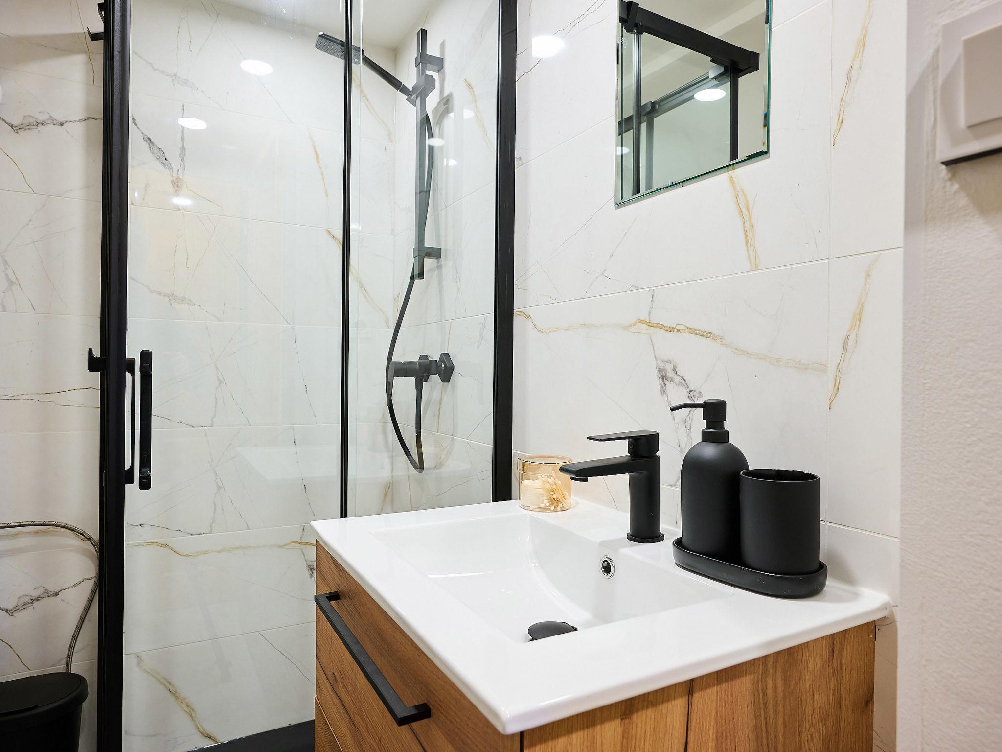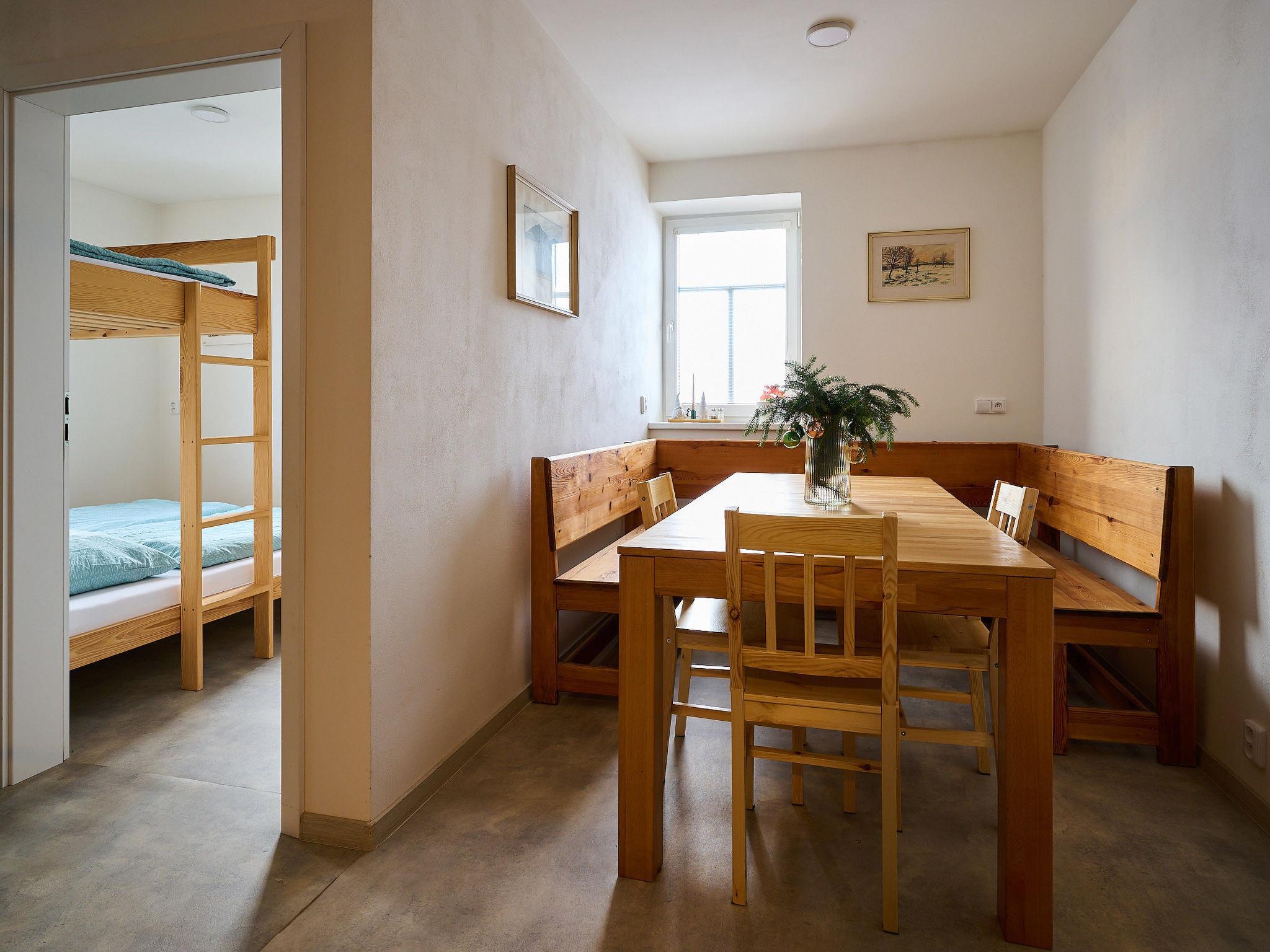 3-room house. Beautiful and cosy furnishings: living/dining room with Scandinavian wood stove and TV. 1 room with panoramic window with 1 x 1 bunk beds, 1 double bed. Small kitchenette (oven, 4 ceramic glass hob hotplates, toaster, kettle, microwave, freezer) with Scandinavian wood stove. Shower/WC. Underfloor heating. Upper floor: 1 room with 1 double sofabed and 2 double beds. Shower/WC. Facilities: washing machine. Internet (WiFi). Maximum 2 pets/ dogs allowed.