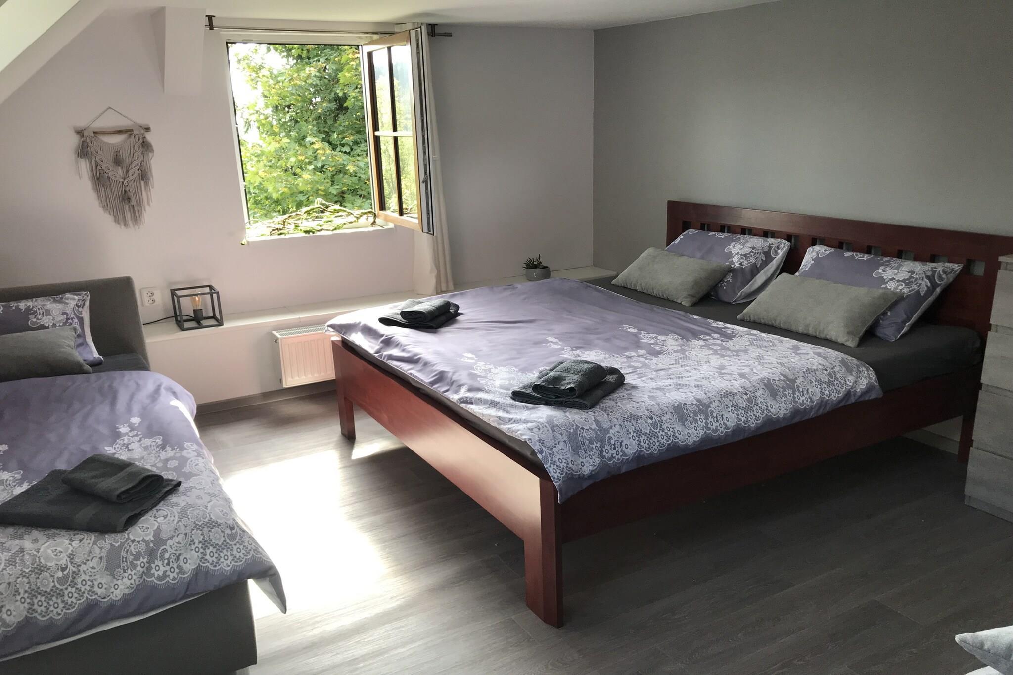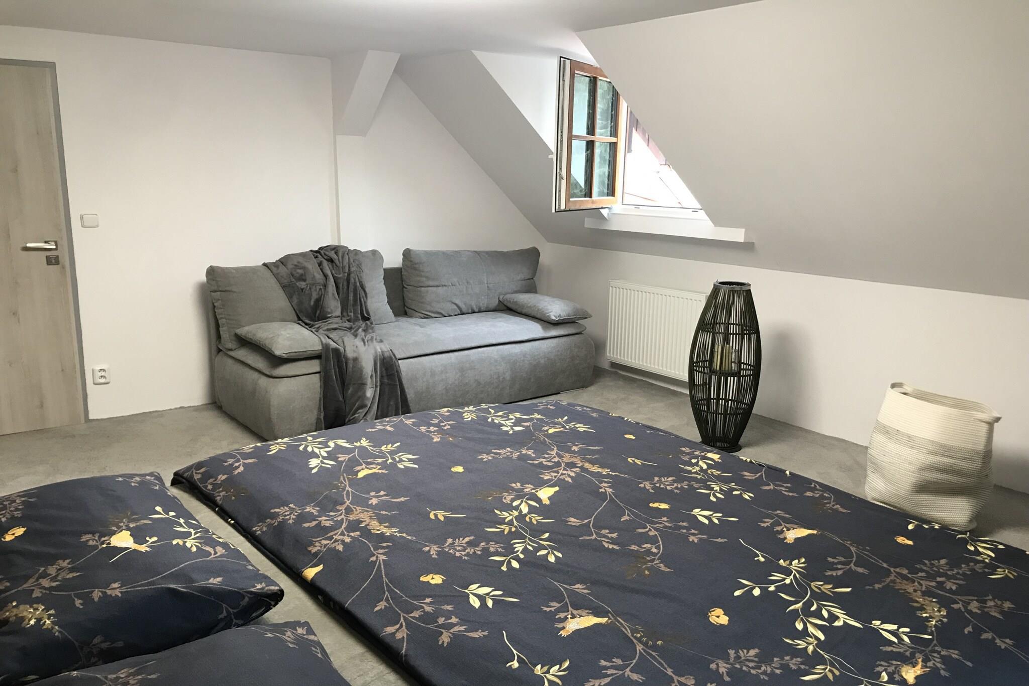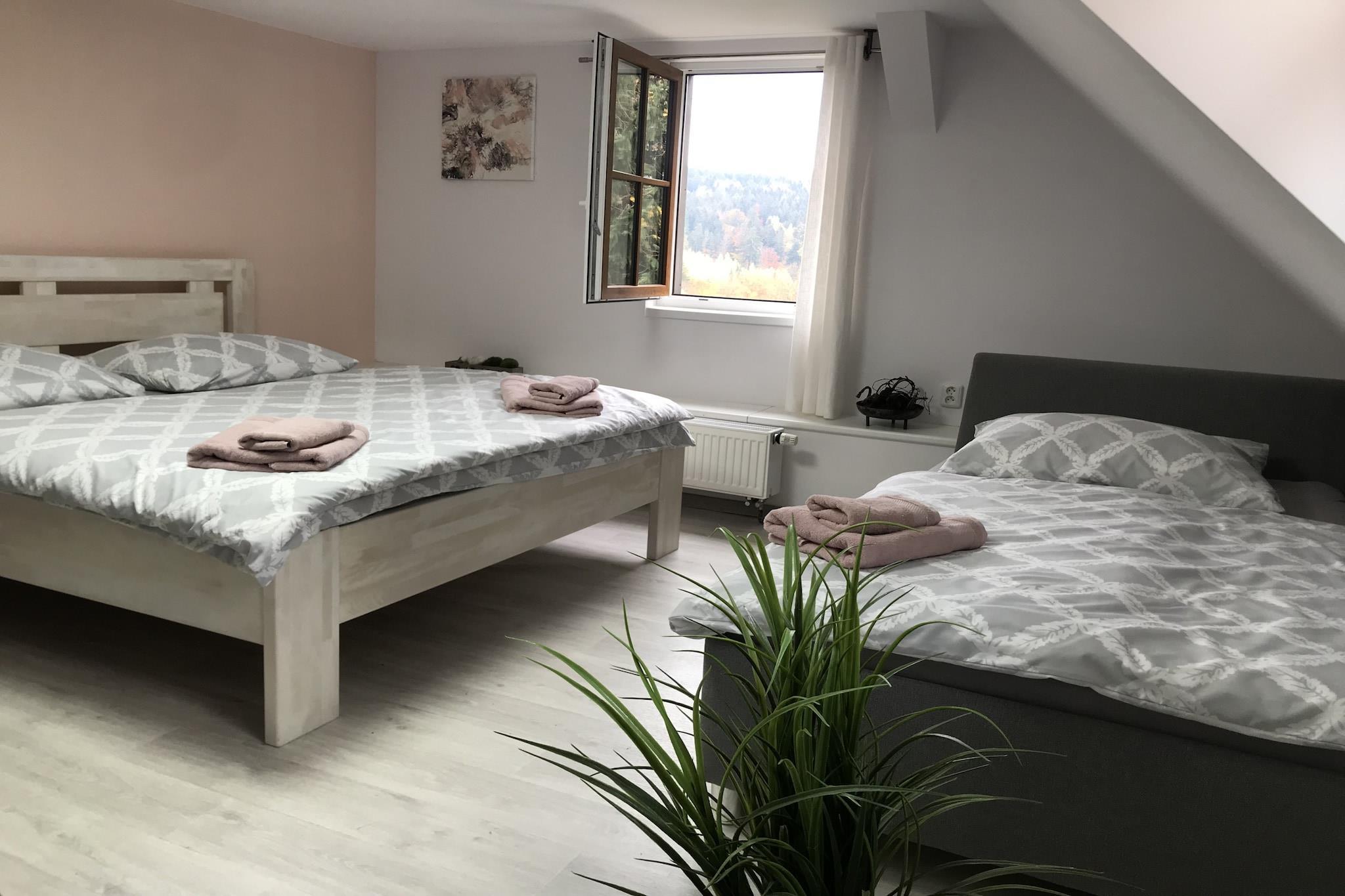 This enchanting villa in Tanvald is the perfect retreat for large families or groups, offering a luxurious and comfortable space for up to 18 guests. With 6 spacious bedrooms and 3 modern bathrooms, this villa ensures everyone has plenty of room to relax and unwind. Its unique atmosphere combines comfort and style, with lavish amenities such as a sauna, jacuzzi, and swimming pool, making it a fantastic choice for both relaxation and fun. The fully equipped kitchen is perfect for preparing meals for the entire group, with a fridge, freezer, oven, microwave, and all necessary utensils. The villa also features a dishwasher to make cleaning up a breeze. After a day of activities, the living room invites you to sink into comfortable sofas, enjoy your favorite TV shows, read a book, or engage in some friendly board games. This villa is located in Tanvald, within the stunning Jizera Mountains, an area filled with year-round activities. In winter, it's an ideal base for skiing and snowboarding, with nearby ski resorts providing excellent slopes. During warmer months, the Jizera Mountains Nature Park offers hiking and biking trails, perfect for exploring the natural beauty of the region. Not far from the villa, you'll find the Snow Sculpture Garden, Glassworks Museum in Harrachov, and scenic historic train rides on the Jizera Railway. The nearby Prachov Rocks and the cities of Liberec and Harrachov are also worth visiting, offering a great mix of outdoor adventure and cultural attractions.