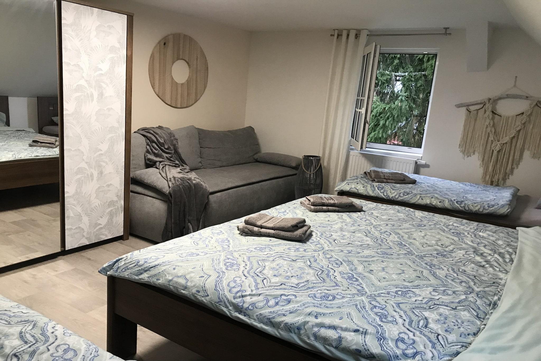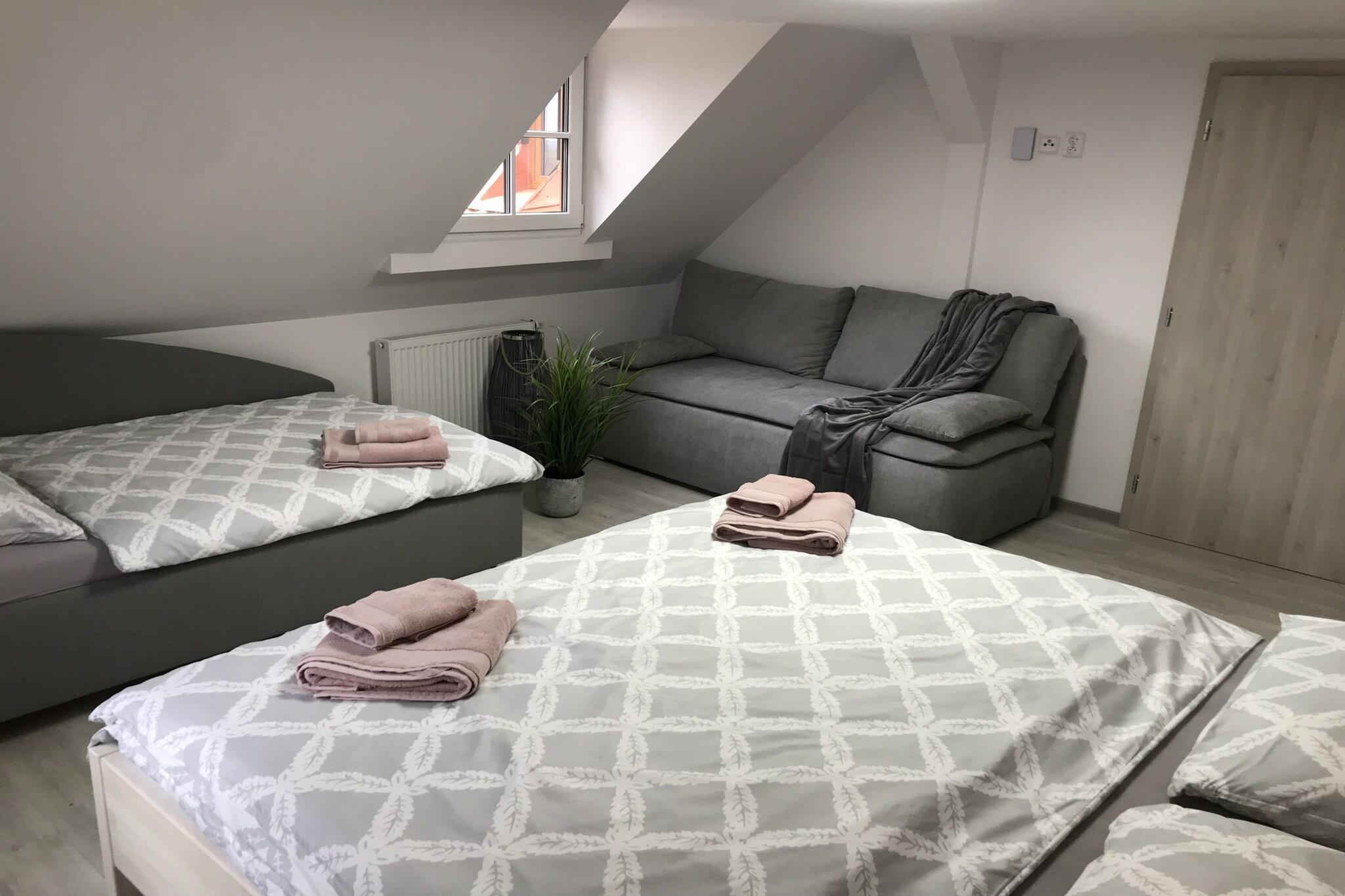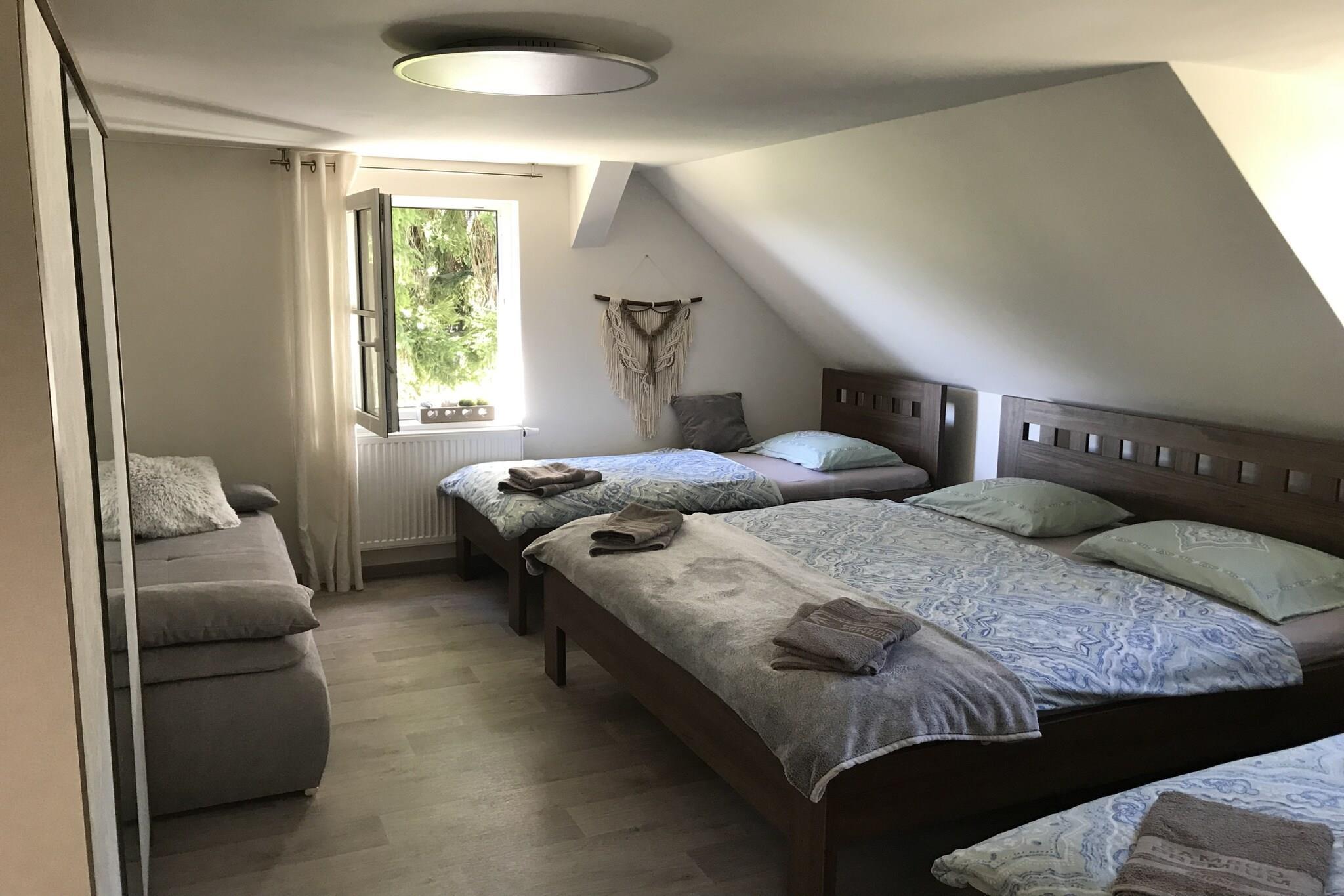 This enchanting villa in Tanvald is the perfect retreat for large families or groups, offering a luxurious and comfortable space for up to 18 guests. With 6 spacious bedrooms and 3 modern bathrooms, this villa ensures everyone has plenty of room to relax and unwind. Its unique atmosphere combines comfort and style, with lavish amenities such as a sauna, jacuzzi, and swimming pool, making it a fantastic choice for both relaxation and fun. The fully equipped kitchen is perfect for preparing meals for the entire group, with a fridge, freezer, oven, microwave, and all necessary utensils. The villa also features a dishwasher to make cleaning up a breeze. After a day of activities, the living room invites you to sink into comfortable sofas, enjoy your favorite TV shows, read a book, or engage in some friendly board games. This villa is located in Tanvald, within the stunning Jizera Mountains, an area filled with year-round activities. In winter, it's an ideal base for skiing and snowboarding, with nearby ski resorts providing excellent slopes. During warmer months, the Jizera Mountains Nature Park offers hiking and biking trails, perfect for exploring the natural beauty of the region. Not far from the villa, you'll find the Snow Sculpture Garden, Glassworks Museum in Harrachov, and scenic historic train rides on the Jizera Railway. The nearby Prachov Rocks and the cities of Liberec and Harrachov are also worth visiting, offering a great mix of outdoor adventure and cultural attractions.