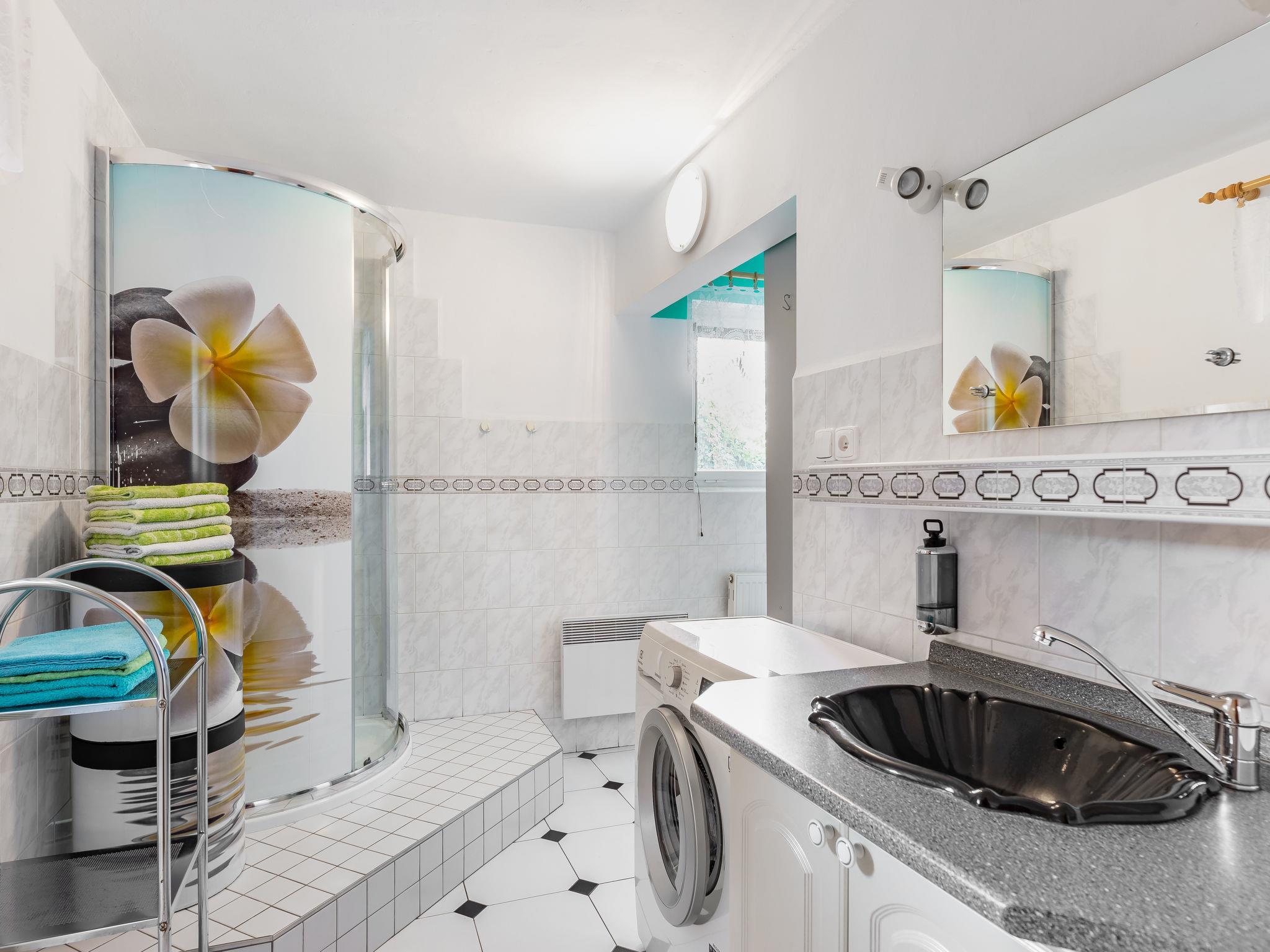 3-room house 80 m2 on 2 levels. Living room with Scandinavian wood stove and satellite TV. Exit to the garden. Kitchenette (2 hot plates, microwave, freezer, electric coffee machine) with dining table. Shower/WC. Electric heating, wood heating, boiler. Upper floor: 1 room with sloping ceilings with 1 bed and 1 double bed. 1 room with sloping ceilings with 1 bed and 1 double bed. Terrace furniture. Facilities: Internet (WiFi, free). Please note: suitable for families. Non-smoking house. Maximum 3 pets/ dogs allowed.